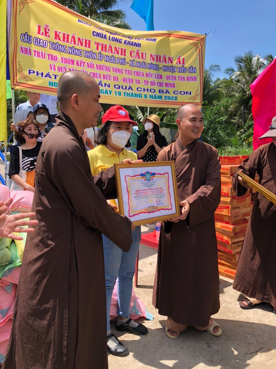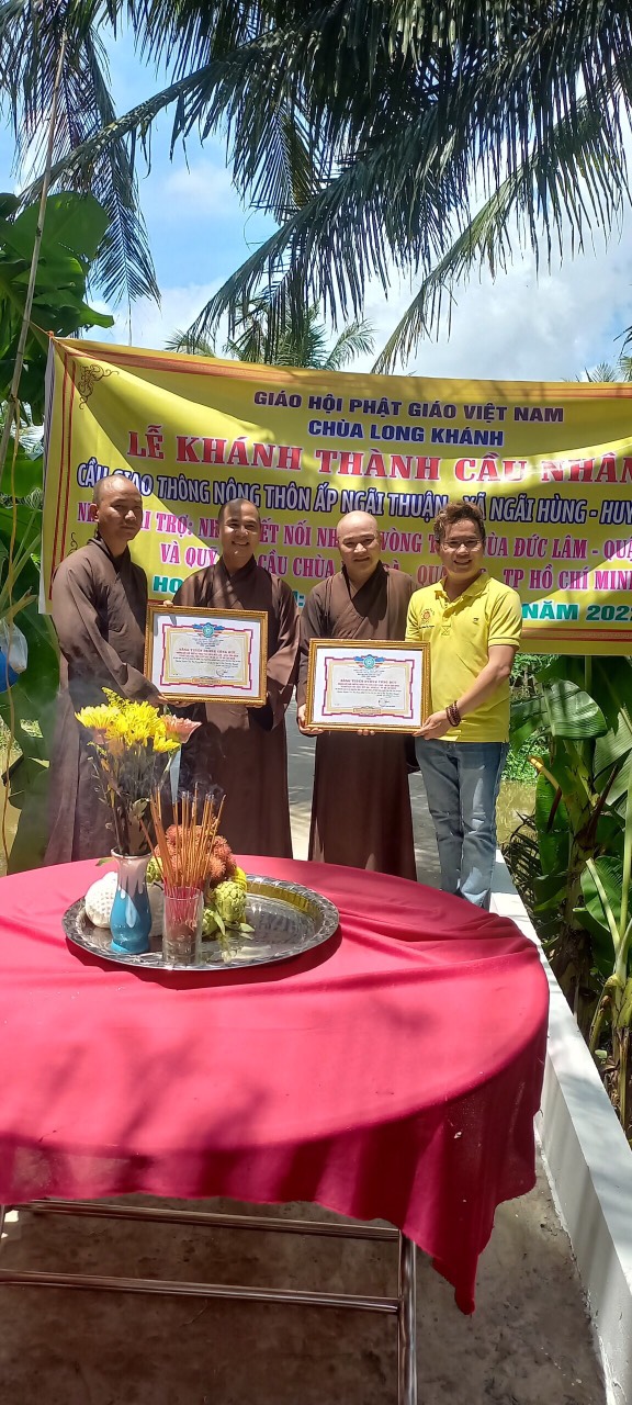 Được biết cả 2 cây cầu giao thông nông thôn lần này được xây dựng và bàn giao trên địa bàn xã Ngãi hùng do ĐĐ. Thích Dung Nhiếp và ĐĐ. Thích Hạnh Nhàn cùng nhóm Phật Tử kết nối những vòng tay TP. HCM tài trợ với tổng kinh phí hơn 200 triệu đồng.