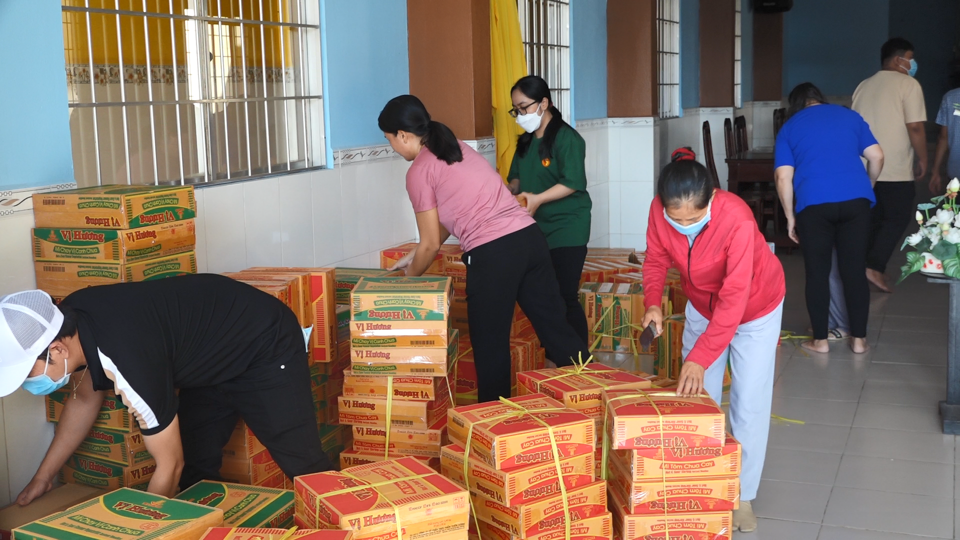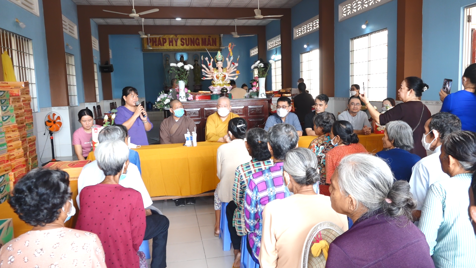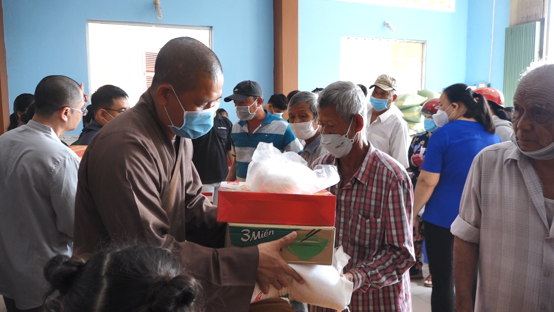 Tại đây đoàn đã phát 400 phần quà đến tận tay bà con, mỗi phần quà gồm 10kg gạo, 1 thùng mỳ cùng nhu yếu phẩm. Trị giá mỗi phần là 500 ngàn đồng. Do TT. Thích Tâm Khiết vận động sự chung tay đóng góp từ chư Tôn đức Tăng Ni, quý mạnh thường quân gần xa và Phật tử bổn tự gởi tới bà con nhân mùa Vu lan báo hiếu.