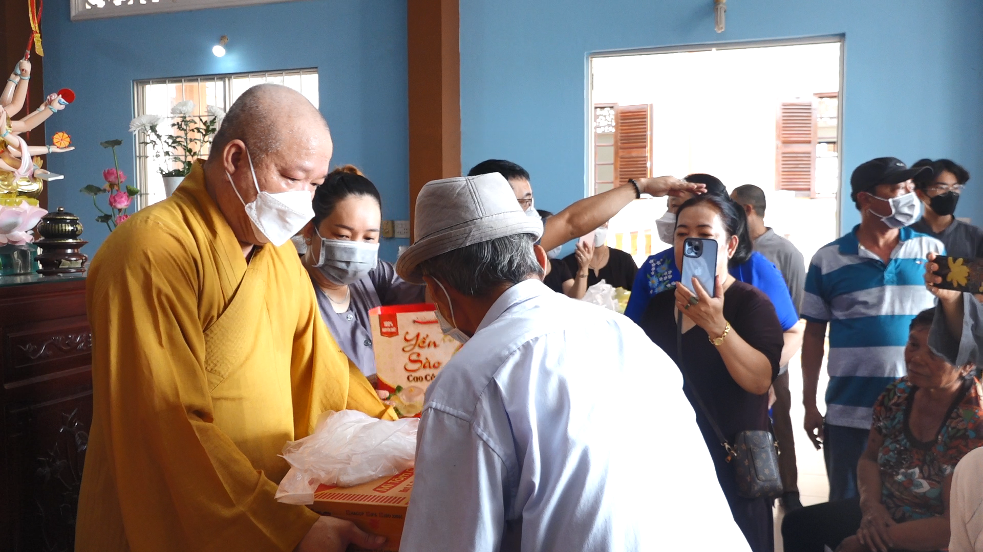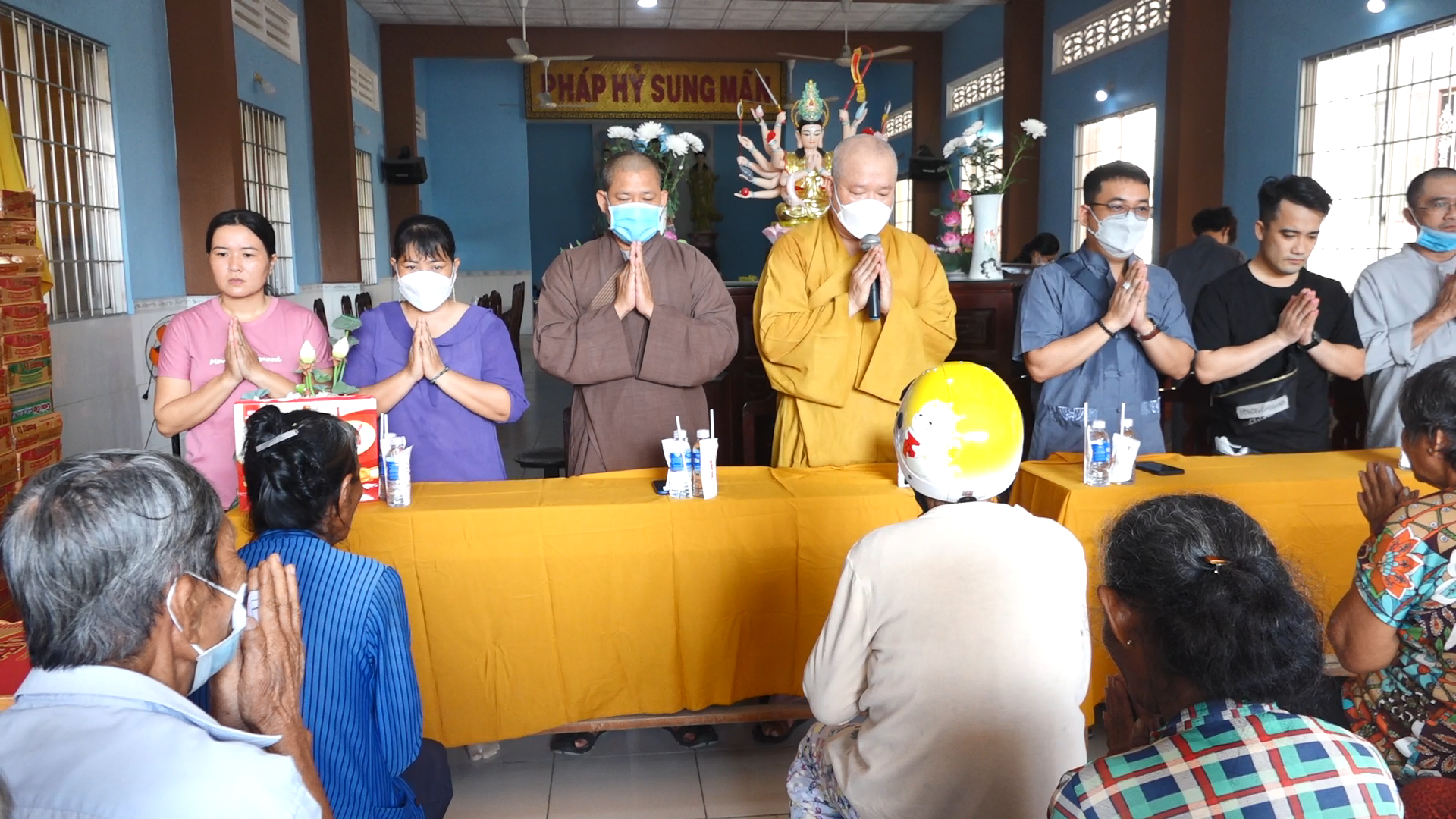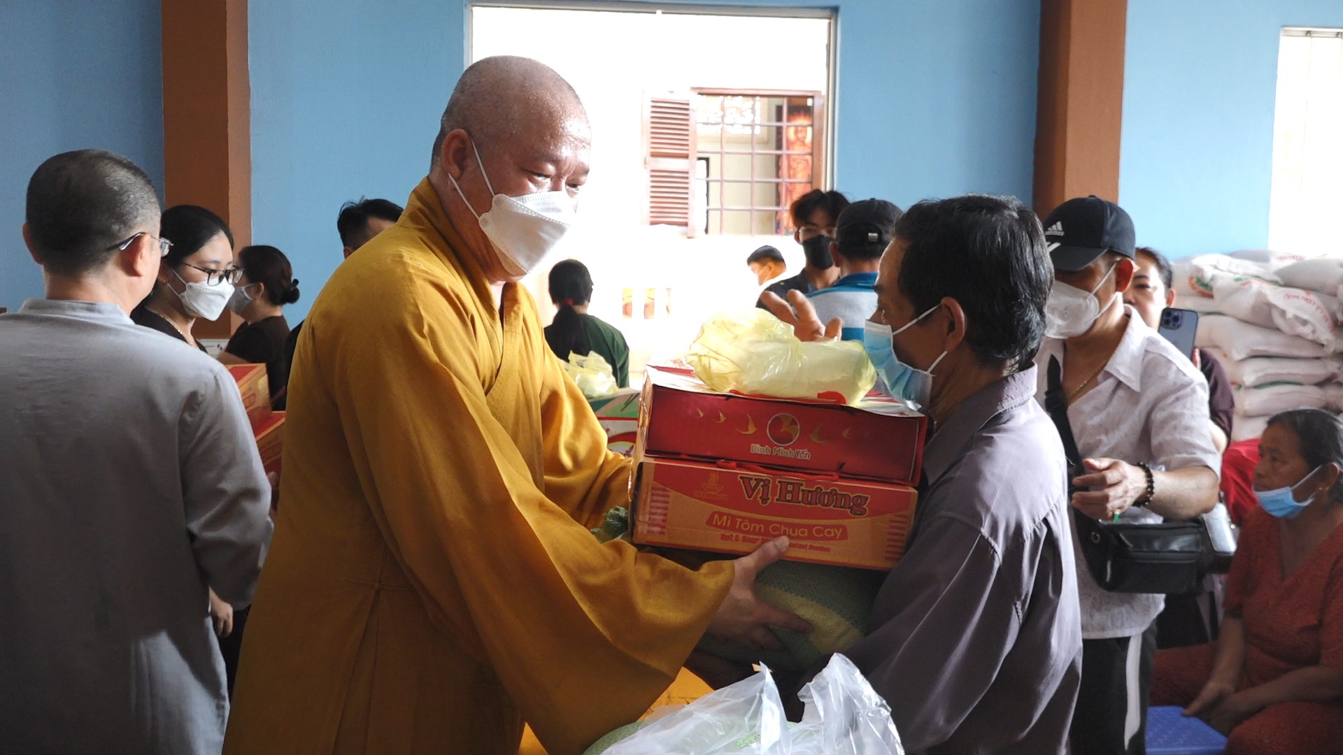 Tại đây đoàn đã phát 400 phần quà đến tận tay bà con, mỗi phần quà gồm 10kg gạo, 1 thùng mỳ cùng nhu yếu phẩm. Trị giá mỗi phần là 500 ngàn đồng. Do TT. Thích Tâm Khiết vận động sự chung tay đóng góp từ chư Tôn đức Tăng Ni, quý mạnh thường quân gần xa và Phật tử bổn tự gởi tới bà con nhân mùa Vu lan báo hiếu.