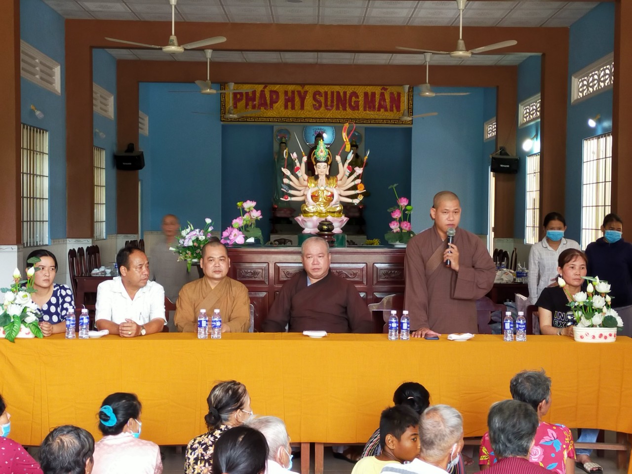 PSO - Sáng ngày 25/6/2022, TT. Thích Tâm Khiết – Phó BTS kiêm Chánh thư ký BTS GHPGVN tỉnh, trụ trì chùa Phật Tâm (ấp Đại Thôn, xã Phước Hảo, huyện Châu Thành) kết hợp cùng BTS GHPGVN huyện Chợ Lách (tỉnh Bến Tre) trao tặng 100 phần quà cho bà con có hoàn cảnh khó khăn tại xã Phước Hảo, huyện Châu Thành, tỉnh Trà Vinh. Tham dự buổi lễ còn có ĐĐ. Thích Quảng Tâm – UV BTS Phật giáo tỉnh Bến Tre, Phó Thư ký kiêm Chánh văn phòng BTS huyện Chợ Lách Đại diện chính quyền có ông Nguyễn Văn Học - Chủ tịch UBMTTQVN xã Phước Hảo; bà Trần Thị Vân Anh - Phó Chủ tịch UBMTTQVN xã Phước Hảo cùng đại diện quý mạnh thường quân tỉnh Trà Vinh và Bến Tre đồng tham dự. Thay mặt cho Phật giáo tỉnh Trà Vinh TT. Thích Tâm Khiết đã gởi lời tri ân đến ĐĐ. Thích Quảng Tâm cùng quý mạnh thường quân gần xa đã chung tay cùng Phật giáo tỉnh nhà chia sẻ những khó khăn với bà con nghèo, mong rằng những phần quà này sẽ phần giúp bà con có thêm nghị lực vươn lên trong cuộc sống. Tại đây đoàn đã phát 100 phần quà đến tận tay bà con, mỗi phần quà gồm: gạo, mì, nhu yếu phẩm và tịnh tài. Trị giá mỗi phần quà 600 ngàn đồng. Do TT. Thích Tâm Khiết vận động quý mạnh thường quân gần xa và sự trợ duyên của ĐĐ. Thích Quảng Tâm gởi tới bà con.