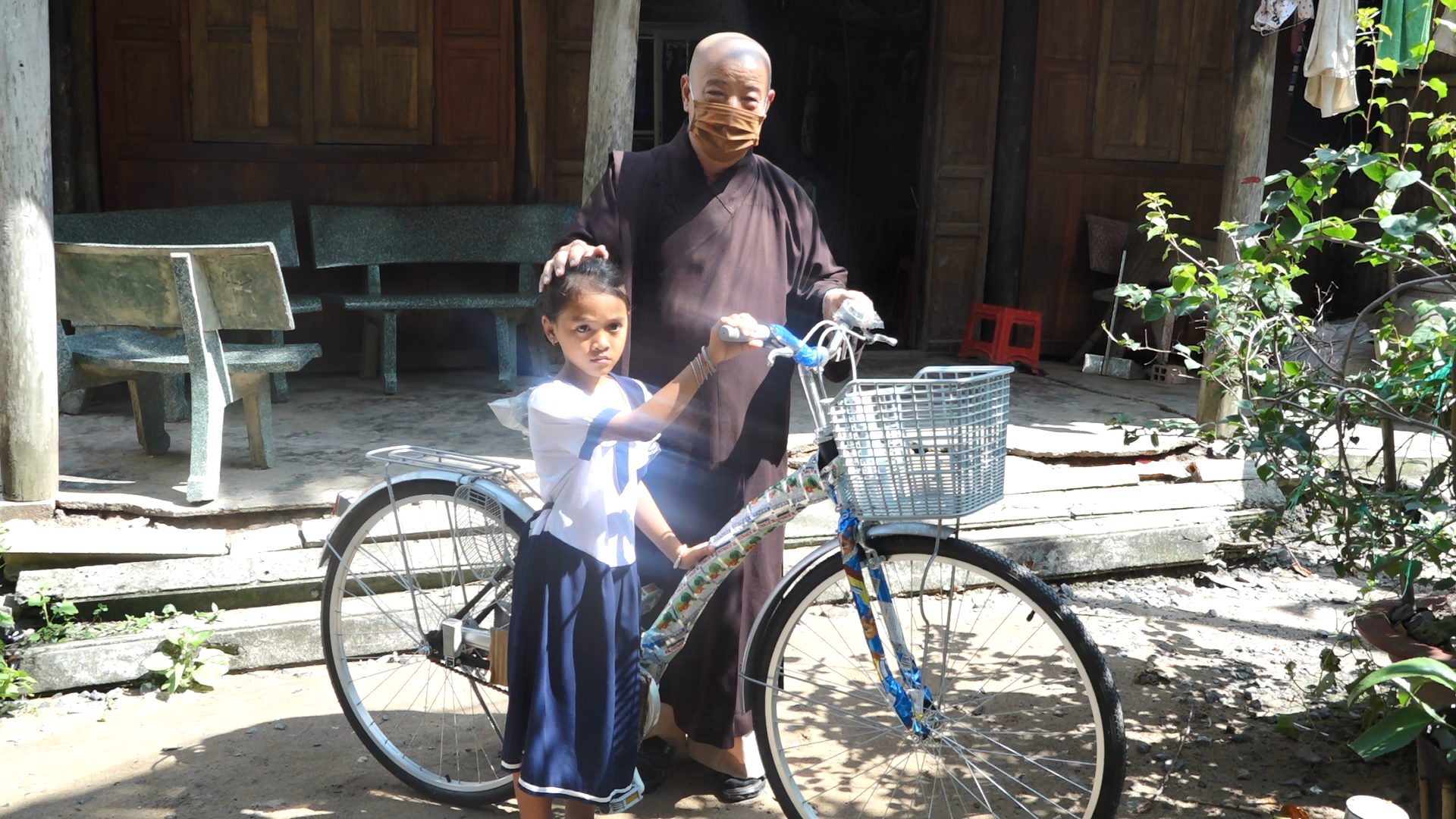 Cuối buổi lễ là nghi thức cắt băng khánh thành và bàn giao đường trong niềm vui của tất cả mọi người. Dịp này HT. Thích Trí Minh cũng trao tặng 1 chiếc xe đạp cho em Sơn Thị Mỹ Tiên học sinh lớp 2, có hoàn cảnh khó khăn và thành tích học tập tốt ở địa phương.