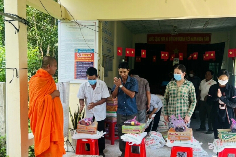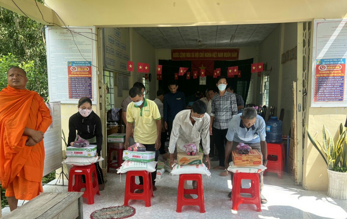 Buổi trao tặng quà với sự tham dự của ĐĐ. Thạch Sa Thanh - Ủy viên Ban Trị sự Phật giáo tỉnh, Phó chủ tịch Hội ĐKSSYN huyện Cầu Kè, Trụ trì chùa Prơm; ông Nguyễn Ánh Mới - Phó chủ tịch UBND xã Hòa Tân, cùng đại diện lãnh đạo ấp Chông Nô 3 cùng tham dự.