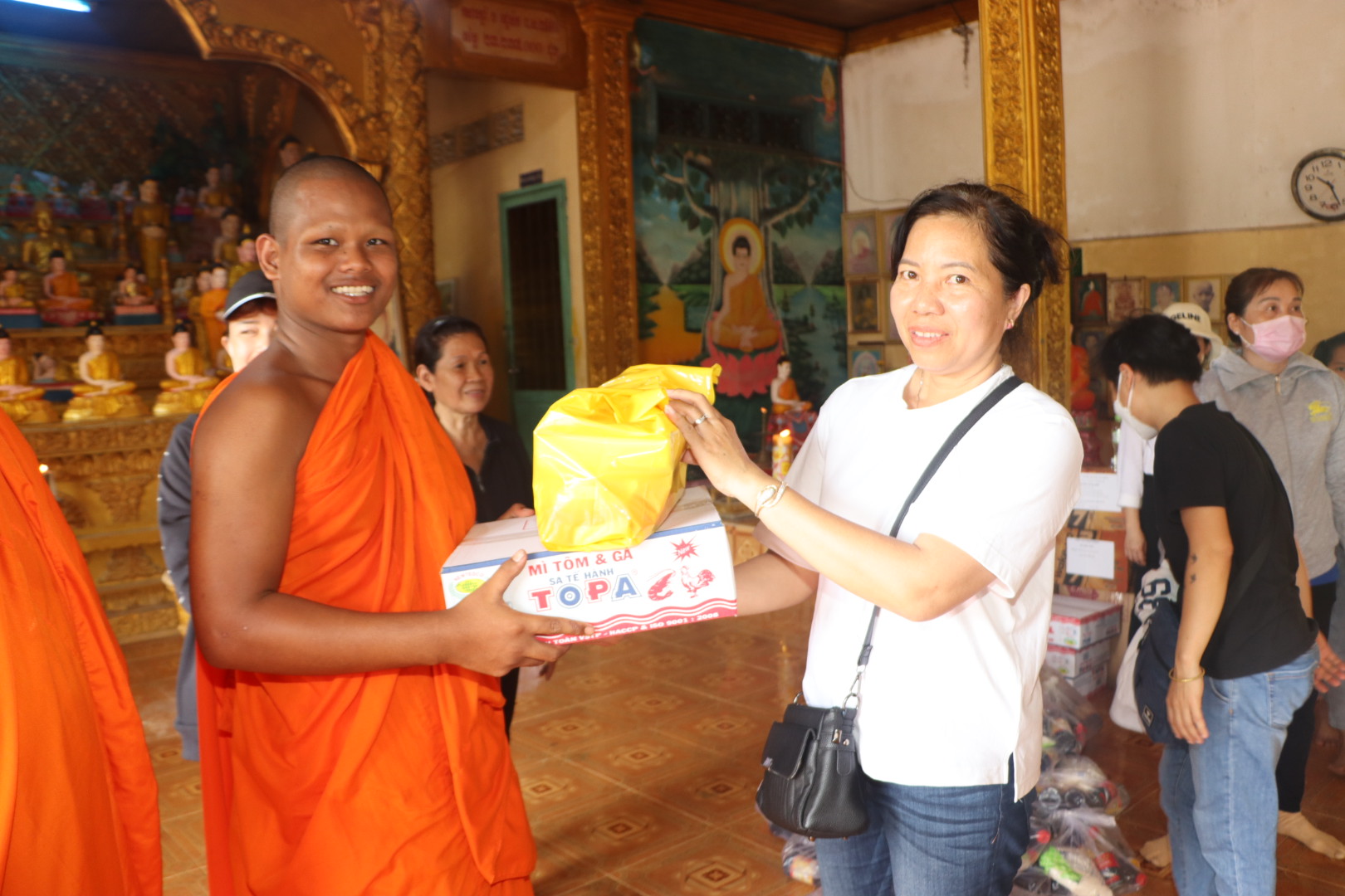 PSO - Sáng ngày 31/7/2022 (nhằm ngày 3/7 năm Nhâm Dần), nhân mùa Vu lan báo hiếu PL.2566 - DL.2022, chùa Prơm kết hợp cùng Mạnh thường quân tổ chức trao tặng 327 phần quà cho bà con hộ nghèo, hộ cận nghèo và người già neo đơn tại xã Châu Điền, xã Phong Thạnh, huyện Cầu Kè, tỉnh Trà Vinh. Tham dự buổi tặng quà có ĐĐ. Thạch Sa Thanh - Ủy viên Ban Trị sự Phật giáo tỉnh, Phó chủ tịch Hội ĐKSSYN huyện Cầu Kè, Trụ trì chùa Prơm, cùng Ban quản trị chùa và Đoàn mạnh thường quân TP.HCM. Tại buổi tặng quà ĐĐ. Thạch Sa Thanh đã ân cần thăm hỏi sức khỏe, cũng như đời sống sinh hoạt của quý bà con Phật tử. Đồng thời, Đại đức cũng gởi lời cám ơn đến quý mạnh thường quân, nhà hảo tâm tại TP.HCM đã không quản đường xa, xuống đây hỗ trợ quà để chia phần nào khó khăn cùng với người dân nơi đây. Thay mặt cho chư Tăng, BQT chùa và bà con, ĐĐ. Thạch Sa Thanh chúc quý mạnh thường quân và gia đình đón một mùa Vu Lan báo hiếu PL.2566 an lạc, hạnh phúc và luôn hưởng được 5 pháp chúc mừng của Đức Phật "Sống lâu, sắc đẹp, an vui, sức mạnh và trí tuệ". Tại chùa Prơm đoàn đã trao tặng 327 phần quà, trong đó 27 phần đến chư Tăng tại chùa nhân mùa An cư kiết hạ, phần còn lại cho người dân thuộc diện hộ nghèo, hộ cận nghèo, người già neo đơn và hộ gia đình đang gặp khó khăn tại 8 ấp ở (xã Châu Điền) và 1 ấp tại (xã Phong Thạnh), mỗi phần trị giá 300 ngàn đồng, bao gồm: gạo, mì và các nhu yếu phẩm khác. Với tổng kinh phí cho đợt từ thiện lần này là gần 100 triệu đồng. Với hạnh nguyện "Phụng sự chúng sanh là thiết thực cúng dường chư Phật", chùa Prơm luôn đồng hành cùng chính quyền địa phương các cấp, trong công tác an sinh xã hội chung tay chăm lo đến đời sống tinh thần của người dân khó khăn, người yếu thế trên địa bàn.