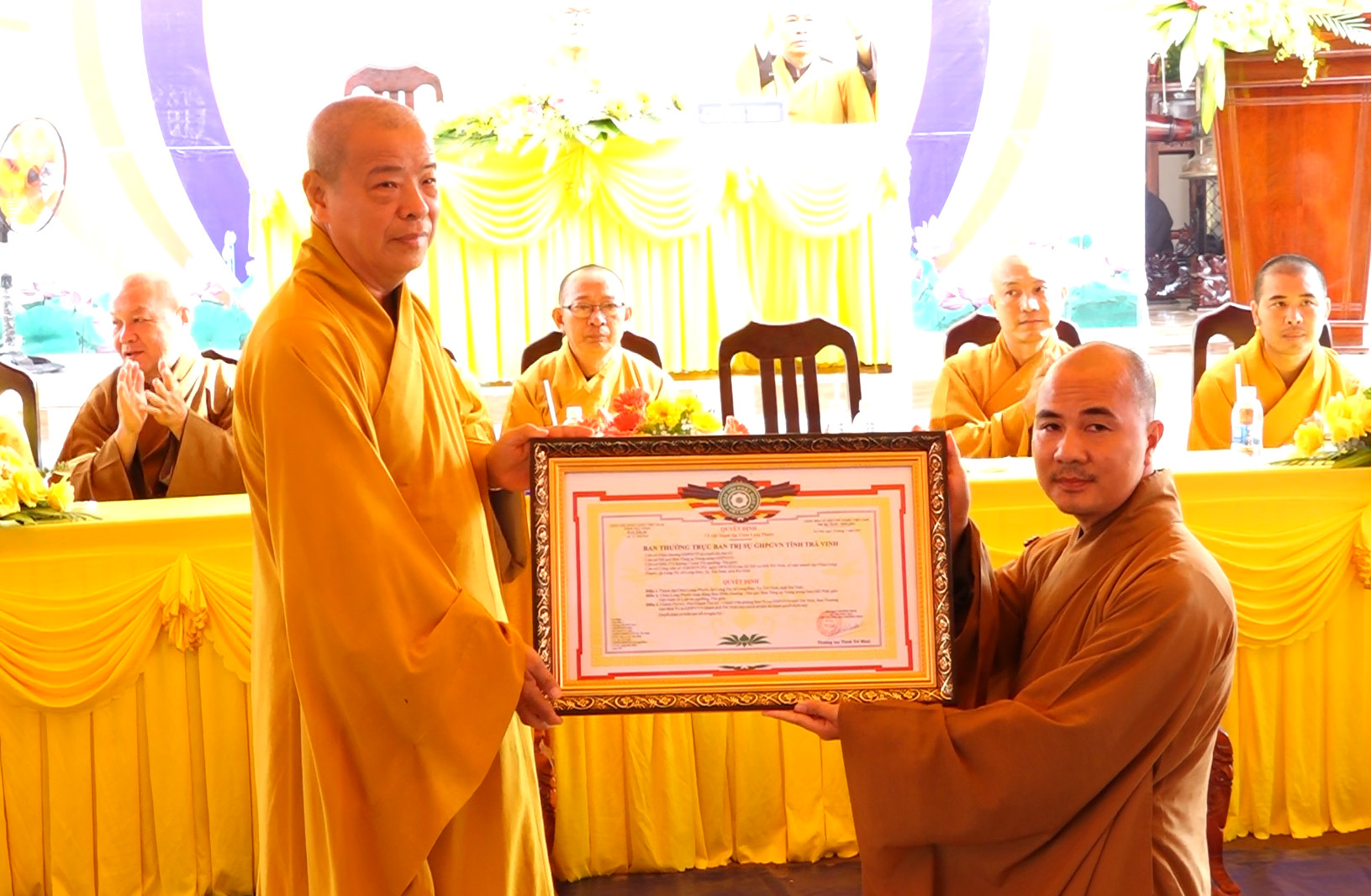 Thay mặt BTS tỉnh, TT.Thích Trí Minh đã trao quyết định thành lập ngôi chùa và quyết định nhân sự quản lý chùa. BTS GHPGVN tỉnh Trà Vinh cũng trao tặng khánh vàng cho ĐĐ.Thích Thiện Phước, thế danh Cao Đạt, sinh năm 1996, tu sĩ chùa Liên Quang, huyện Châu Thành, tỉnh Trà Vinh.