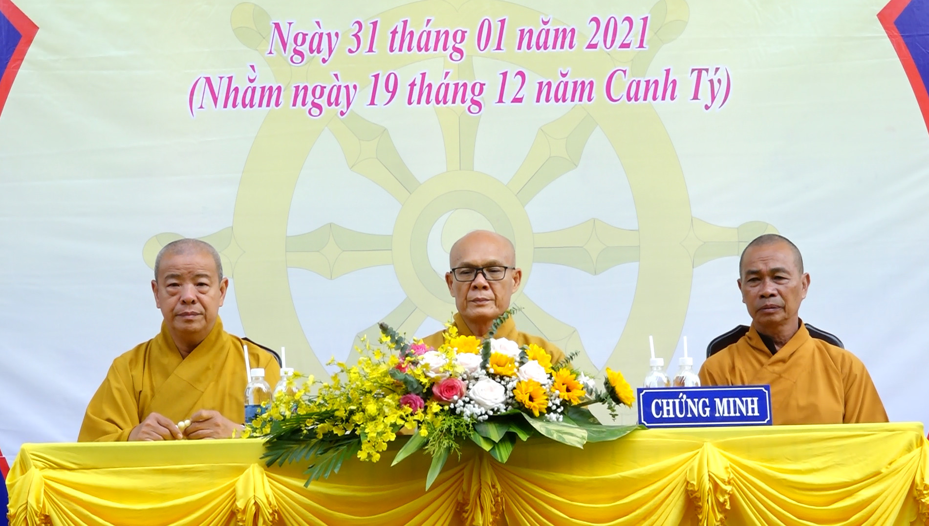 Chứng minh tham dự buổi lễ có HT. Thích Tâm Linh - Chứng minh BTS Phật giáo tỉnh, Trưởng BTS phật giáo TP. Trà Vinh; TT.Thích Trí Minh - Ủy viên HĐTS, Phó trưởng Ban Thường trực BTS Phật giáo tỉnh; TT.Thích Huệ Pháp - Phó BTS, Trưởng ban Tăng sự GHPGVN tỉnh; ĐĐ.Thích Tâm Khiết - Chánh Thư ký BTS GHPGVN tỉnh; ĐĐ.Thích Huệ Thắng - Trưởng ban Kiểm soát GHPGVN tỉnh, Phó trưởng Ban Thường trực BTS huyện Châu Thành, tỉnh Trà Vinh cùng chư Tôn đức Tăng Ni trong Ban Thường trực BTS Phật giáo tỉnh, chư Tôn đức Trụ trì các cơ sở tự viện trong tỉnh; Đại diện chính quyền, quý Nam nữ Phật tử đồng tham dự.