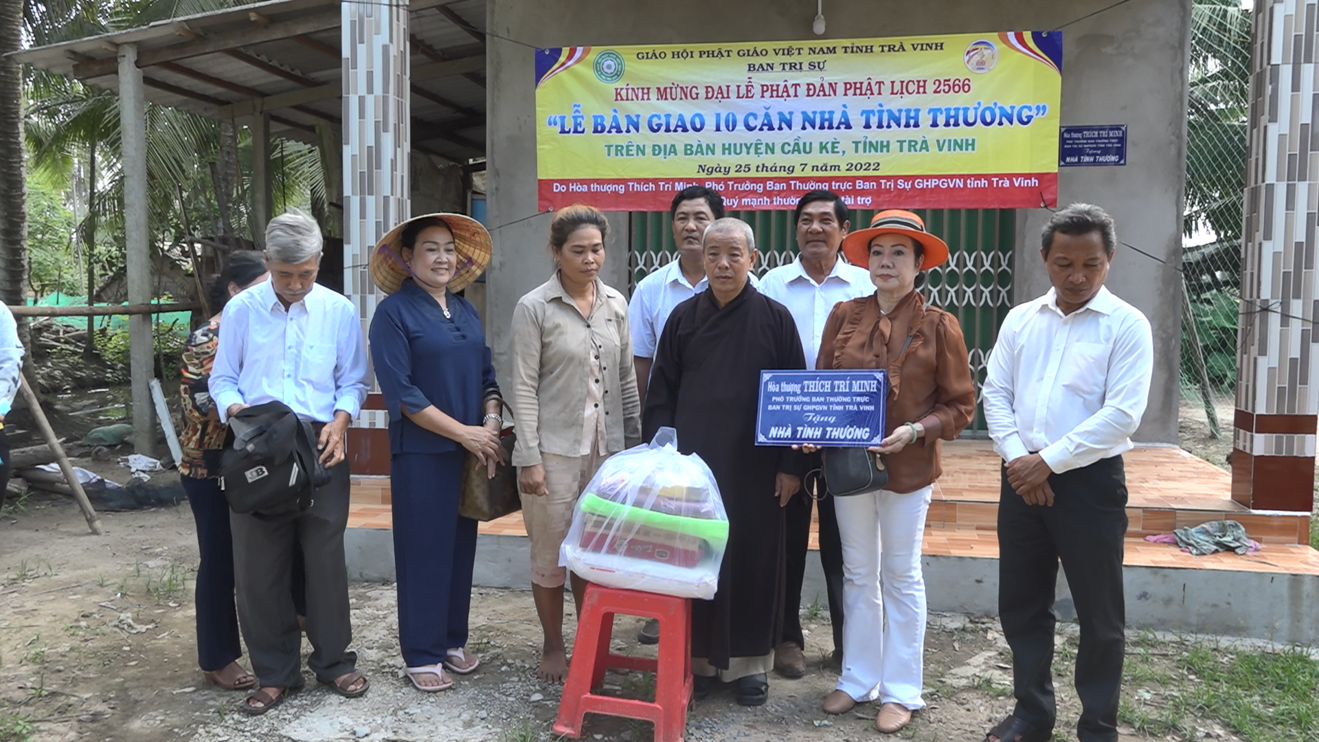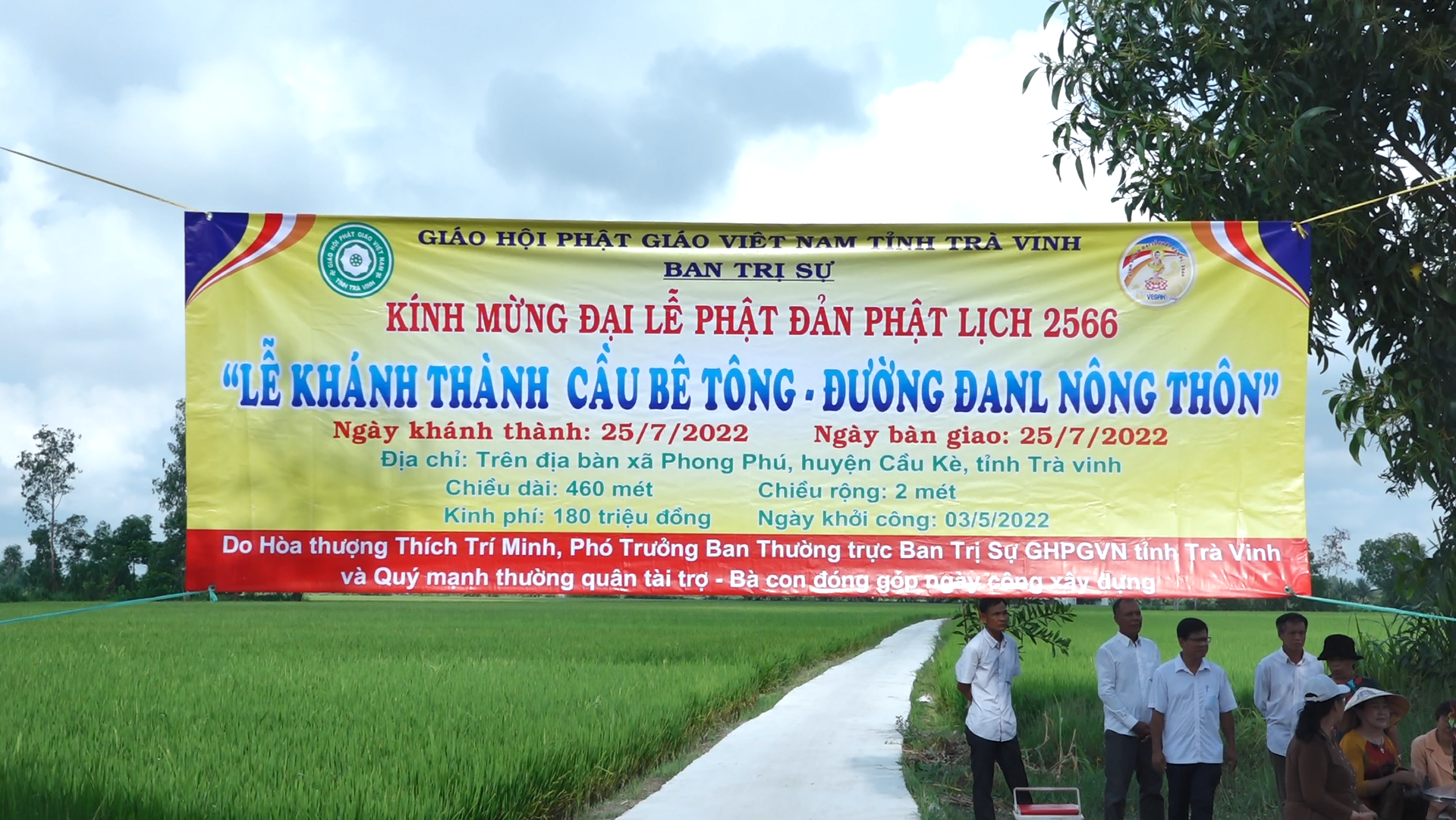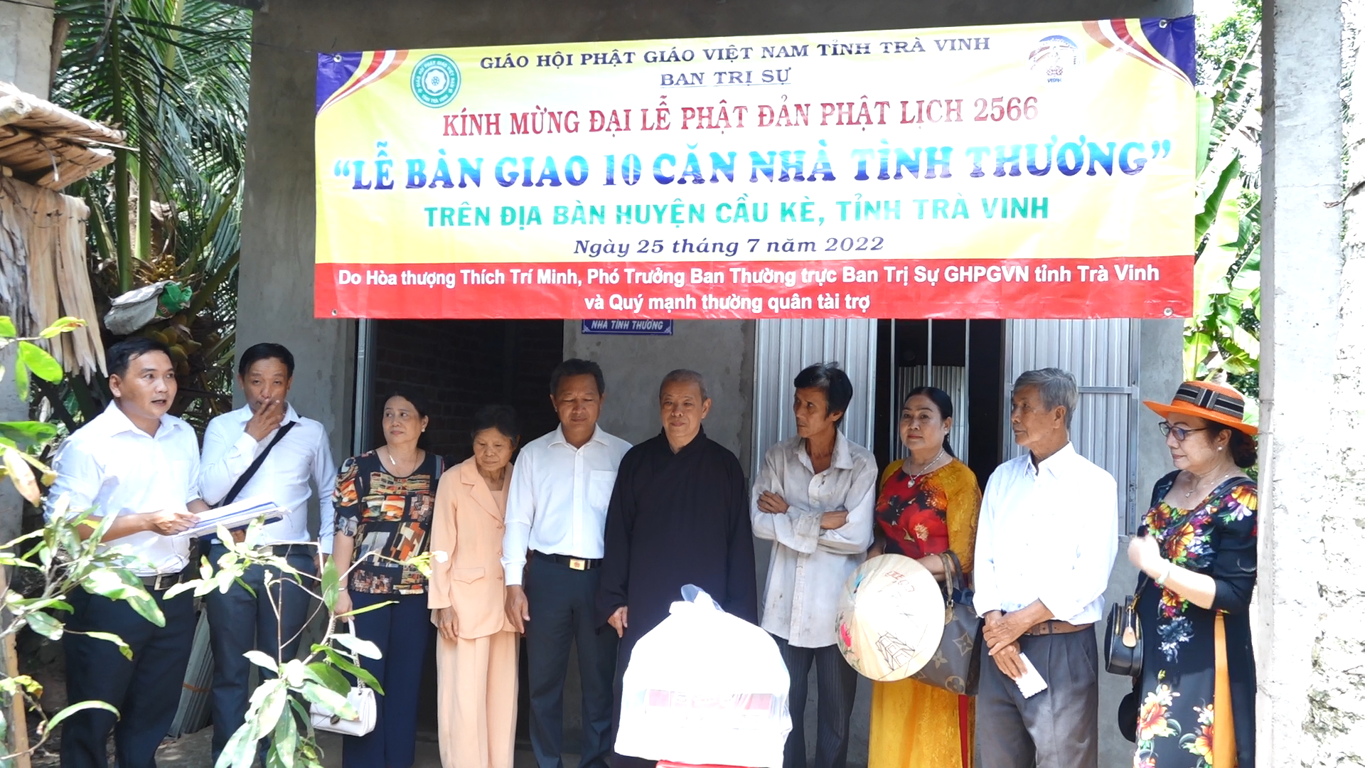 PSO – Sáng ngày 25/7/2022, HT. Thích Trí Minh – UV HĐTS, Phó Trưởng Ban thường trực BTS Phật giáo tỉnh, Trưởng BTS huyện Cầu Kè đã kết hợp cùng chính quyền địa phương và nhà tài trợ khánh thành cầu, đường giao thông nông thôn và bàn giao 10 căn nhà tình thương tại xã Ninh Thới, Phong Phú, Châu Điền, Hòa Tân và Thông Hòa, huyện Cầu Kè, tỉnh Trà Vinh. Đại diện chính quyền có ông Thạch Khuônl – Phó Chủ tịch UBMTTQVN huyện cùng các cấp chính quyền địa phương sở tại và đại diện nhà tài trợ Phật tử Ngọc Duyên (TP. Long Xuyên), Phật tử Lưu Thị Ánh Hồng (TP. HCM). Phát biểu tại lễ bàn giao cầu và đường giao thông nông thôn tại xã Phong Phú, HT. Thích Trí Minh cho biết: việc khánh thành và đưa vào sử dụng cầu và đường giao thông nông thôn sẽ giúp cho bà con đi lại được dễ dàng và thuận tiện hơn trong việc lưu thông hàng hóa, các em học sinh tới trường được thuận tiện hơn, đây cũng là một trong những chương trình của quỹ an sinh xã hội mà BTS Phật giáo tỉnh đã động để chăm lo cho đời sống bà con ngày càng tốt hơn. Thay mặt chính quyền và người dân nơi đây ông Thạch Khuônl đã gởi lời cảm ơn đến BTS GHPGVN tỉnh và HT. Thích Trí Minh cùng quý mạnh thường quân đã hỗ trợ cho địa phương có một tuyến đường và cầu giao thông nông thôn mới. Ông cũng chia sẻ thêm, hằng năm với sự giúp đỡ của Phật giáo và sự vận động của HT. Thích Trí Minh trên địa bàn huyện Cầu Kè đã có rất nhiều tuyến đường và cầu nông thôn được xây dựng góp một phần không nhỏ cùng với chính quyền địa phương xây dựng quê hương ngày càng giàu đẹp. Tuyến đường giao thông nông thôn lần này được bàn giao tại ấp Đồng Khoen, xã Phong Phú, huyện Cầu Kè, với chiều dài 420m ngang 2m với tổng kinh phí xây dựng 180 triệu đồng cầu giao thông nông thôn với chiều dài 23m, ngang 2m với kinh phí hơn 75 triệu đồng do HT. Thích Trí Minh cùng quý mạnh thường quân tài trợ, bà con địa phương góp ngày công xây dựng. Chiều cùng ngày đoàn đã kết hợp cùng chính quyền trên huyện Cầu Kè khảo bàn giao 10 căn nhà tình thương cho các hộ gia đình gặp khó khăn về nhà ở, mỗi căn nhà được HT. Thích Trí Minh và quý mạnh thường quân hỗ trợ 40 triêu đồng. Phần lớn các hộ gia đình này đều thuộc hộ nghèo của huyện, không có công việc ổn định, hàng ngày đều lo ăn từng bữa, ước mơ có một căn nhà khang trang che mưa trú nắng càng thêm khó khăn. Tại mỗi hộ gia đình HT. Thích Trí Minh đã ân cần động viên thăm hỏi, cũng như căn dặn gia đình cần nỗ lực lo làm ăn để chăm lo cho con cái có cuộc sống ngày càng tốt hơn. Mong rằng sau khi được căn nhà khang trang như mơ ước các hộ gia đình sẽ có thêm động lực từng bước vươn lên thoát nghèo. Cuối ngày đoàn đã khảo sát và hỗ trợ tiếp tục cho 6 gia đình có hoàn cảnh đặc biệt khó khăn về nhà ở cũng như hỗ trợ tiếp tục một tuyến đường giao thông nông thôn dài 450m. Tổng kinh phí trong chuyến từ thiện lần này là hơn 700 triệu đồng. Có thể nói đây là một trong những việc làm thiết thực thể hiện lòng từ bi của người con Phật trong mùa Đại lễ Vu lan đang đến gần.