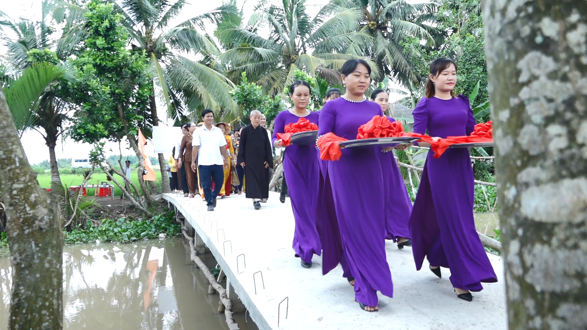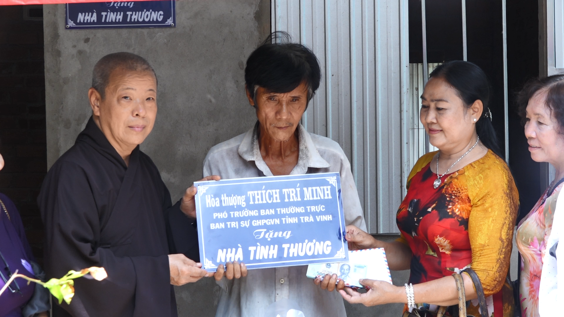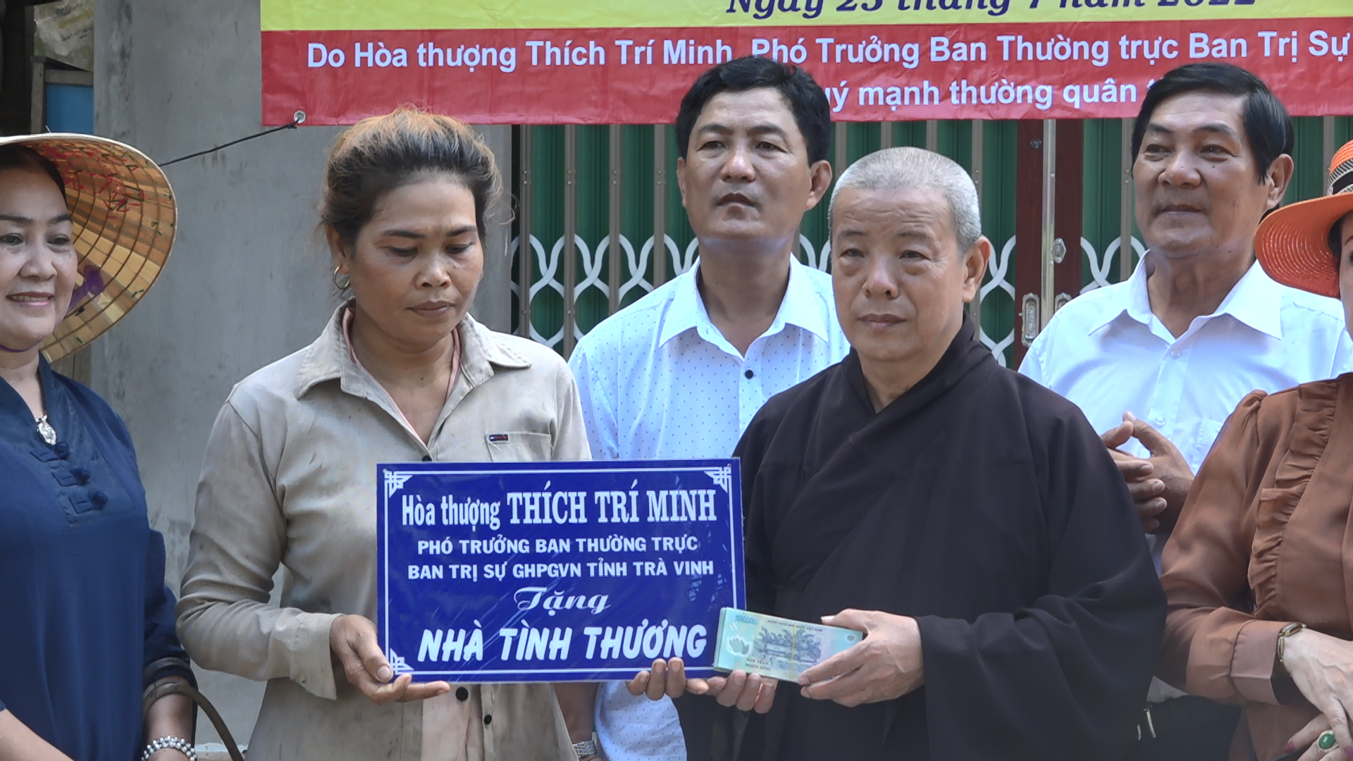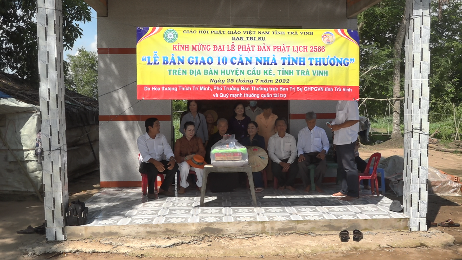 PSO – Sáng ngày 25/7/2022, HT. Thích Trí Minh – UV HĐTS, Phó Trưởng Ban thường trực BTS Phật giáo tỉnh, Trưởng BTS huyện Cầu Kè đã kết hợp cùng chính quyền địa phương và nhà tài trợ khánh thành cầu, đường giao thông nông thôn và bàn giao 10 căn nhà tình thương tại xã Ninh Thới, Phong Phú, Châu Điền, Hòa Tân và Thông Hòa, huyện Cầu Kè, tỉnh Trà Vinh. Đại diện chính quyền có ông Thạch Khuônl – Phó Chủ tịch UBMTTQVN huyện cùng các cấp chính quyền địa phương sở tại và đại diện nhà tài trợ Phật tử Ngọc Duyên (TP. Long Xuyên), Phật tử Lưu Thị Ánh Hồng (TP. HCM). Phát biểu tại lễ bàn giao cầu và đường giao thông nông thôn tại xã Phong Phú, HT. Thích Trí Minh cho biết: việc khánh thành và đưa vào sử dụng cầu và đường giao thông nông thôn sẽ giúp cho bà con đi lại được dễ dàng và thuận tiện hơn trong việc lưu thông hàng hóa, các em học sinh tới trường được thuận tiện hơn, đây cũng là một trong những chương trình của quỹ an sinh xã hội mà BTS Phật giáo tỉnh đã động để chăm lo cho đời sống bà con ngày càng tốt hơn. Thay mặt chính quyền và người dân nơi đây ông Thạch Khuônl đã gởi lời cảm ơn đến BTS GHPGVN tỉnh và HT. Thích Trí Minh cùng quý mạnh thường quân đã hỗ trợ cho địa phương có một tuyến đường và cầu giao thông nông thôn mới. Ông cũng chia sẻ thêm, hằng năm với sự giúp đỡ của Phật giáo và sự vận động của HT. Thích Trí Minh trên địa bàn huyện Cầu Kè đã có rất nhiều tuyến đường và cầu nông thôn được xây dựng góp một phần không nhỏ cùng với chính quyền địa phương xây dựng quê hương ngày càng giàu đẹp. Tuyến đường giao thông nông thôn lần này được bàn giao tại ấp Đồng Khoen, xã Phong Phú, huyện Cầu Kè, với chiều dài 420m ngang 2m với tổng kinh phí xây dựng 180 triệu đồng cầu giao thông nông thôn với chiều dài 23m, ngang 2m với kinh phí hơn 75 triệu đồng do HT. Thích Trí Minh cùng quý mạnh thường quân tài trợ, bà con địa phương góp ngày công xây dựng. Chiều cùng ngày đoàn đã kết hợp cùng chính quyền trên huyện Cầu Kè khảo bàn giao 10 căn nhà tình thương cho các hộ gia đình gặp khó khăn về nhà ở, mỗi căn nhà được HT. Thích Trí Minh và quý mạnh thường quân hỗ trợ 40 triêu đồng. Phần lớn các hộ gia đình này đều thuộc hộ nghèo của huyện, không có công việc ổn định, hàng ngày đều lo ăn từng bữa, ước mơ có một căn nhà khang trang che mưa trú nắng càng thêm khó khăn. Tại mỗi hộ gia đình HT. Thích Trí Minh đã ân cần động viên thăm hỏi, cũng như căn dặn gia đình cần nỗ lực lo làm ăn để chăm lo cho con cái có cuộc sống ngày càng tốt hơn. Mong rằng sau khi được căn nhà khang trang như mơ ước các hộ gia đình sẽ có thêm động lực từng bước vươn lên thoát nghèo. Cuối ngày đoàn đã khảo sát và hỗ trợ tiếp tục cho 6 gia đình có hoàn cảnh đặc biệt khó khăn về nhà ở cũng như hỗ trợ tiếp tục một tuyến đường giao thông nông thôn dài 450m. Tổng kinh phí trong chuyến từ thiện lần này là hơn 700 triệu đồng. Có thể nói đây là một trong những việc làm thiết thực thể hiện lòng từ bi của người con Phật trong mùa Đại lễ Vu lan đang đến gần.
