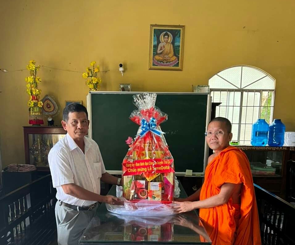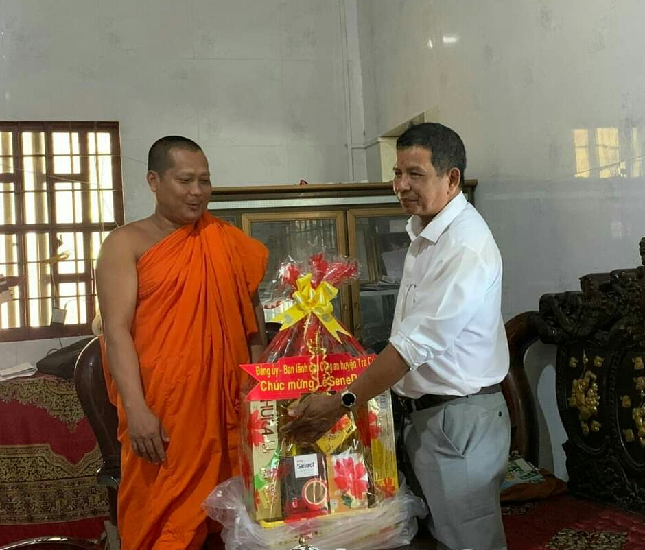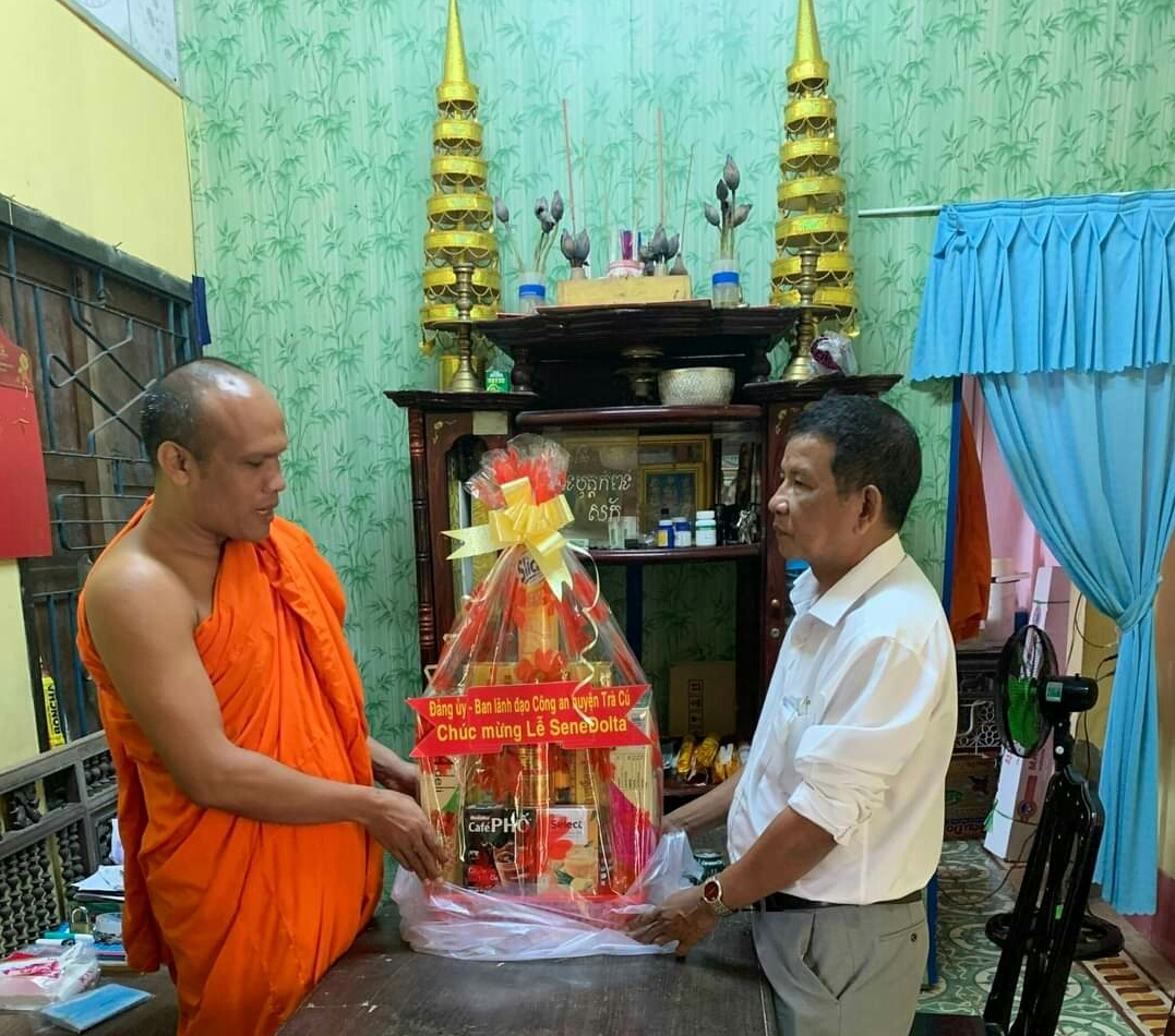 PSO - Ngày 23/9/2022 ( nhằm ngày 28/8 năm Nhâm Dần ) Nhân dịp Lễ Sêne Đôlta năm 2022 của đồng bào Khmer, nhằm thể hiện sự quan tâm, đoàn kết gắn bó giữa lực lượng Công an với các vị chư Tăng và đồng bào phật tử Khmer, Đảng ủy - Ban lãnh đạo Công an huyện Trà Cú đến thăm, chúc mừng và tặng quà các chùa và người có uy tín dân tộc Khmer trên địa bàn huyện.