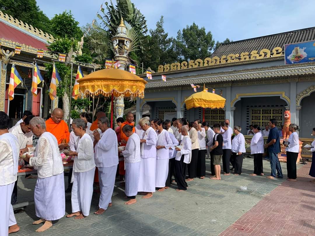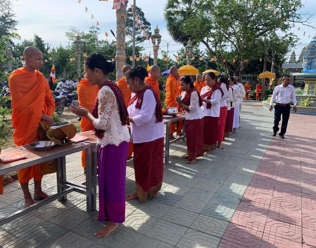 PSO - Sáng ngày 25/9/2022 ( nhằm ngày 30/8 năm Nhâm Dần ) Đặt bát là nét đẹp truyền thống của Phật giáo có từ thời Đức Phật, từ sáng sớm đông đảo bà con Phật tử dân tộc Khmer đã huân tập để tham dự đặt bát đến toàn thể chư Tăng tại Chùa Xoài Xiêm Cũ, ấp Xoài Thum, xã Ngãi Xuyên, huyện Trà Cú, tỉnh Trà Vinh.