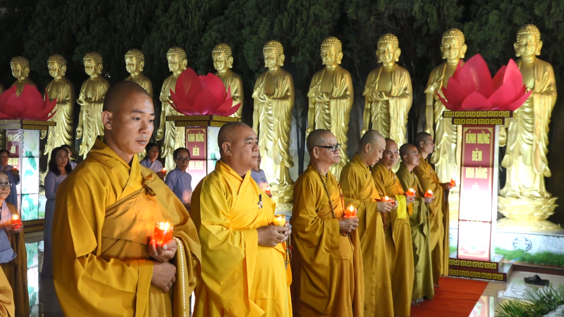 Cuối buổi lễ chư Tôn đức cùng đại chúng có mặt tại đêm hội đã trang nghiêm thành kính hướng lòng đồng tụng 12 lời nguyện của đức Phật, nguyện cầu cho thế giới hòa bình, chúng sinh an lạc.
