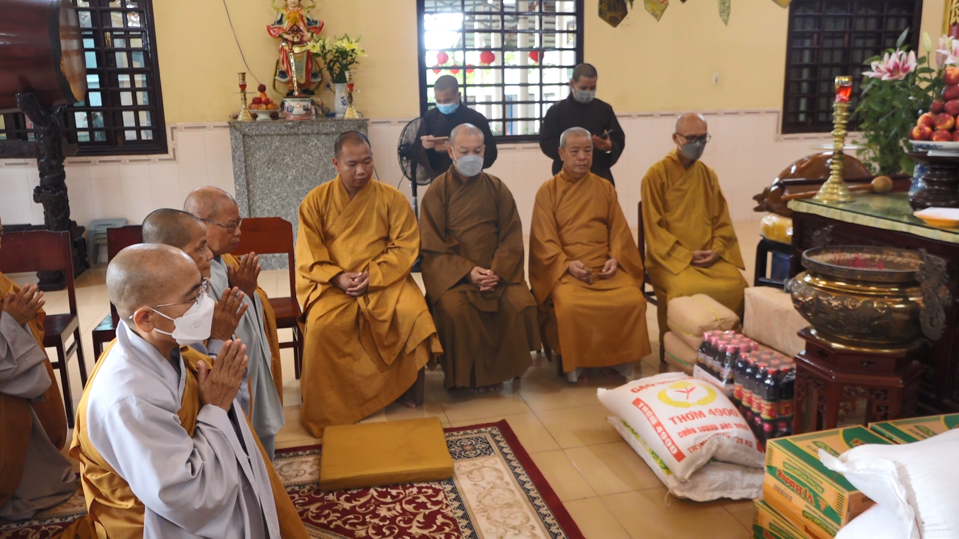 Cùng đi với đoàn còn có HT. Thích Tâm Linh – Chứng minh BTS GHPGVN tỉnh; HT. Thích Huệ Pháp – Phó BTS kiêm Trưởng Ban Tăng sự Phật giáo tỉnh; ĐĐ. Thích Huệ Thắng – Phó BTS kiêm Trưởng Ban kiểm soát GHPGVN tỉnh cùng chư Tôn đức thường trực BTS GHPGVN tỉnh Trà Vinh.