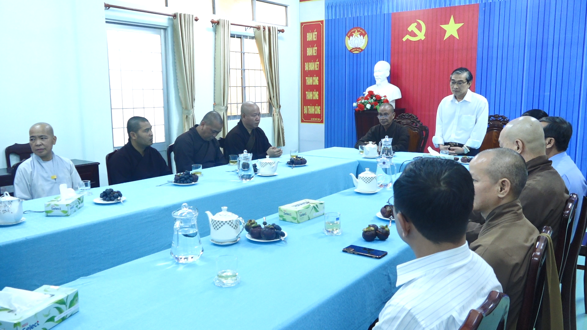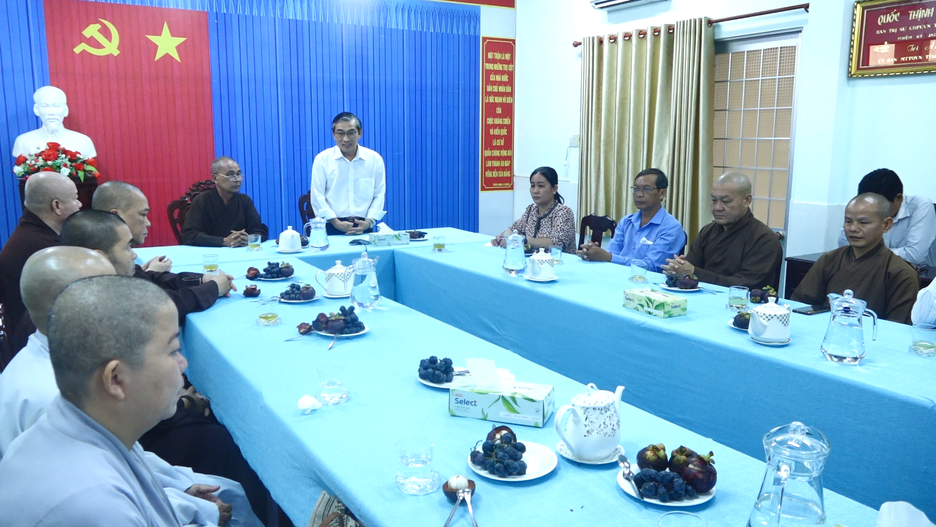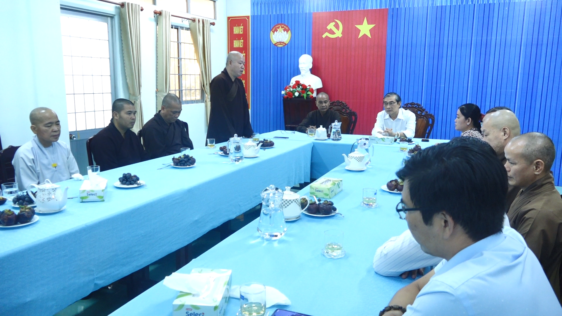 Trong buổi làm việc này UBMTTQVN tỉnh đã cùng Thường trực BTS Phật giáo tỉnh thảo luận về các phong trào vận động thi đua yêu nước và công tác an sinh xã hội tại địa phương. Trong thời qua BTS Phật giáo tỉnh đã hưởng ứng các phong trào do UBMTTQVN tỉnh phát động nhằm giúp đỡ các bà con bị ảnh hưởng trong đợt Đại dịch COVID – 19 vừa qua với tổng số tiền hơn 40 tỷ đồng. Bên cạnh đó BTS Phật giáo tỉnh còn tích cực trong các công tác an sinh xã hội tại địa phương như: tặng quà cho bà con có hoàn cảnh khó khăn, xây dựng nhà tình thương, làm cầu đường giao thông nông thôn... Trong 6 tháng đầu năm kinh phí trong các hoạt động an sinh xã hội đã đạt được hơn 36 tỷ đồng. Song bên cạnh đó BTS Phật giáo tỉnh còn phối hợp cùng các ban ngành địa phương tuyên truyền các chính sách của Đảng, pháp luật nhà Nước đến với cộng đồng Phật tử, góp phần giữ vững an ninh trật tự trên địa bàn.