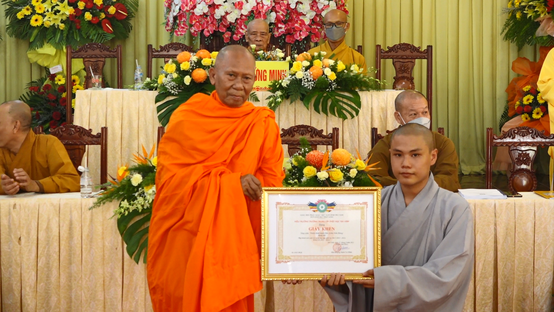 Chứng minh và tham dự buổi lễ có HT. Thích Thiện Thông – Thành viên HĐCM, Chứng minh BTS Phật giáo tỉnh; HT. Thạch Sok Xane – Phó Chủ tịch HĐTS, Trưởng BTS GHPGVN tỉnh; HT. Thích Tâm Linh – Chứng minh BTS Phật giáo tỉnh; HT. Thích Trí Minh – UV HĐTS, Phó Trưởng Ban thường trực BTS Phật giáo tỉnh, Trưởng Ban Giáo dục Phật giáo tỉnh, Hiệu trưởng trường trung cấp Phật học tỉnh; HT. Thích Huệ Pháp – Phó BTS kiêm Trưởng Ban Tăng sự Phật giáo tỉnh cùng chư Tôn đức trong BTS Phật giáo tỉnh, chư Tôn đức Ban Giáo dục Phật giáo tỉnh, cùng đông đảo Tăng Ni sinh đồng tham dự.
