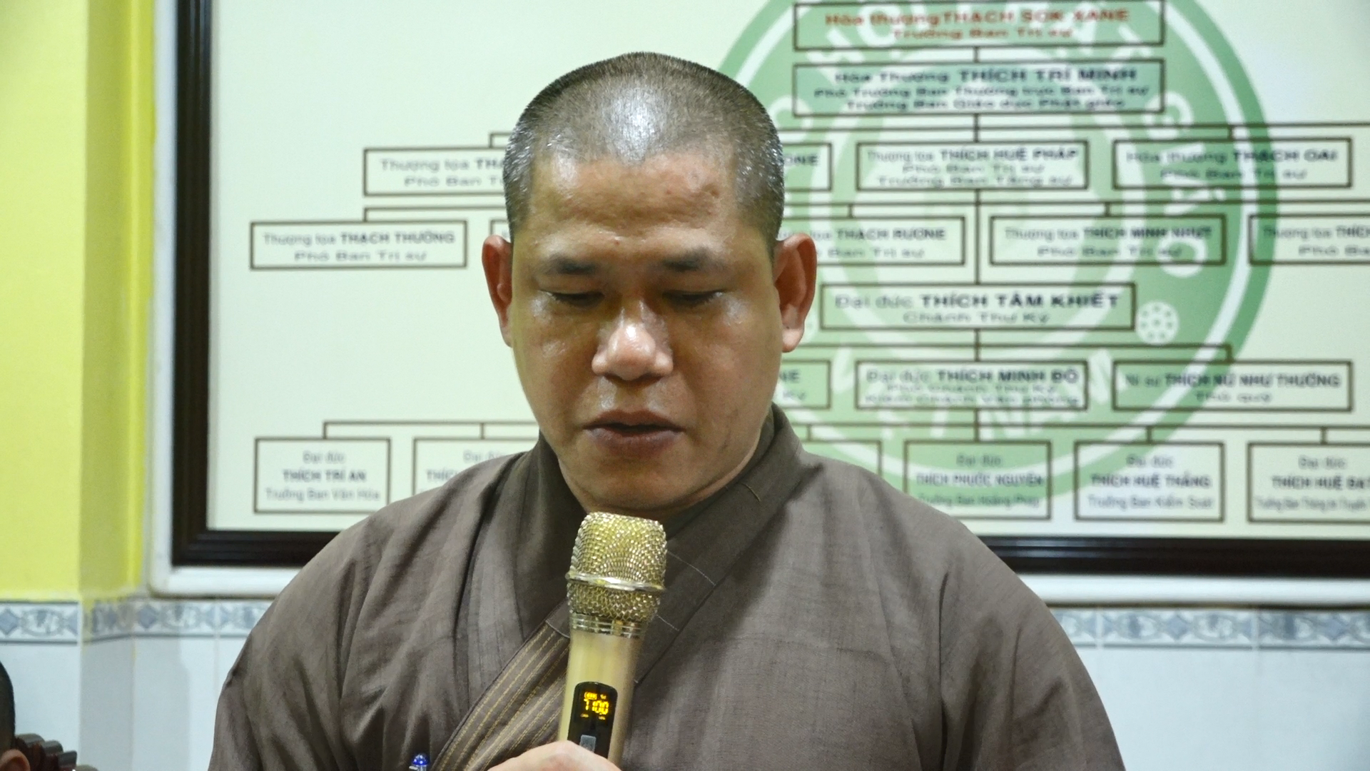 Tiếp đến ĐĐ. Thích Thiện Hải – Phó Hiệu trưởng học vụ trường TCPH tỉnh đã thông qua chương trình giảng dạy năm II của Trường TCPH lên chư Tôn đức.