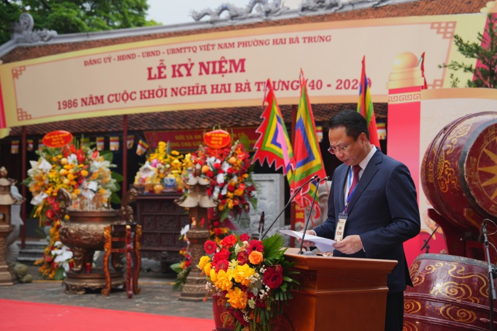 Đọc diễn văn tại Lễ kỷ niệm, ông Nguyễn Mạnh Hùng - Phó bí thư Đảng ủy, Chủ tịch UBND phường Hai Bà Trưng, Trưởng ban Tổ chức lễ kỷ niệm nhấn mạnh đây là cuộc khởi nghĩa đầu tiên trong lịch sử do phụ nữ lãnh đạo, thể hiện khát vọng độc lập, tự chủ và khẳng định vai trò to lớn của người phụ nữ trong sự nghiệp dựng nước và giữ nước, làm rạng danh non sông gấm vóc.