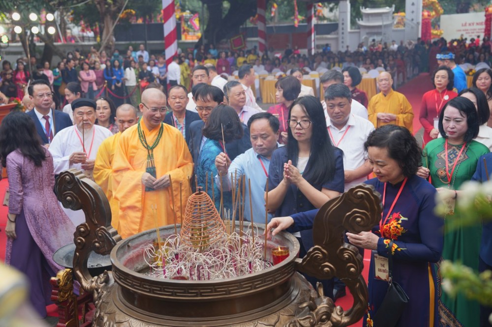 Tại buổi lễ, trong không khí trang nghiêm, thành kính, các đại biểu và Nhân dân đã dâng hương tưởng niệm, tri ân công đức Hai Bà Trưng cùng các tướng lĩnh, nghĩa sĩ đã anh dũng đứng lên đánh đuổi quân xâm lược Đông Hán, khôi phục nền độc lập dân tộc. Cuộc khởi nghĩa năm xưa không chỉ là bản anh hùng ca bất diệt, mà còn trở thành biểu tượng cao đẹp của ý chí quật cường, tinh thần yêu nước và khí phách kiên trung của người phụ nữ Việt Nam.