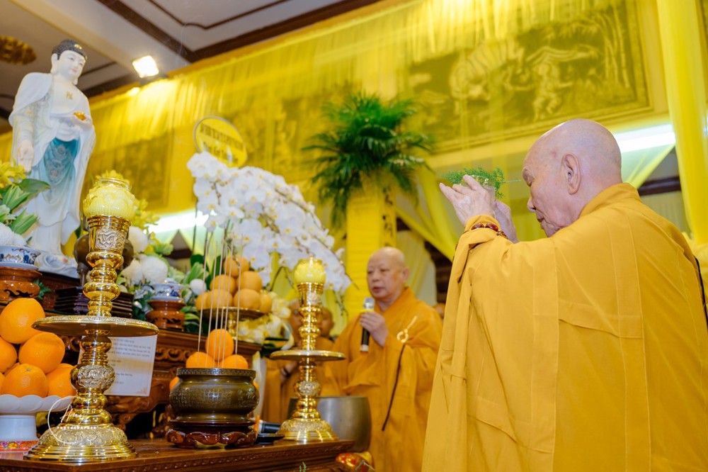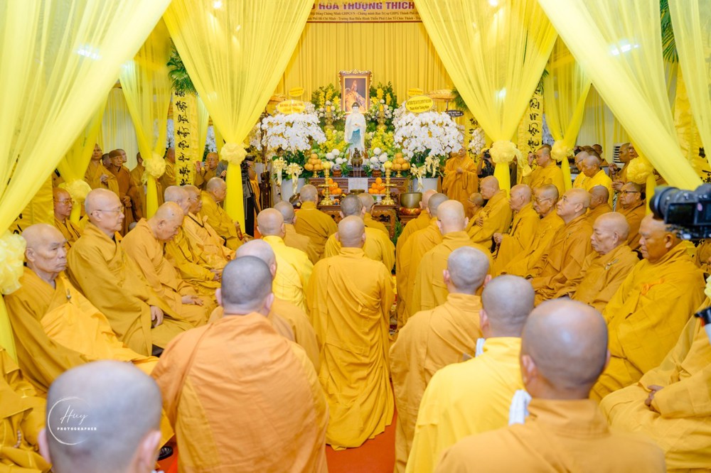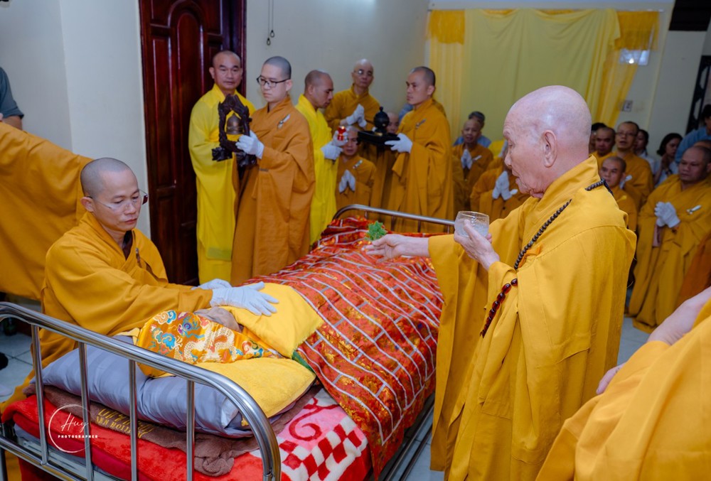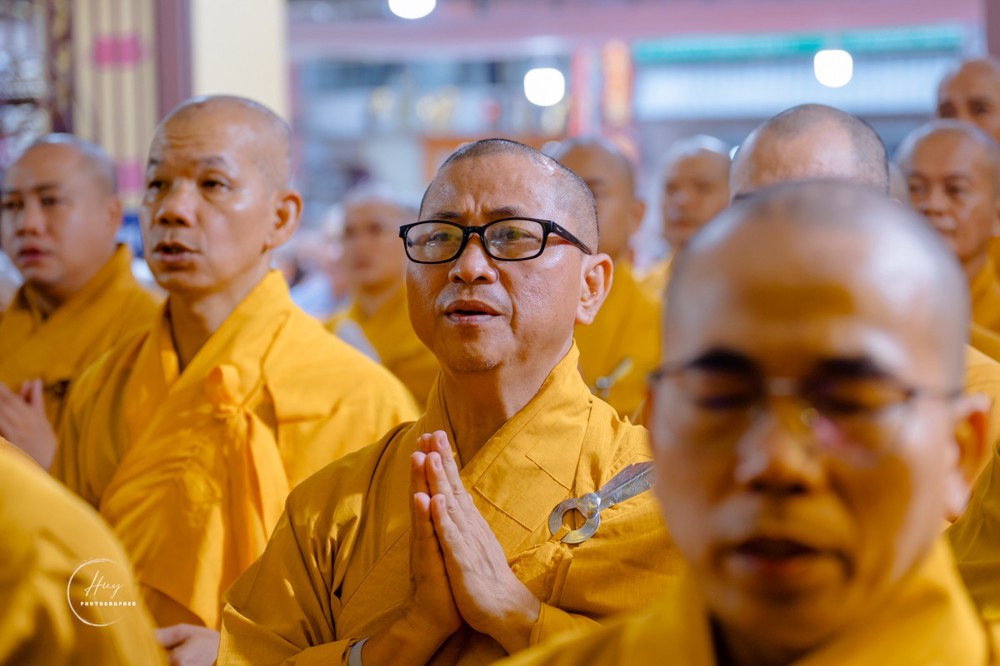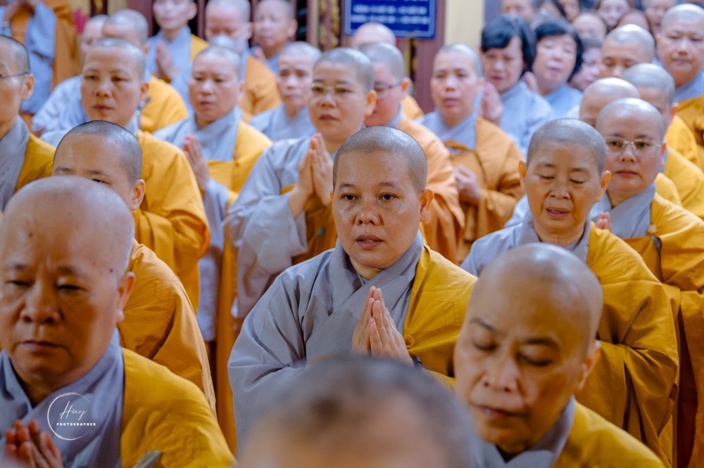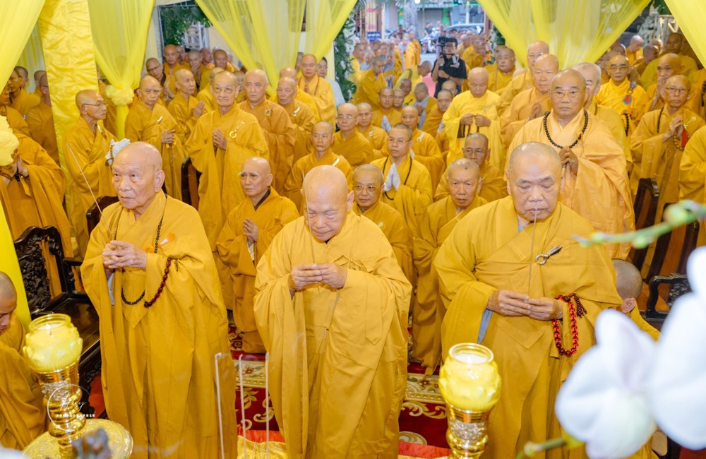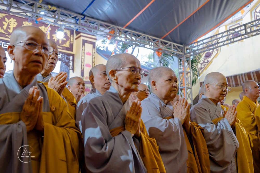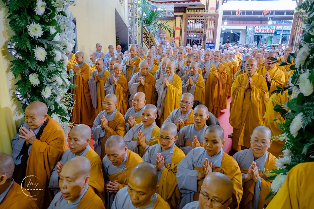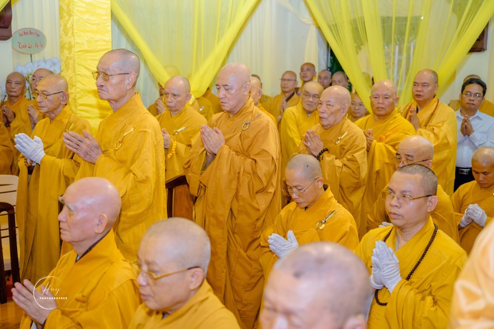 Toàn thể Tăng Ni, Phật tử đồng tâm hộ niệm, tiếng niệm Phật trang nghiêm vang vọng, kết thành đạo tràng thanh tịnh, cầu nguyện Giác linh Trưởng lão Hòa thượng cao đăng Phật quốc.