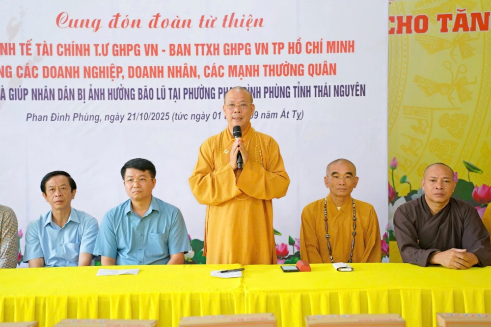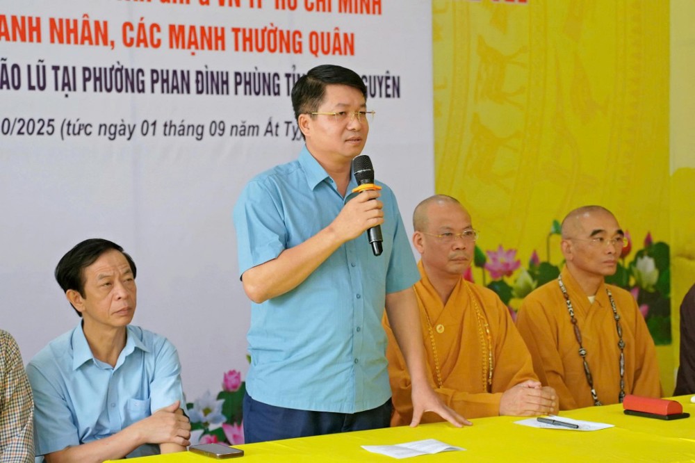 Đại diện chính quyền tỉnh Thái Nguyên bày tỏ lòng tri ân sâu sắc đến Ban Thường trực HĐCM, HĐTS GHPGVN và phái đoàn Ban KTTC Trung ương đã dành nhiều tình cảm, sự quan tâm đối với người dân vùng bão. Ông gửi lời chúc sức khỏe đến chư Tôn đức lãnh đạo Giáo hội, chúc quý ngài luôn vững tâm phụng sự đạo pháp, tiếp tục lan tỏa tinh thần từ bi, nhân ái của đạo Phật trong cộng đồng.