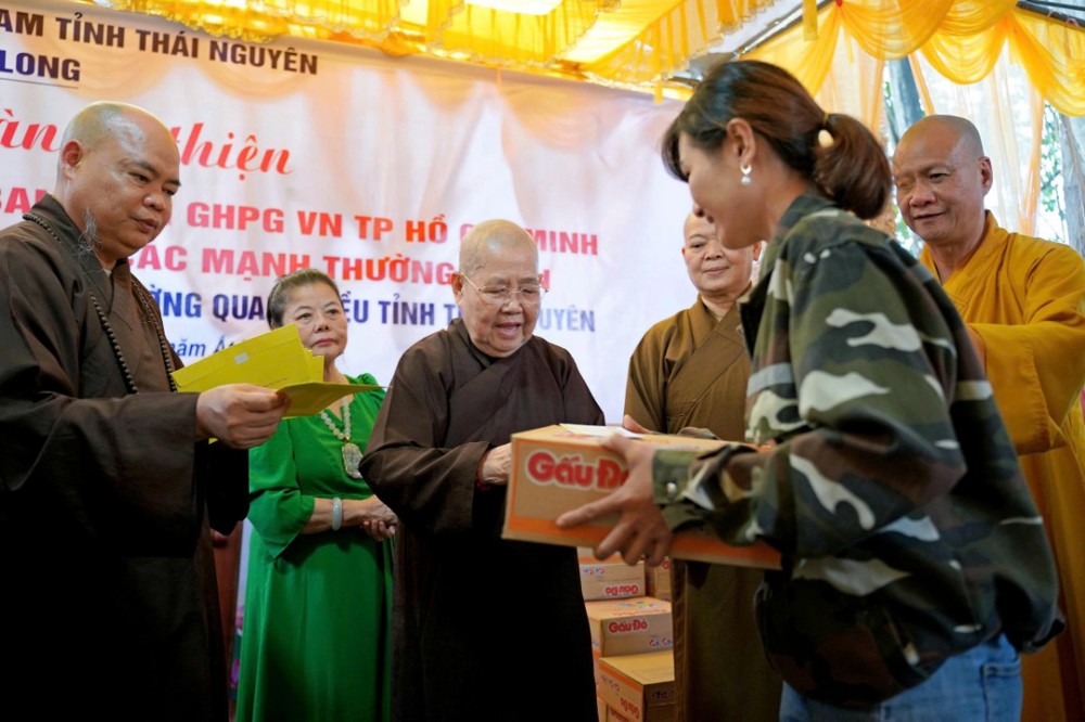 Chuyến đi trao quà tại Thái Nguyên không chỉ mang đến những phần quà vật chất ý nghĩa, mà còn là thông điệp yêu thương, khơi dậy tinh thần đoàn kết, tương thân tương ái, thể hiện rõ nét truyền thống “Phật giáo luôn đồng hành cùng dân tộc” trong suốt chiều dài lịch sử.