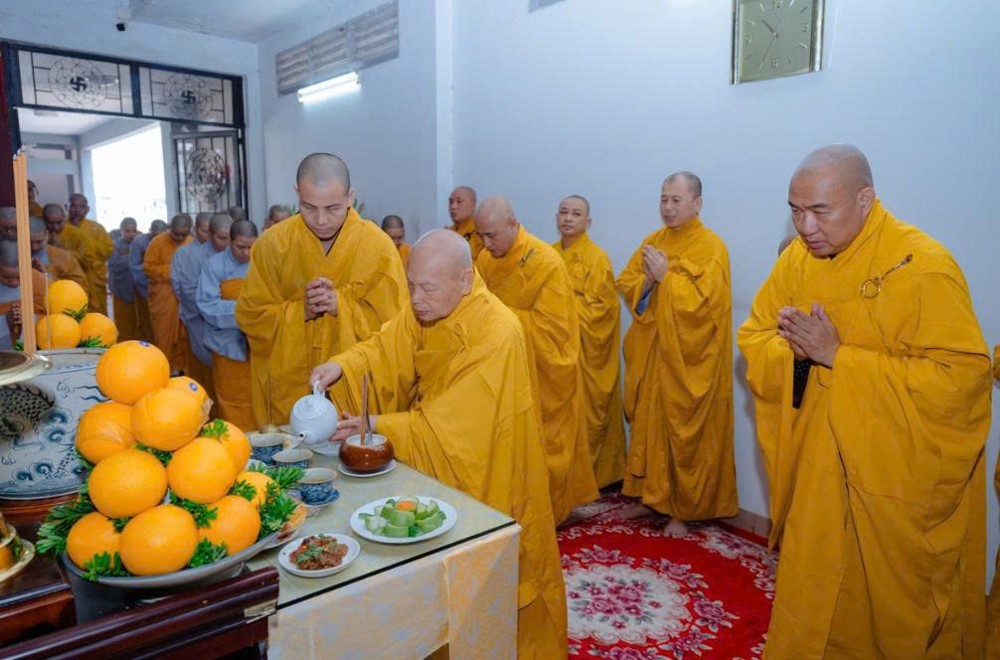 Trưởng lão Hòa thượng Chủ tịch đã thỉnh trà và dâng phạm thực cúng dường Giác linh Đức Đệ nhất Pháp chủ, toàn thể Tăng Ni đồng tụng thời Bát-nhã Tâm kinh cúng dường, chí thành cầu nguyện Giác linh Ngài từ bi chứng minh, gia hộ cho Phật giáo Việt Nam trường tồn cùng dân tộc, Giáo hội được ổn định, hòa hợp và phát triển bền vững.