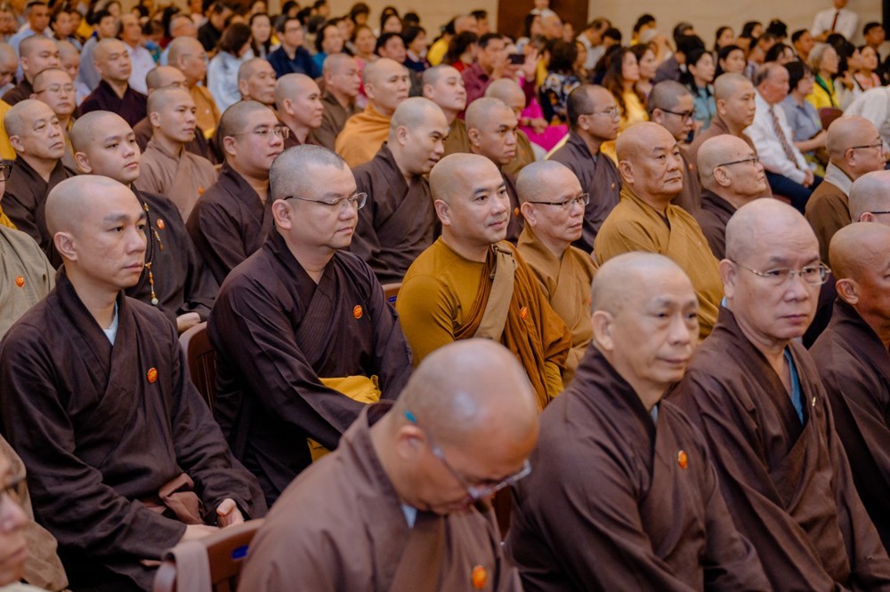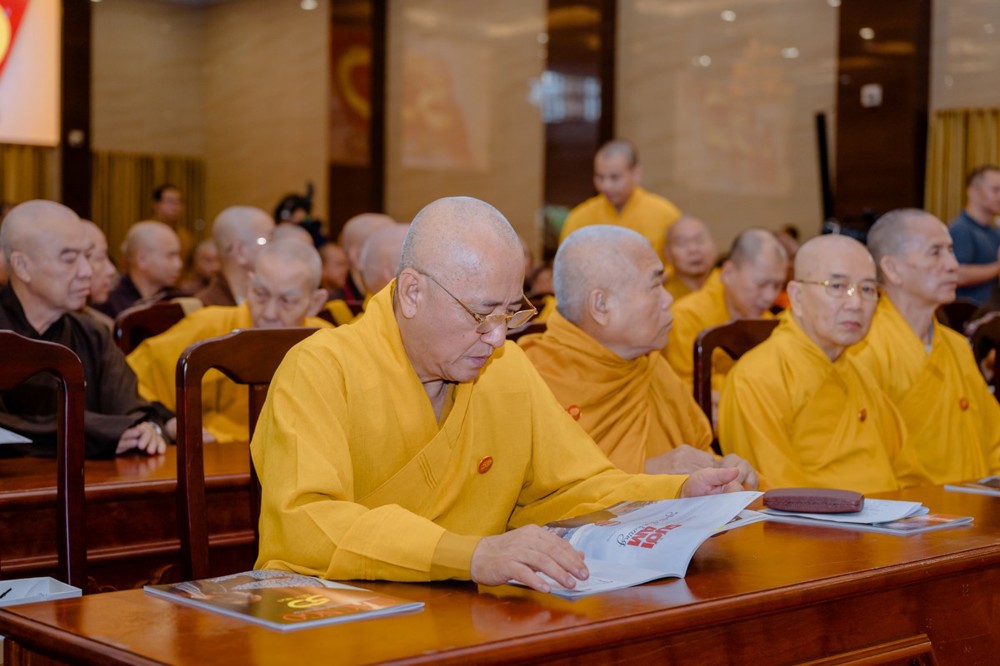 Chứng minh và tham dự còn chư vị Trưởng lão Phó Pháp chủ Hòa thượng Thích Giác Quang, Hòa thượng Thích Viên Minh; nhị vị Trưởng lão Ủy viên Thường trực HĐCM, Phó Chủ tịch Thường trực HĐTS Hòa thượng Thích Thiện Pháp và Hòa thượng Thích Thanh Nhiễu; chư Tôn đức Phó Chủ tịch HĐTS; đại diện các cơ quan Trung ương và TP.HCM; chư vị thiện hữu tri thức, đại diện các đơn vị đồng hành và đông đảo Tăng Ni, Phật tử là bạn đọc gắn bó lâu năm với Báo Giác Ngộ.