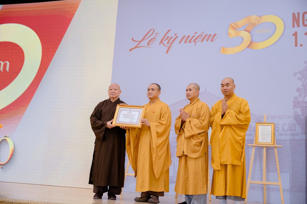Sáng 31/12, tại Việt Nam Quốc Tự (TP.HCM), Báo Giác Ngộ long trọng tổ chức Lễ kỷ niệm 50 năm ngày ra số đầu tiên (1-1-1976 – 1-1-2026). Đại lão Hòa thượng Thích Trí Quảng – Pháp chủ GHPGVN; Trưởng lão Hòa thượng Thích Thiện Nhơn – Phó Pháp chủ Hội đồng Chứng minh, Chủ tịch Hội đồng Trị sự đã quang lâm tham dự và chúc mừng.