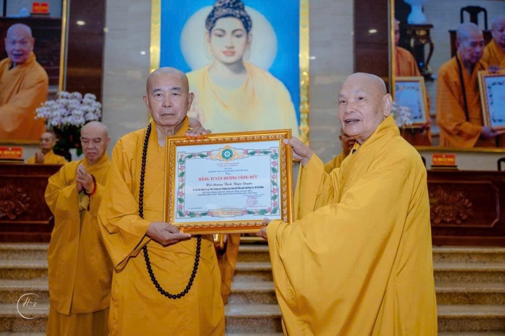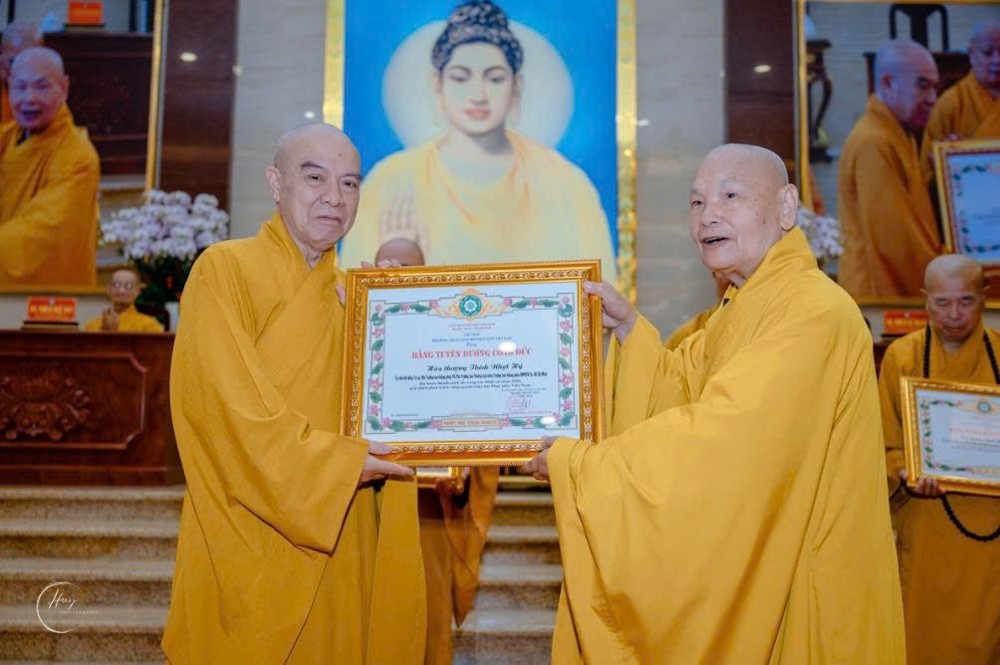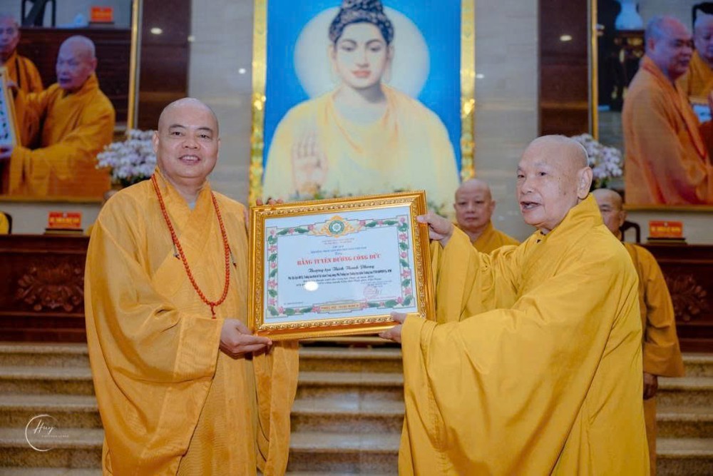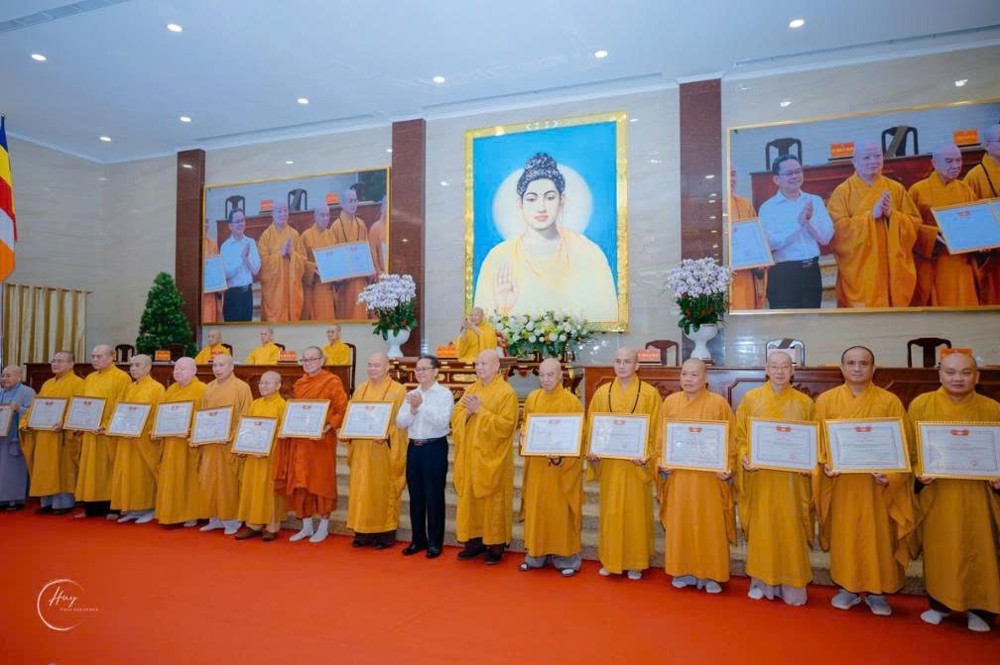 Dịp này, Trung ương Giáo hội Phật giáo Việt Nam đã trao Bằng tuyên dương công đức cho các tập thể, cá nhân Tăng Ni, Phật tử Phật giáo TP.HCM có nhiều đóng góp tiêu biểu trong công tác Phật sự năm 2025. Ủy ban MTTQVN TP.HCM cũng trao Bằng khen cho các tập thể, cá nhân có thành tích xuất sắc trong công tác từ thiện – an sinh xã hội và xây dựng khối đại đoàn kết toàn dân tộc.