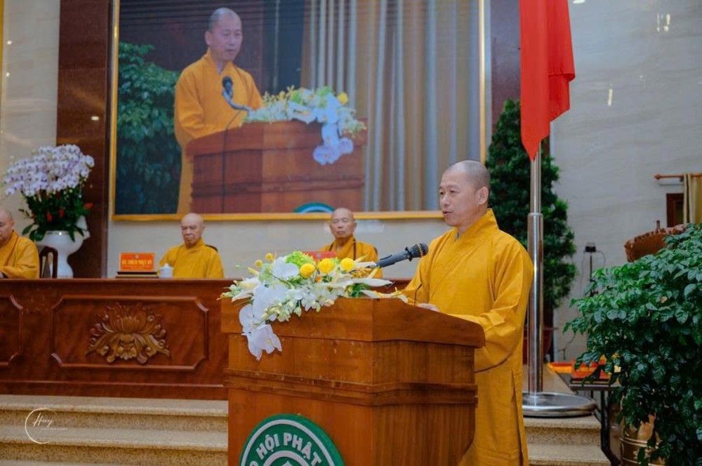 Ban đạo từ, Trưởng lão Hòa thượng Chủ tịch thay mặt Ban Thường trực Hội đồng Trị sự, đã gửi lời tán thán công đức và chúc mừng tốt đẹp nhất đến toàn thể Tăng Ni, Phật tử Thành phố đã chung sức, đồng lòng hoàn thành nhiều Phật sự quan trọng trong năm qua.