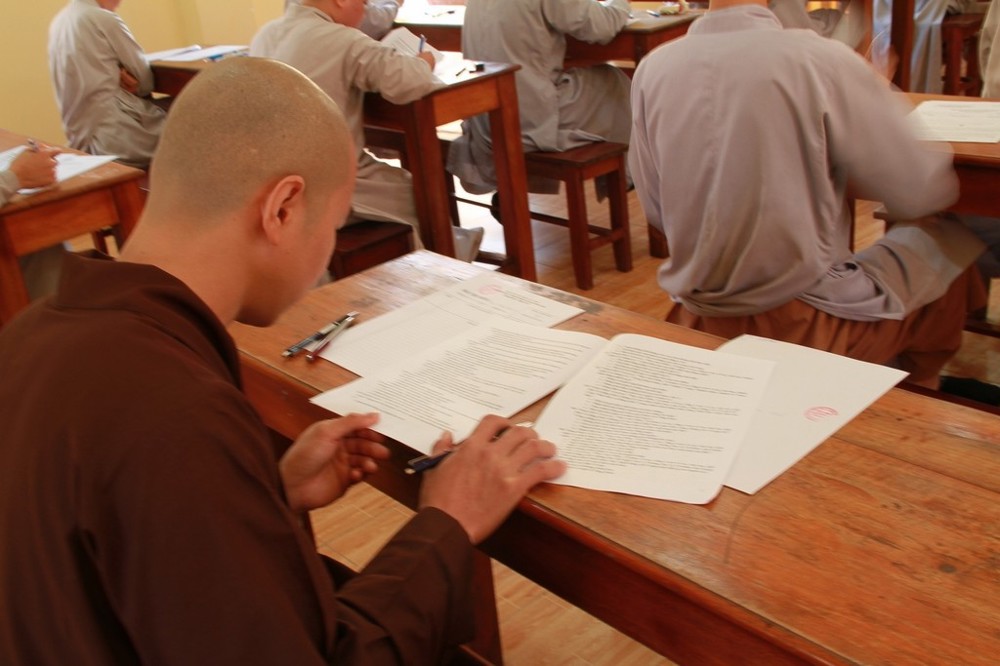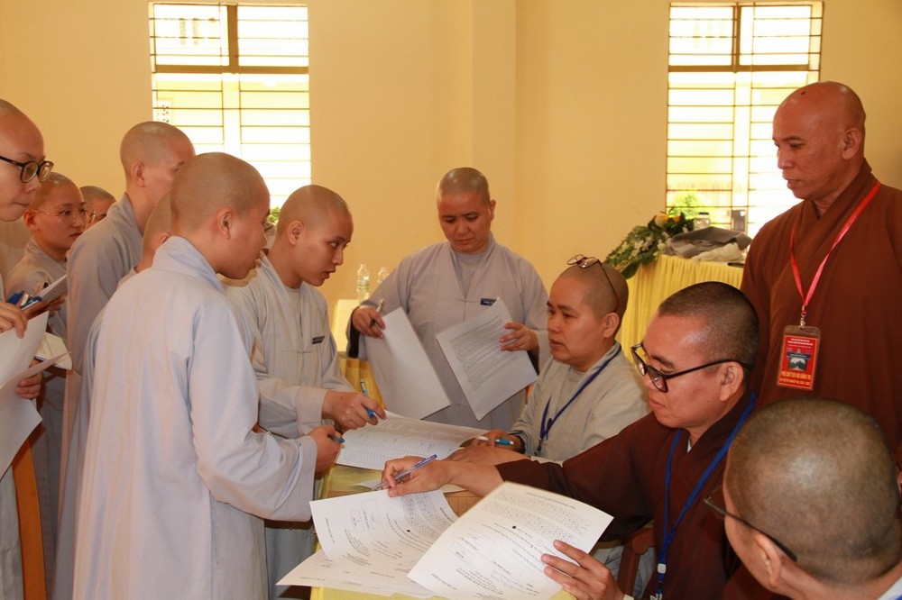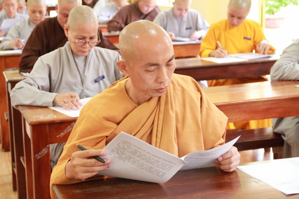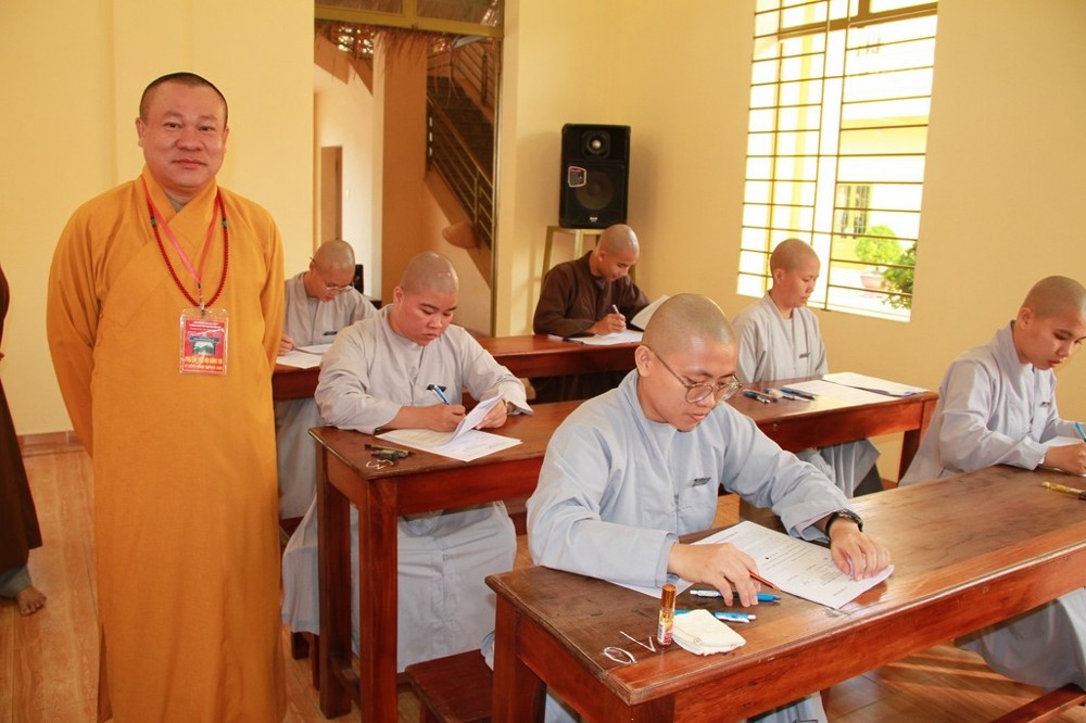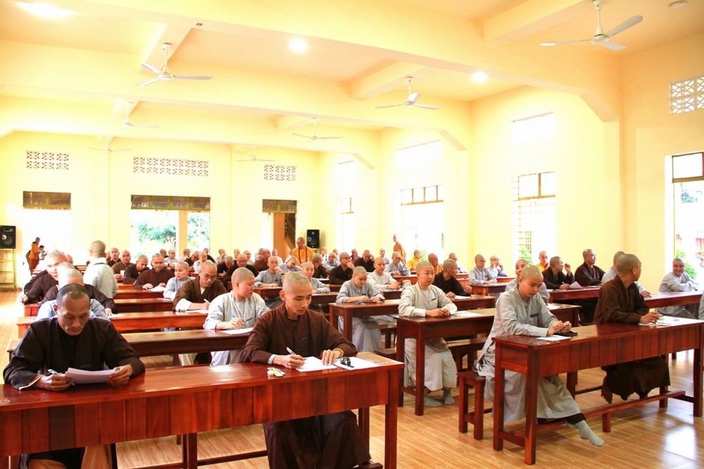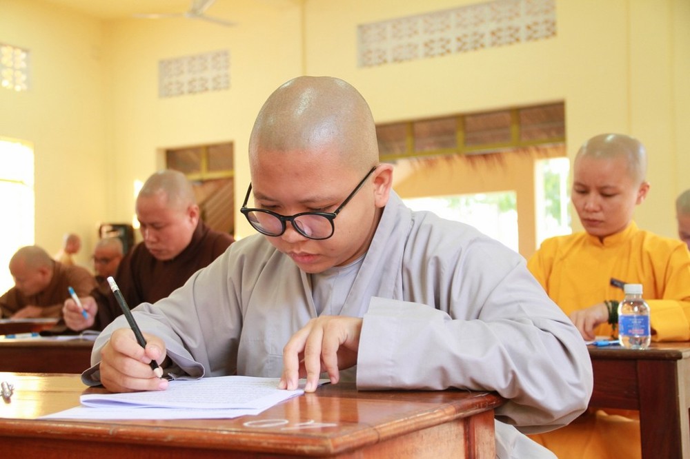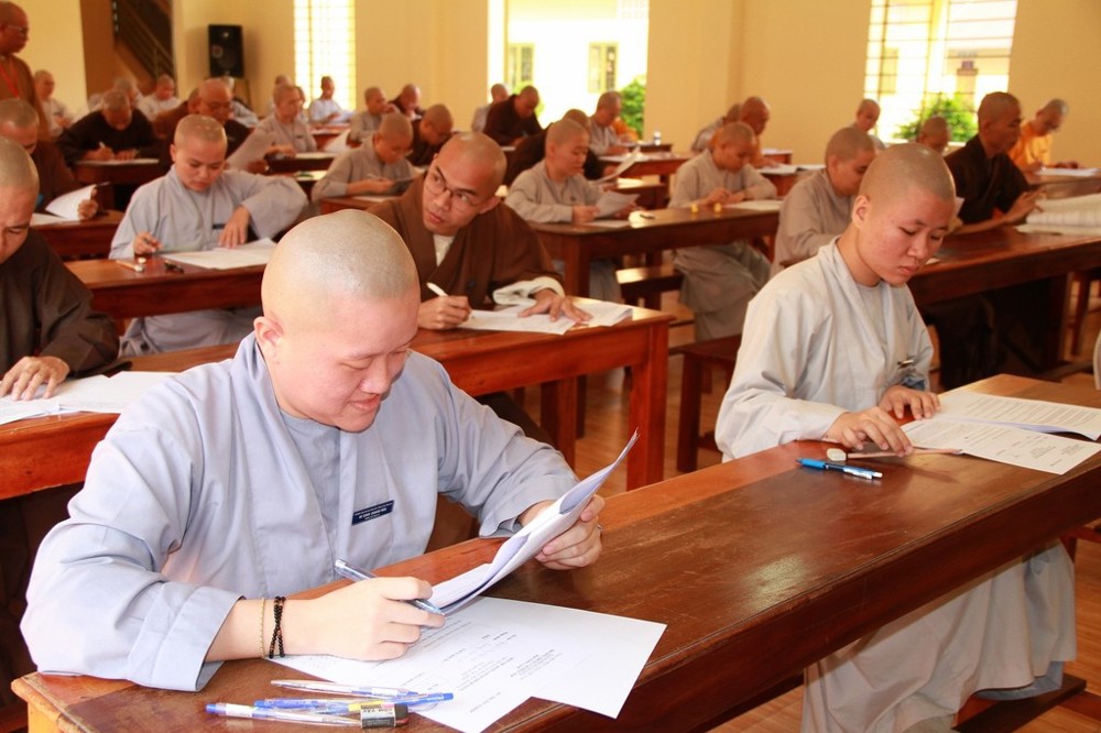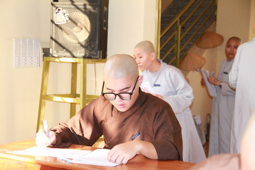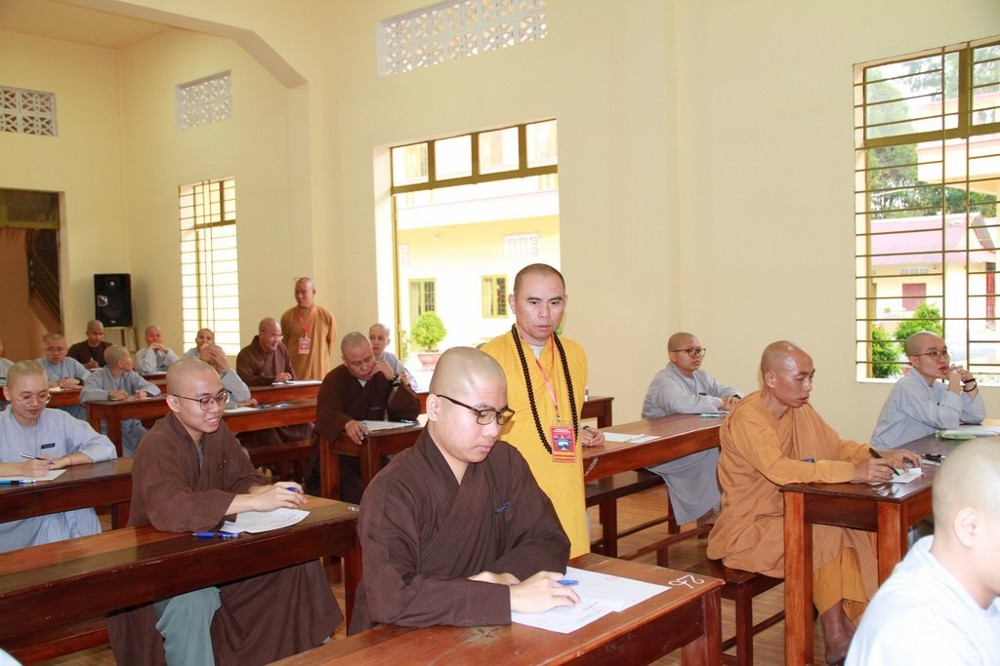 Thay mặt Ban Giám hiệu, Thượng tọa Thích Nhuận Nghĩa – Phó Chủ tịch Hội đồng thi đã nhắc nhở, động viên và thân chúc các Tăng Ni sinh đạt kết quả cao trong kỳ thi; đồng thời bày tỏ mong muốn Tăng Ni sinh tiếp tục con đường học vấn để xây dựng nền tảng Phật pháp vững chắc trong tương lai. Sau đó, Thượng tọa đã tiến hành trao bộ đề thi cho Ban Thư ký Hội đồng thi.