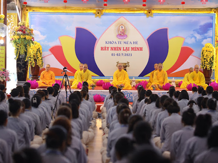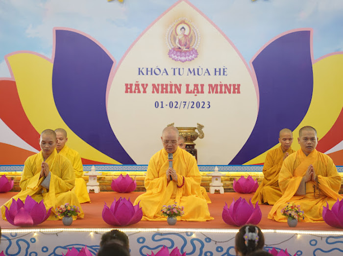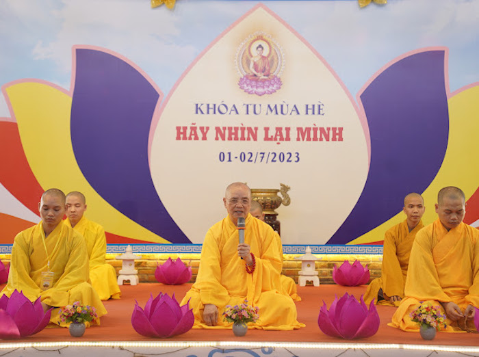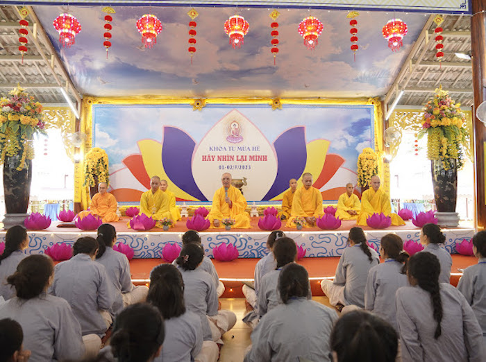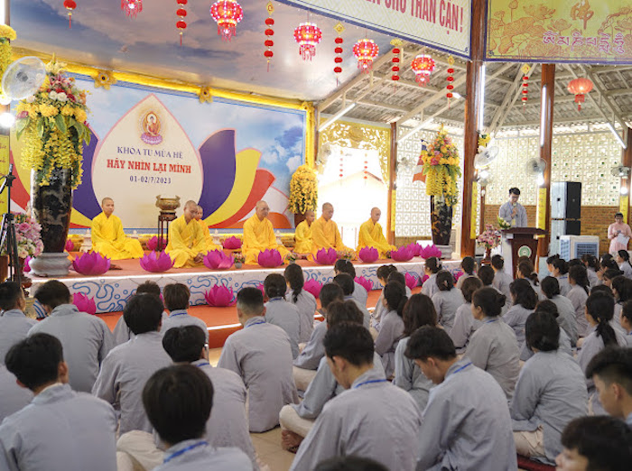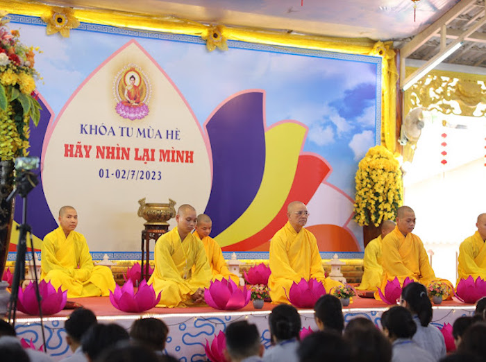 ĐĐ. Thích Thiền Từ, Thư ký Ban Tổ chức khóa tu đã đọc báo cáo kết quả Khoá tu. Chương trình khoá tu được diễn ra trong 2 ngày, bắt đầu từ 6 giờ sáng ngày 01/07/2023 và kết thúc, bế mạc lúc 12 giờ ngày 02/07/2023. Trong hai ngày diễn ra khoá tu, các khoá sinh đã được chư Tôn đức Ban Tổ chức hướng dẫn lễ Phật, tụng kinh, hành thiền và ăn cơm chánh niệm. Đại đức Thích Thiền Như hướng dẫn khoá sinh các oai nghi trong chốn thiền môn. Pháp thoại “Ý nghĩa chữ Tu” do Đại đức Thích Thiền Định trình bày. Pháp thoại “Đạo đức Phật giáo" do Sư cô Thích nữ Hạnh Hiếu chia sẻ. Thuyết trình đề tài “Phật giáo và dân tộc” do Ths. Phan Công Tuyên trình bày. Đặc biệt, ban Pháp từ tại Lễ Khai mạc, Hoà thượng Thích Huệ Phước - Trú trì chùa Từ Lâm đã chia sẻ ý nghĩa chủ đề của khoá tu “Hãy nhìn lại mình”. Hoà thượng đã nhắn nhủ đến tất cả các khóa sinh cần ý thức và chánh niệm để soi xét lại bản thân mình, sửa bỏ tánh phàm, bỏ ác hành thiện để bản thân ngày càng thăng tiến trên con đường tu tập và trở thành người có ích cho cộng đồng, gia đình và xã hội.