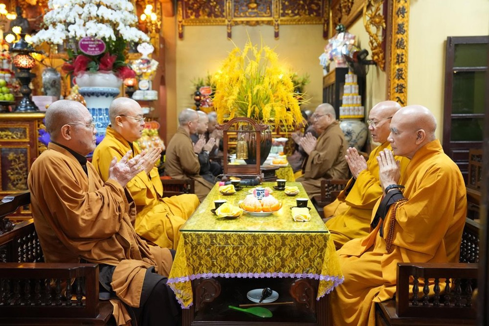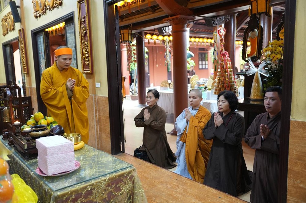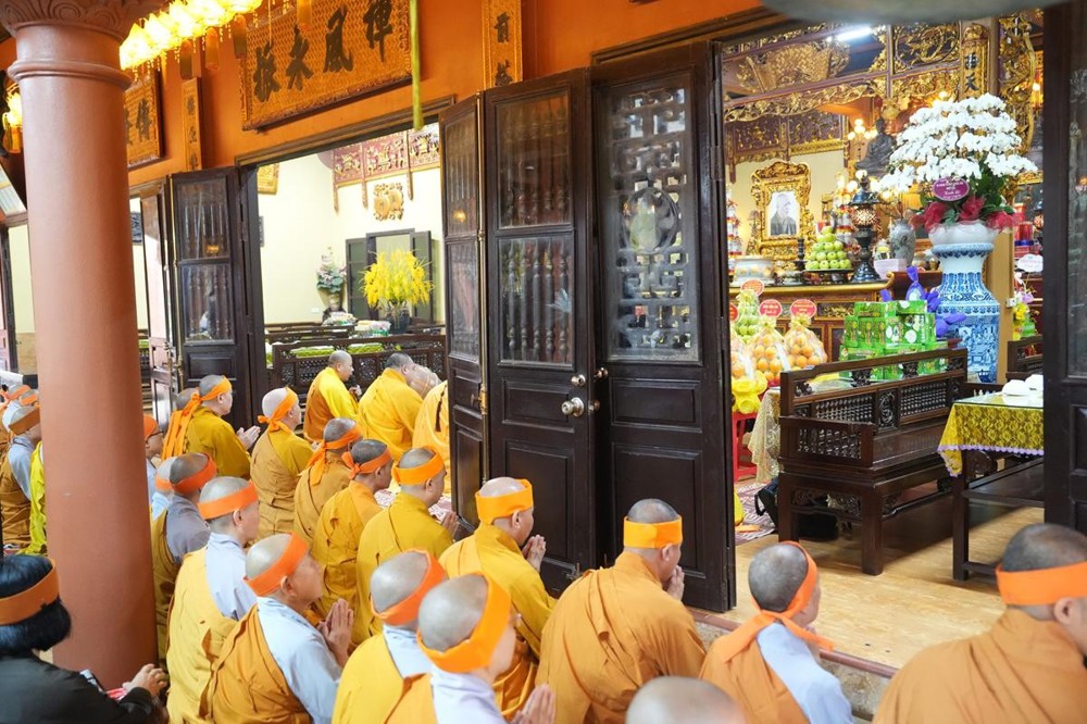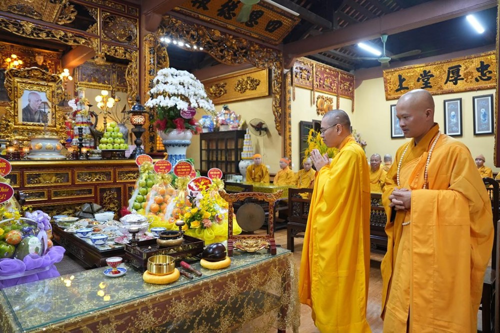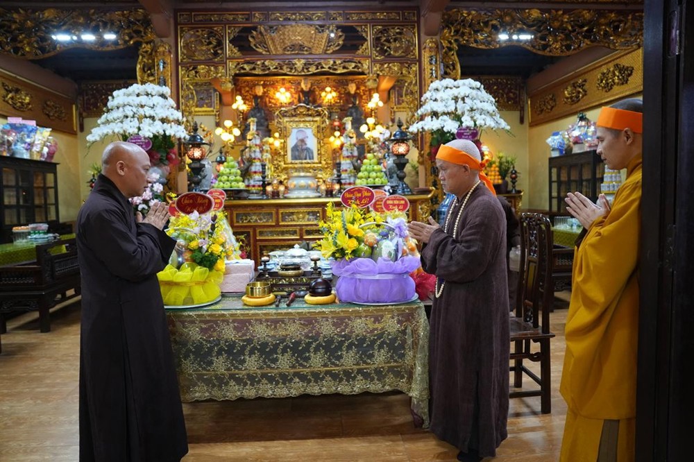 Trưởng lão Hòa thượng Thích Thanh Nhiễu – Ủy viên Thường trực Hội đồng Chứng minh, Phó Chủ tịch Thường trực HĐTS GHPGVN cùng chư Tôn đức Phó chủ tịch HĐTS: Hòa thượng Thích Gia Quang, Hòa thượng Thích Quảng Tùng, Thượng tọa Thích Thanh Phong... Ngoài ra còn có chư Tôn đức HĐTS, Ban Viện Trung ương, chư Tăng Ni sơn môn Trung Hậu, trụ trì các Tổ đình trong và ngoài thành phố đã trở về Tổ đình, dâng nén hương thanh khiết đỉnh lễ trước linh đài, nhất tâm cầu nguyện Giác linh cố Trưởng lão Hòa thượng cao đăng Phật quốc.