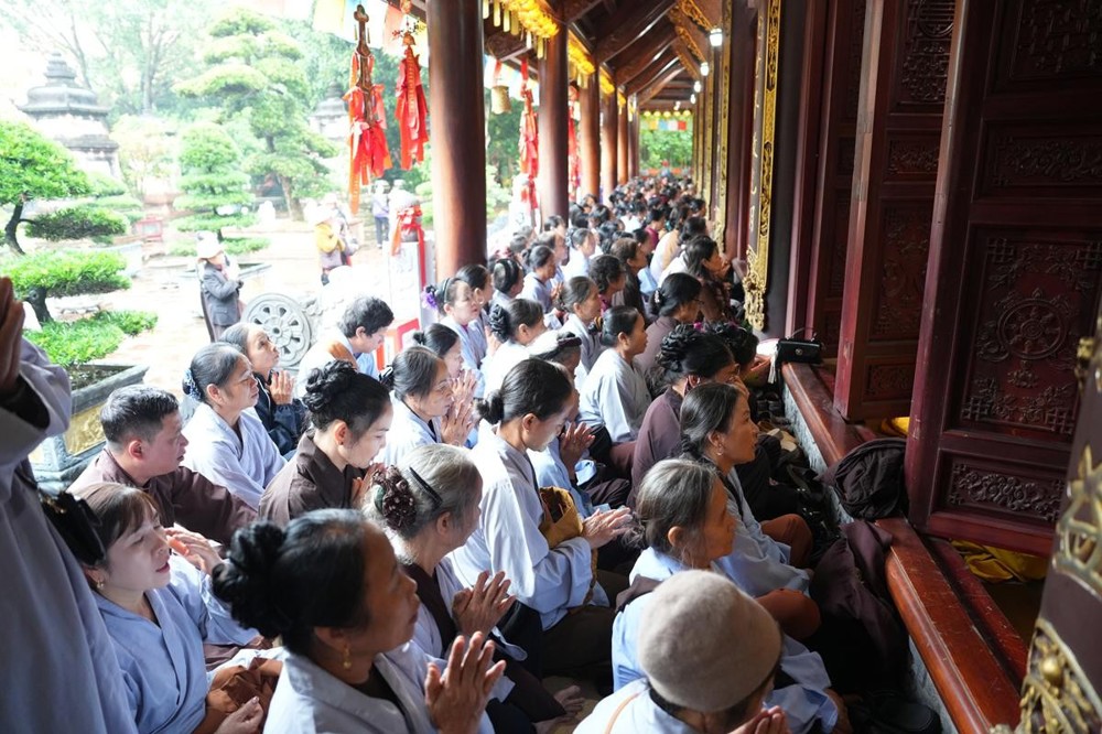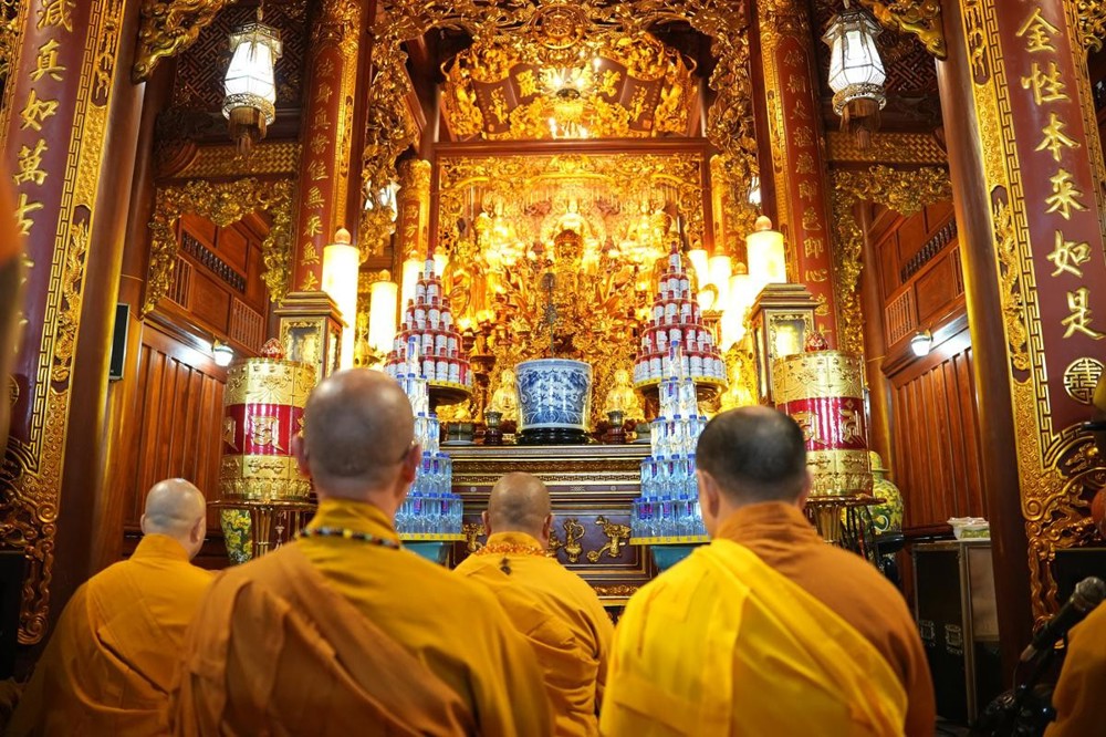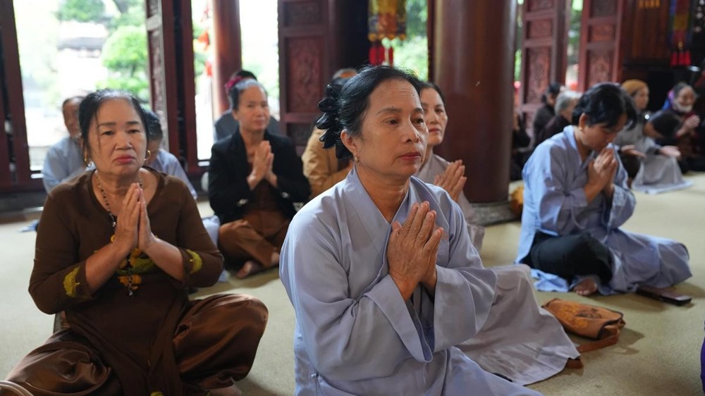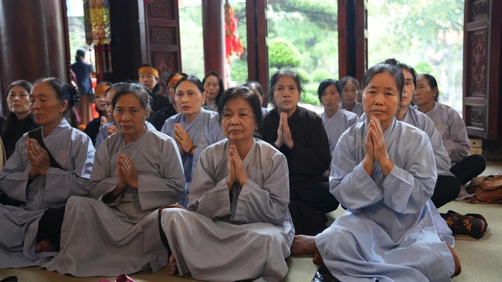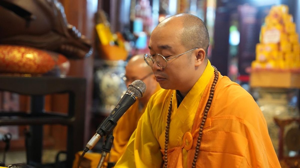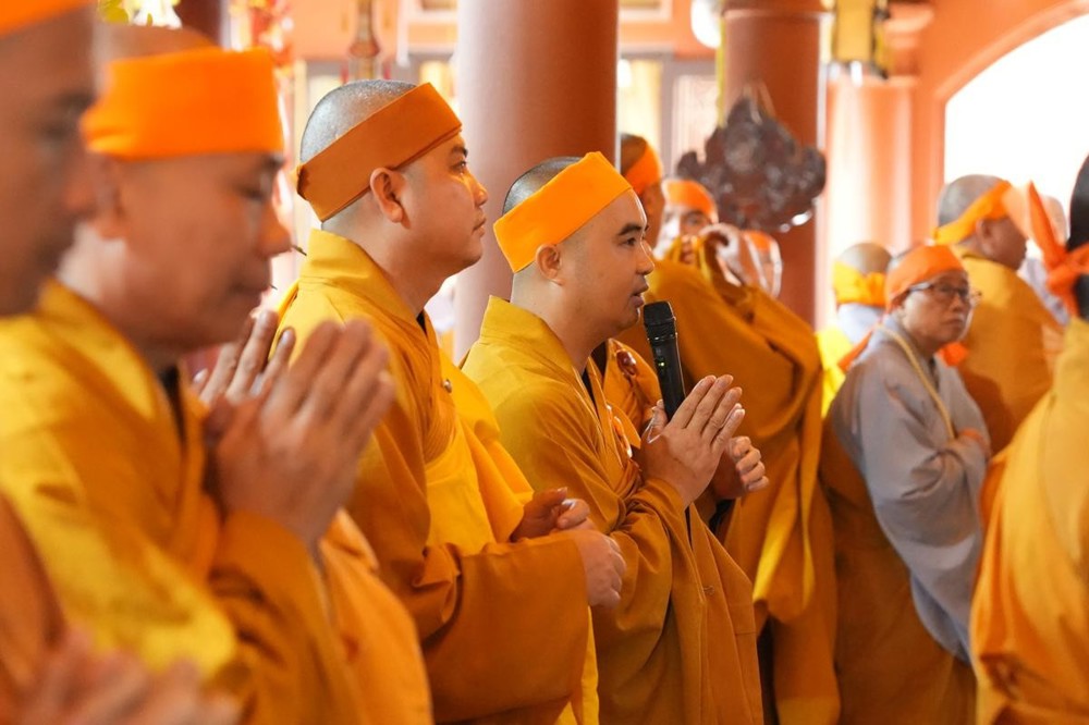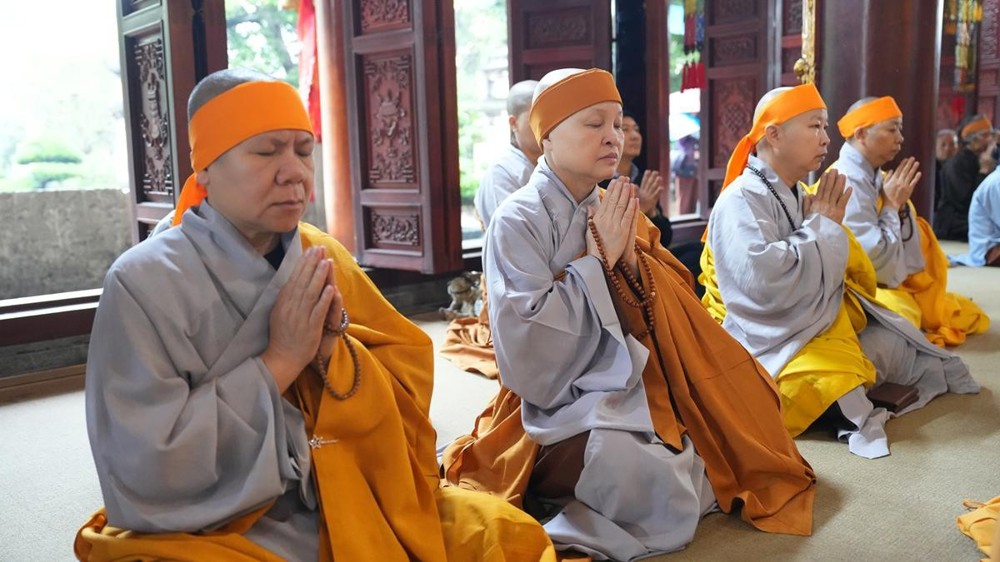 Sau nghi thức cúng Phật, cúng Tổ, chư Tôn đức cùng toàn thể Phật tử trang nghiêm trì tụng Kinh A Di Đà, gửi gắm lòng chí thành cầu nguyện bậc Thạc đức Tùng lâm sớm tiêu diêu nơi cảnh giới an lành của chư Phật.