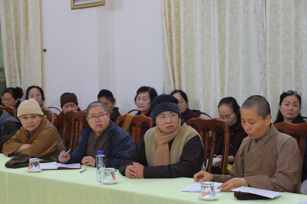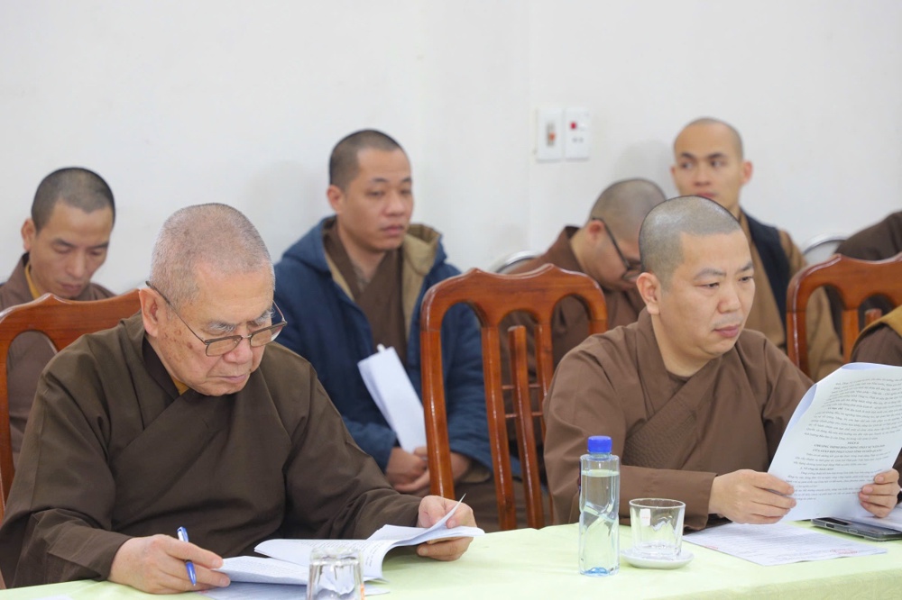 Toàn thể hội chúng cùng nghe Đại đức Thích Nguyên Long, phó BTS đọc phương hướng hoạt động Phật sự tại hội nghị: