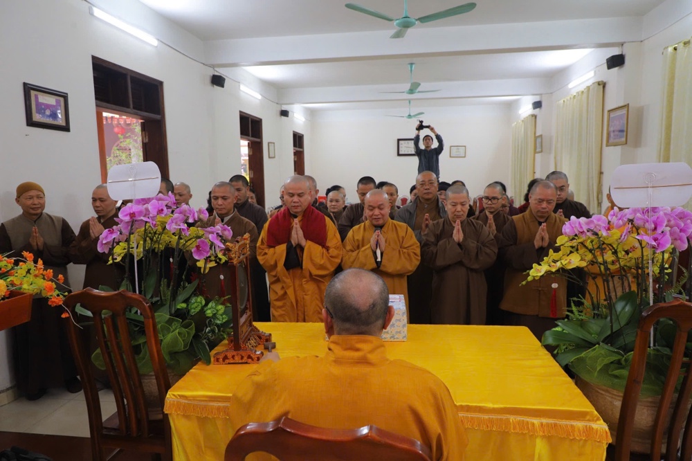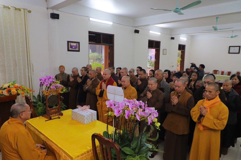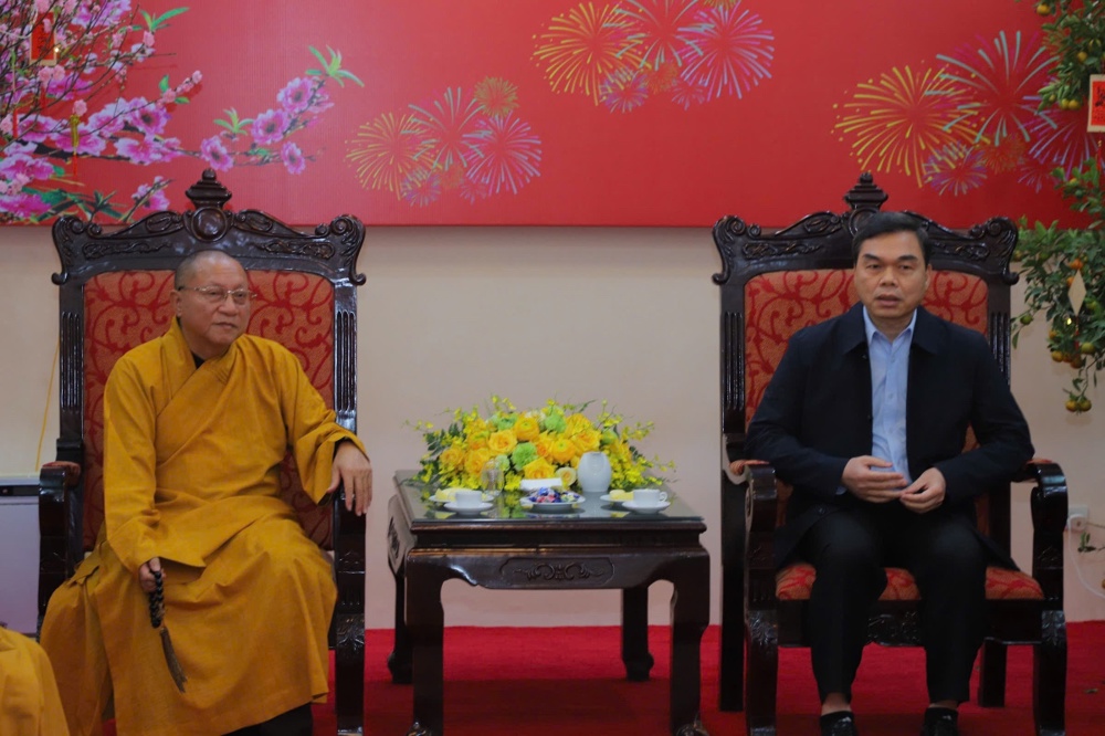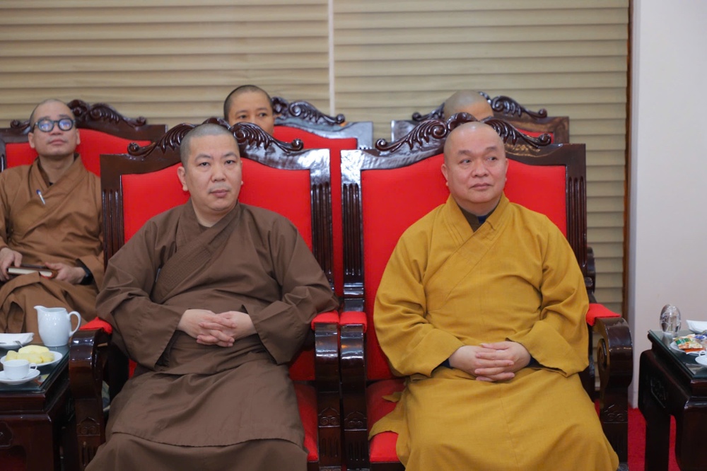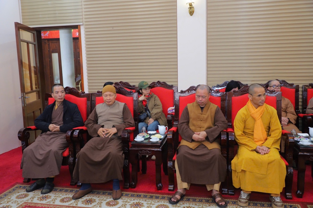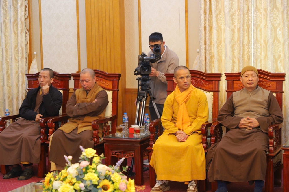 Tại đây Hoà thượng Thích Gia Quang báo cáo nhanh tổng kết công tác Phật sự đã đạt được thành tựu năm 2025 và phương hướng hoạt động năm 2026. Hoà thượng mong muốn Lãnh đạo Tỉnh cùng các cơ quan, ban ngành chức năng quan tâm, giúp đỡ, đồng hành cùng BTS thực hiện tốt phương hướng hoạt động Phật sự đã được đề ra, Hoà thượng chúc lãnh đạo, cán bộ tỉnh sang năm mới sức khoẻ, an lành, hạnh phúc.