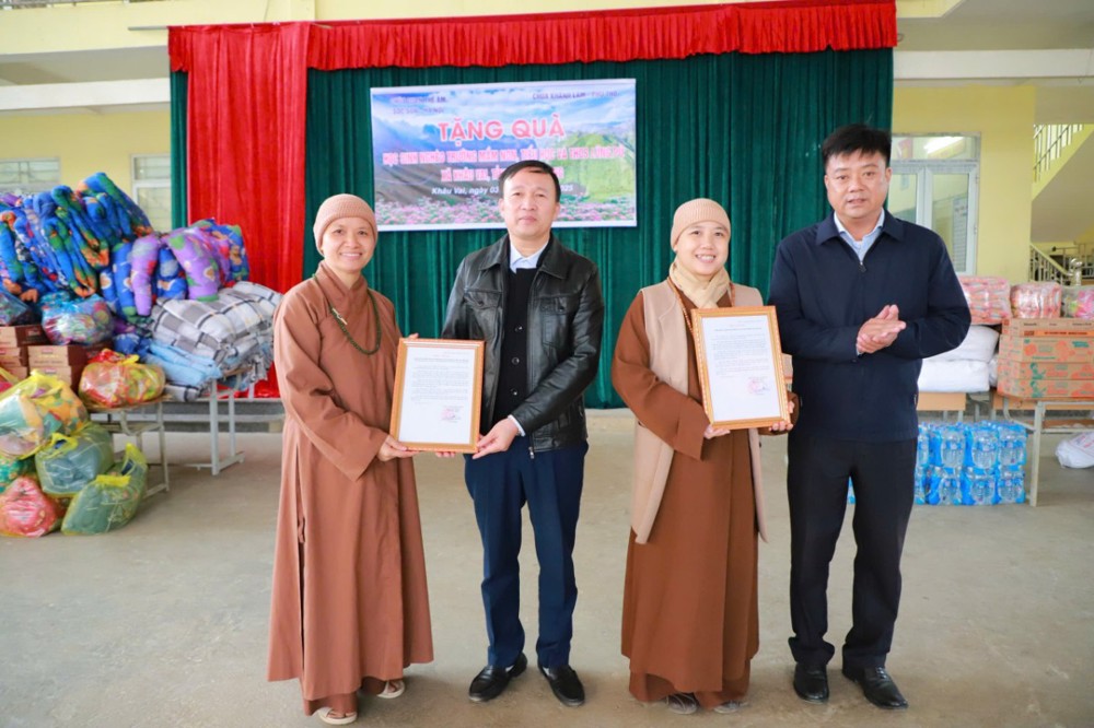 Đại diện chính quyền địa phương, ông Ngô Mạnh Cường cho biết xã Khâu Vai hiện được sáp nhập từ ba xã Cán Chu Phìn, Lũng Pù và Khâu Vai cũ, với hơn 22.000 nhân khẩu, trong đó 95% là đồng bào dân tộc thiểu số. Ông bày tỏ lòng tri ân sâu sắc đến quý Sư thầy, Phật tử và mạnh thường quân đã dành tình cảm, vật chất thiết thực hỗ trợ cho các em học sinh nơi đây.