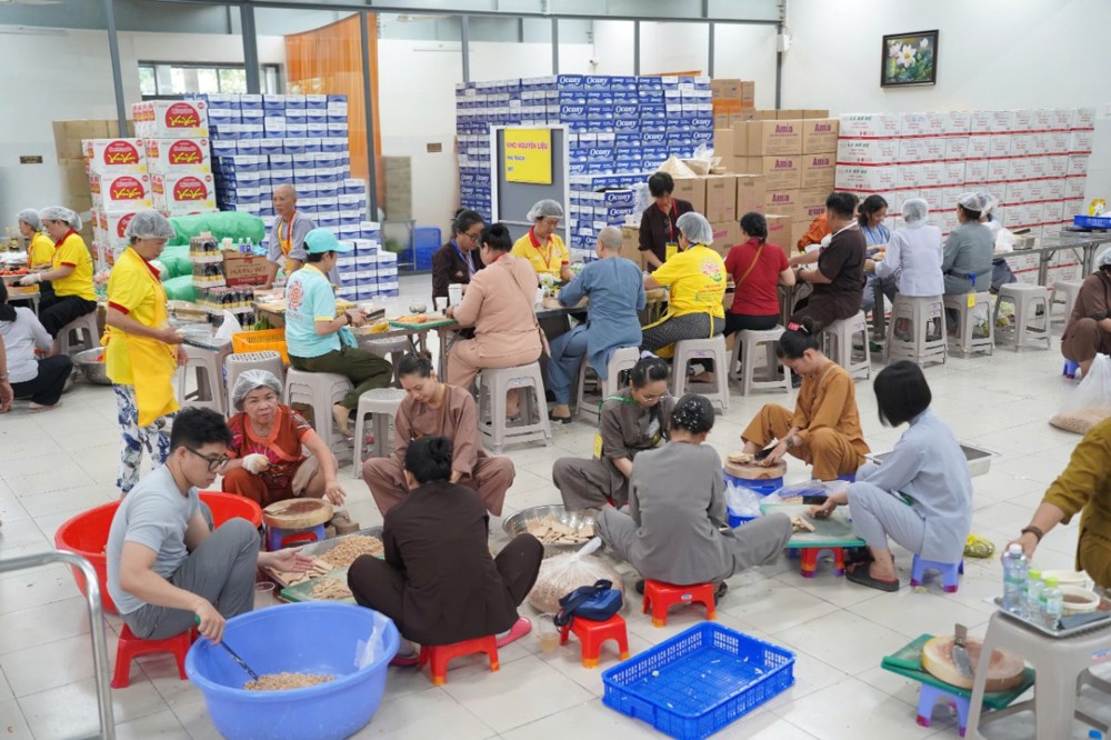Dưới sự hướng dẫn của Thượng tọa Thích Minh Phú - Ủy viên HĐTS, Phụ trách Ban hậu cần đã chuẩn bị hàng trăm nghìn suất ăn chay để phục vụ bà con Phật tử và những người yêu mến đạo Phật về tham dự Đại lễ. Mỗi phần ăn và nước uống đều được đựng trong hộp giấy và ly giấy thân thiện với môi trường, có in logo Vesak 2025, hoàn toàn không sử dụng vật dụng nhựa dùng một lần.