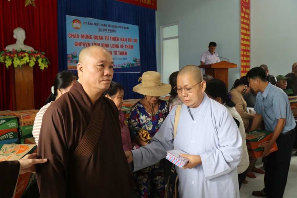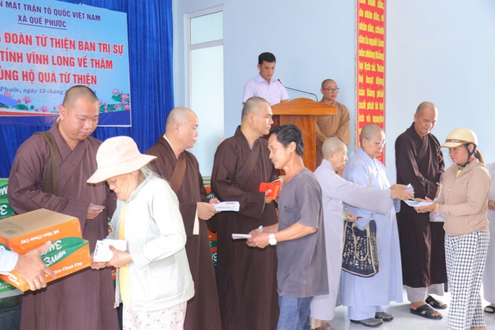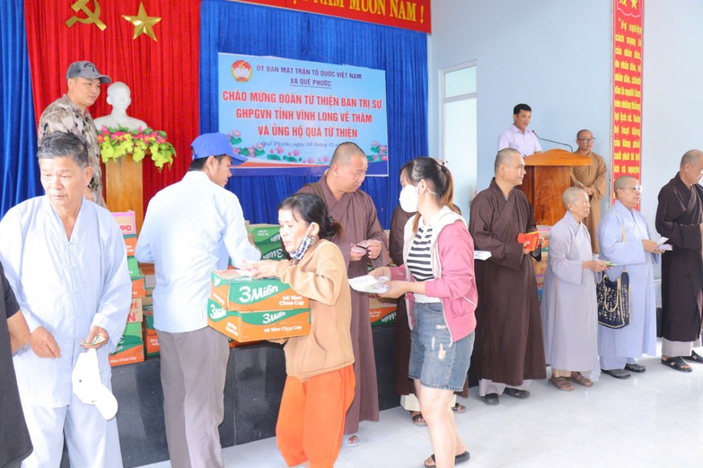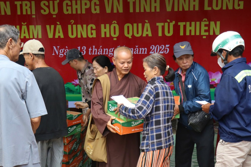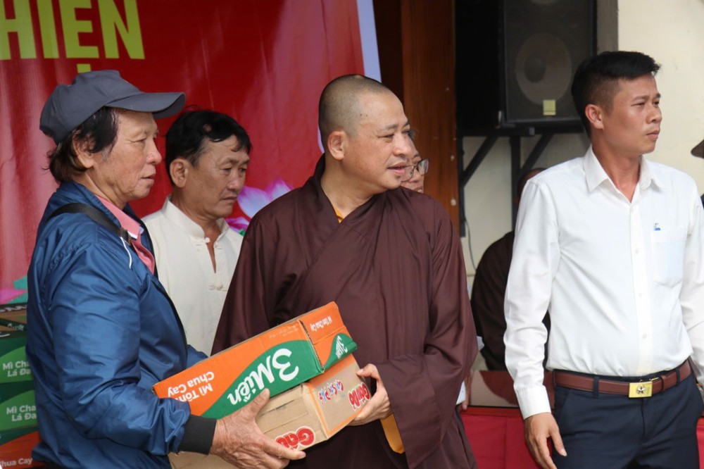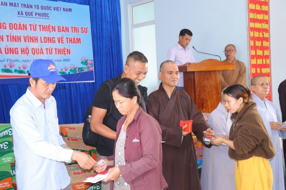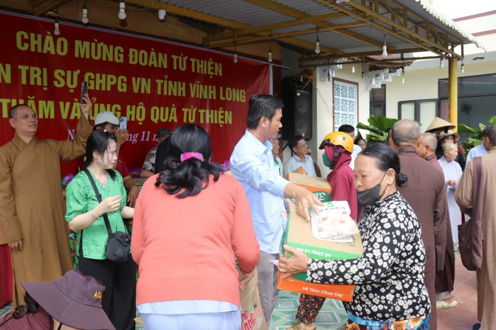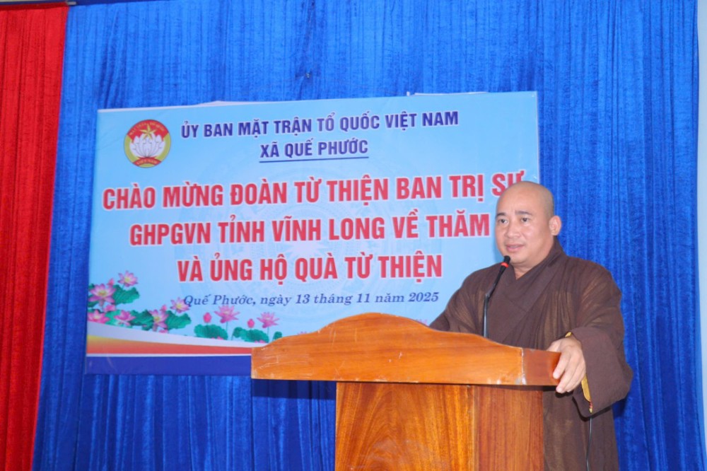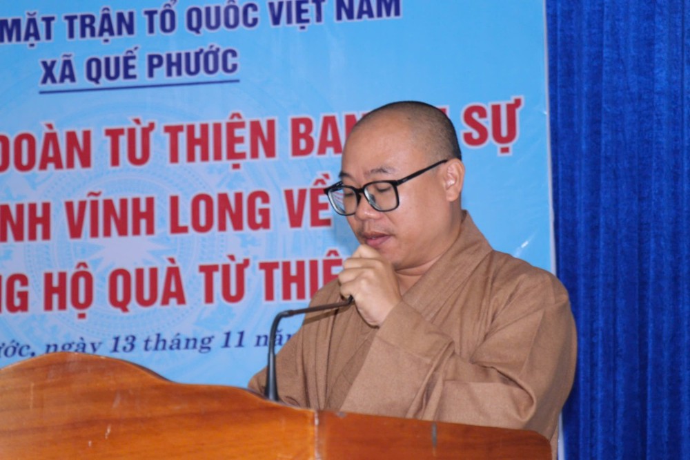 Phát biểu trong chuyến đi, ĐĐ. Thích Trí Thuận chia sẻ: “Chúng tôi đến đây không chỉ mang theo những phần quà nhỏ, mà còn gửi gắm tấm lòng của Tăng Ni, Phật tử tỉnh Vĩnh Long – những người luôn hướng về đồng bào đang gặp hoạn nạn. Mong rằng, với tinh thần từ bi của đạo Phật và tình thương của dân tộc, mọi người sẽ cùng nhau vượt qua khó khăn, sớm ổn định cuộc sống.”