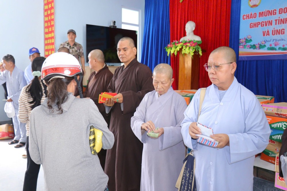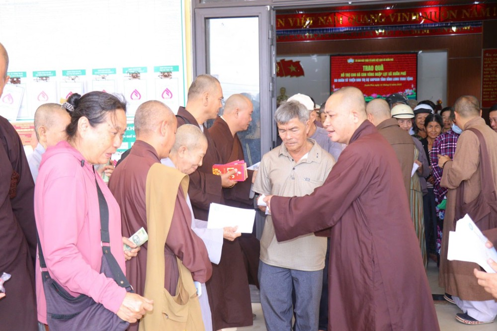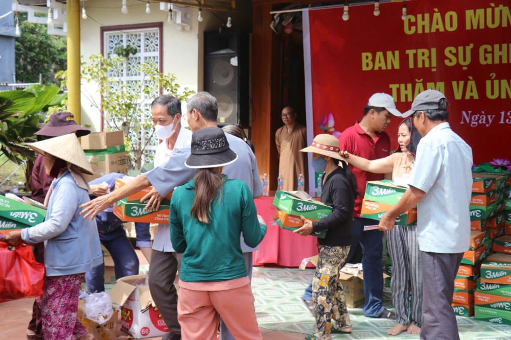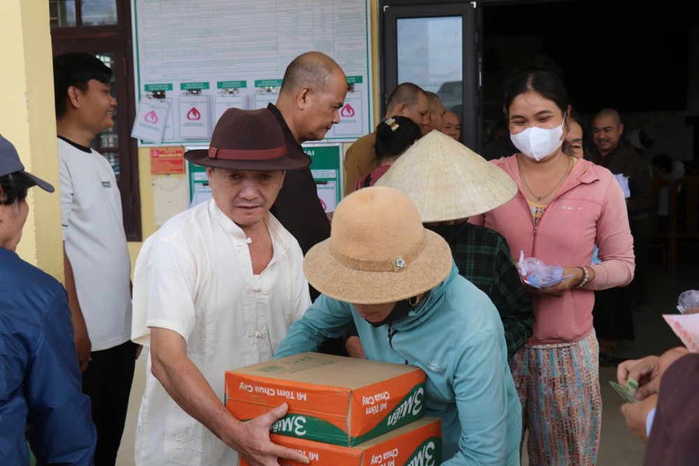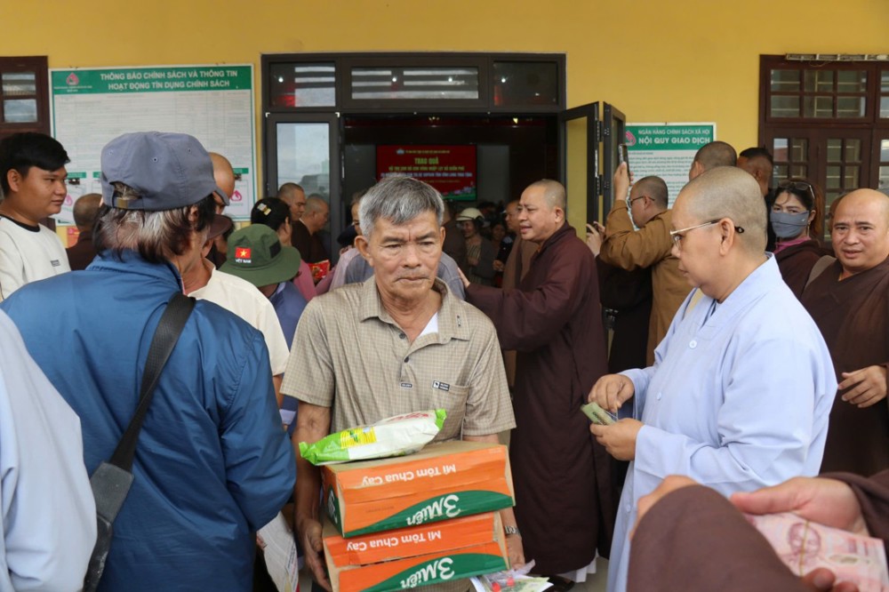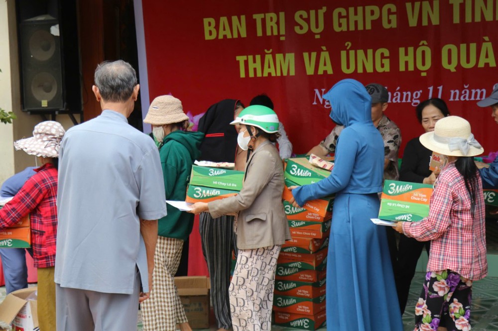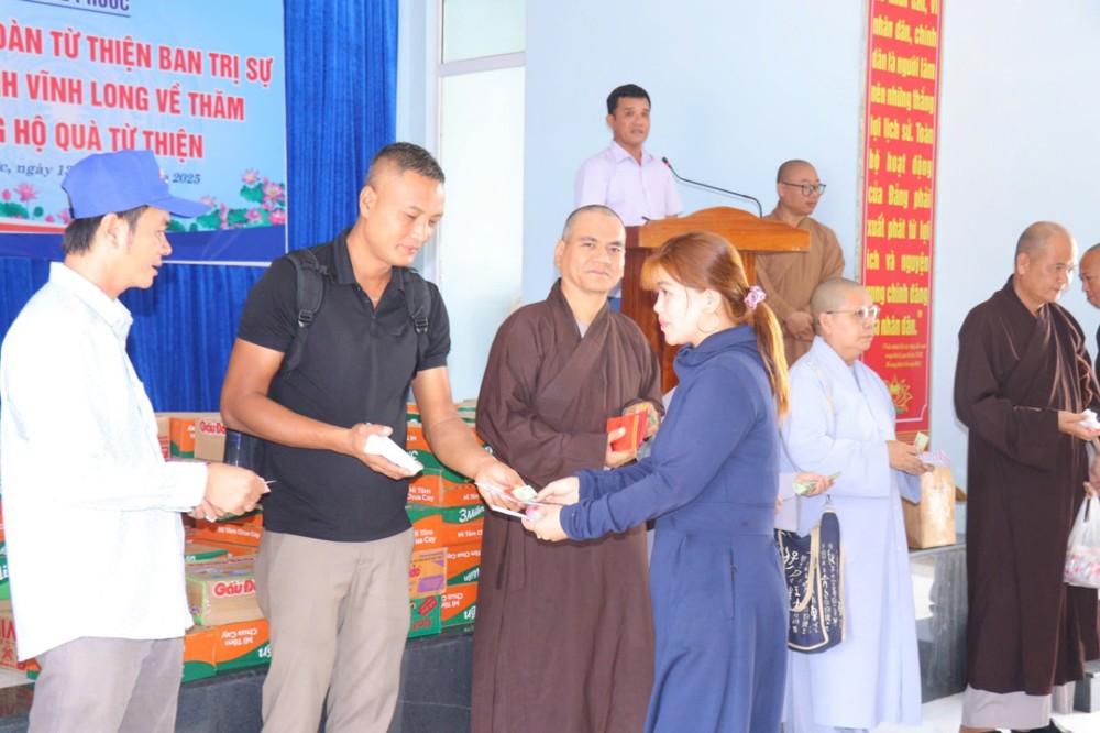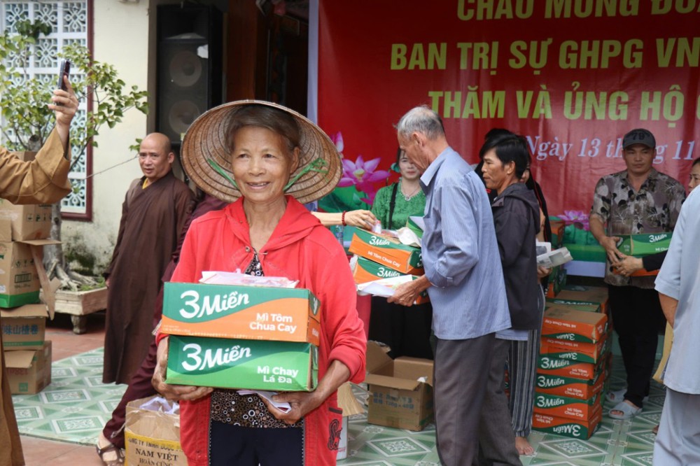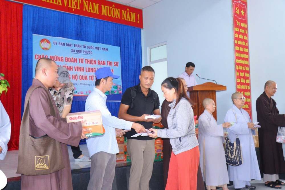 Phát biểu trong chuyến đi, ĐĐ. Thích Trí Thuận chia sẻ: “Chúng tôi đến đây không chỉ mang theo những phần quà nhỏ, mà còn gửi gắm tấm lòng của Tăng Ni, Phật tử tỉnh Vĩnh Long – những người luôn hướng về đồng bào đang gặp hoạn nạn. Mong rằng, với tinh thần từ bi của đạo Phật và tình thương của dân tộc, mọi người sẽ cùng nhau vượt qua khó khăn, sớm ổn định cuộc sống.”