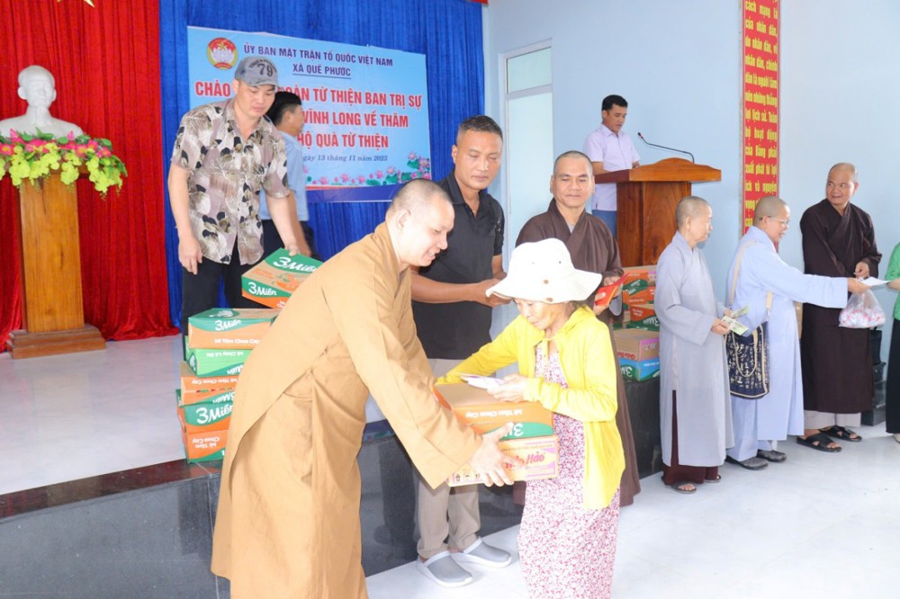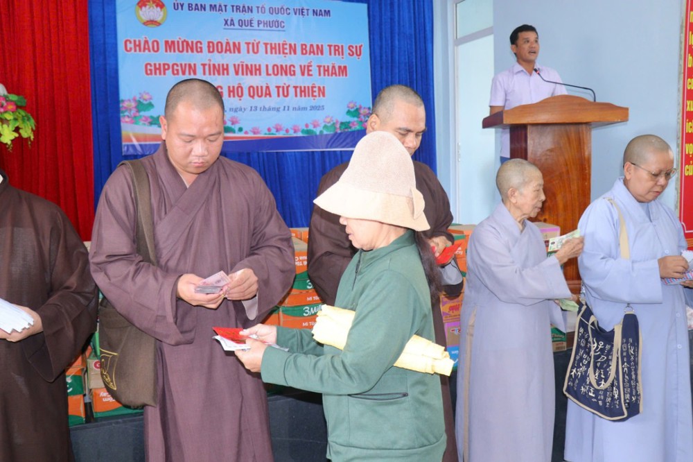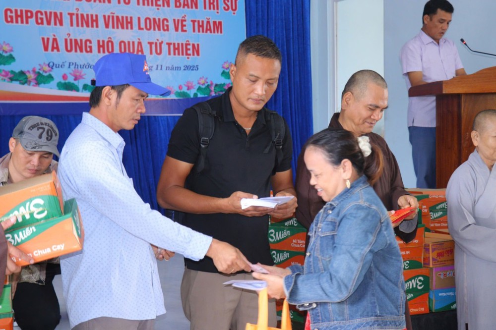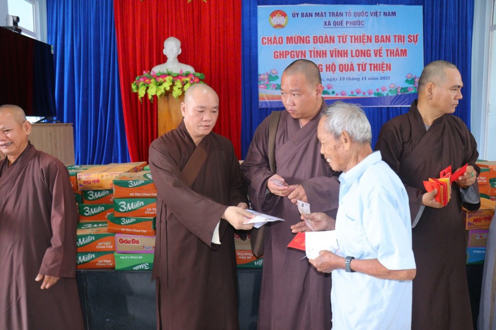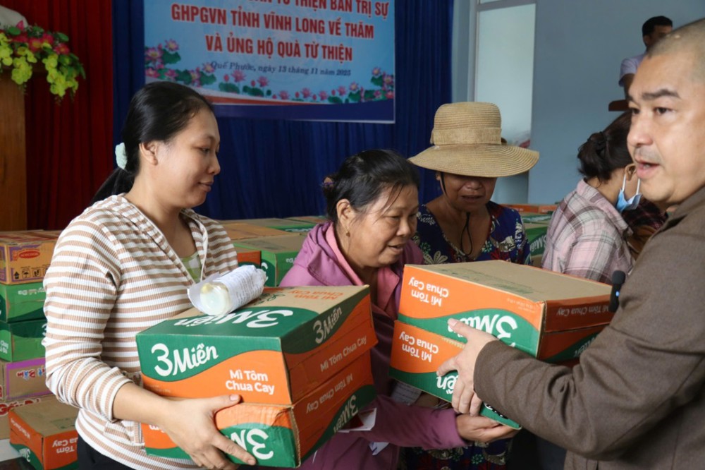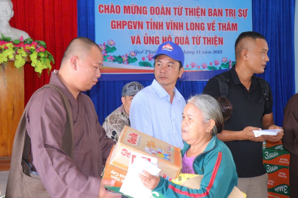 PSO – Nhằm chia sẻ phần nào khó khăn, mất mát của bà con đang gánh chịu thiên tai, ngày 13/11/2025 (nhằm ngày 24/09/năm Ất Tỵ), Phái đoàn Ban Trị sự GHPGVN tỉnh Vĩnh Long - Ban Từ Thiện – Xã hội GHPGVN tỉnh Vĩnh Long, do ĐĐ. Thích Trí Thuận – Phó BTS, Trưởng Ban Từ Thiện - Xã Hội GHPGVN tỉnh làm Trưởng đoàn, đã đến tỉnh Quảng Nam cũ tổ chức chương trình thăm hỏi và trao tặng 300 phần quà đến bà con đang chịu ảnh hưởng nặng nề bởi mưa lũ kéo dài trong những ngày qua.