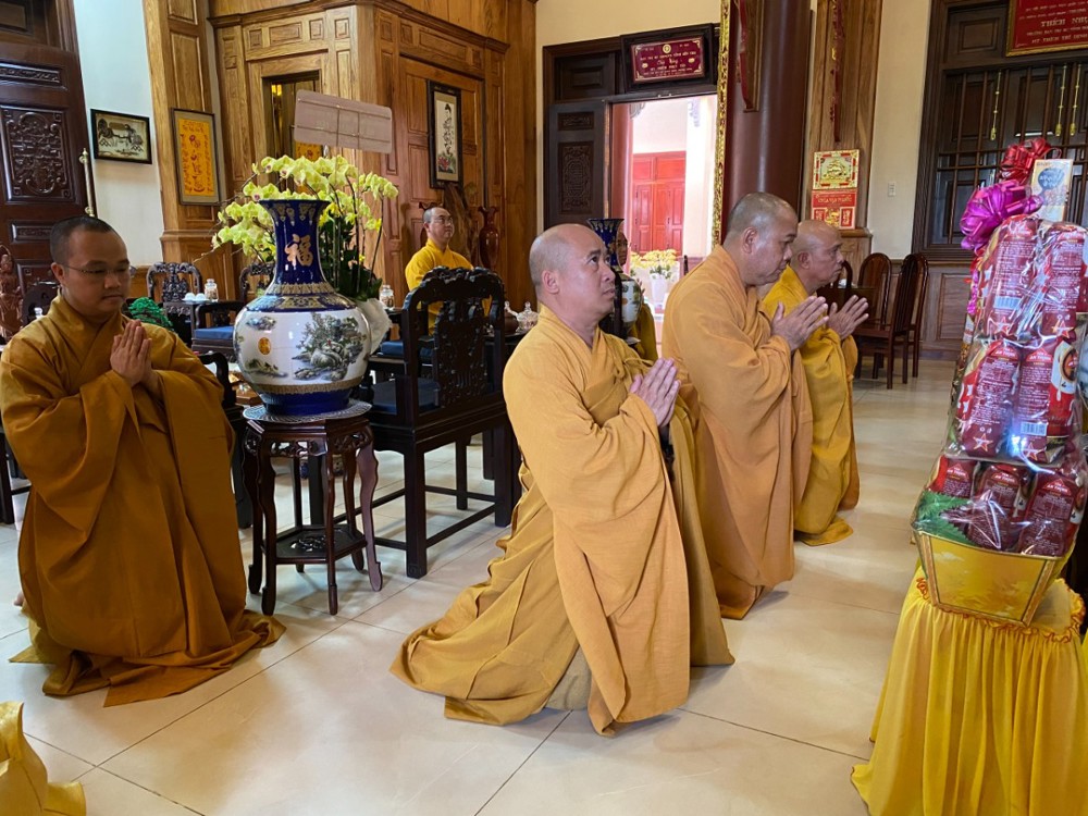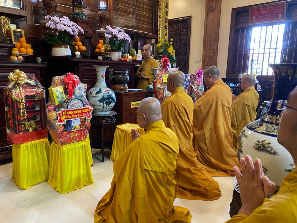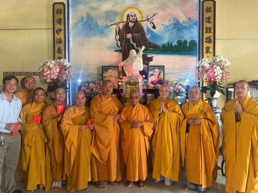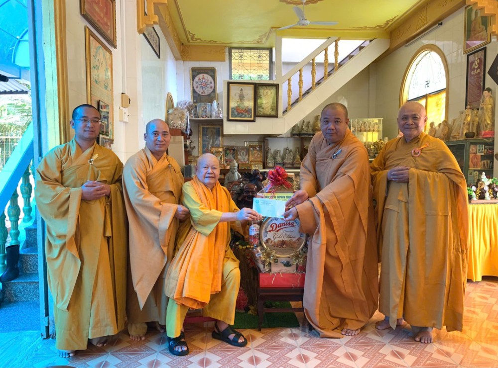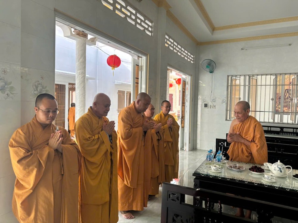 Phái đoàn đã lần lượt đảnh lễ và dâng lời khánh tuế đến: Hòa thượng Thích Huệ Tấn, Hòa thượng Thích Lệ Đức, Hòa thượng Thích Lệ Linh – Đồng Thành viên Hội đồng Chứng minh, Chứng minh BTS GHPGVN tỉnh; Hòa thượng Thích Nhựt Tấn – Ủy viên Hội đồng Trị sự, Phó Ban Kiểm soát Trung ương Giáo hội, Chứng minh BTS GHPGVN tỉnh; Hòa thượng Thích Huệ Ngộ – Chứng minh BTS GHPGVN tỉnh.