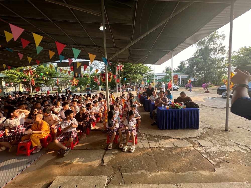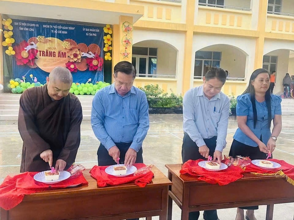 PSO – Trong không khí hân hoan của ngày Rằm tháng Tám – Tết Trung thu, khi trăng tròn toả sáng khắp muôn nơi, cũng là lúc tình thương và niềm vui được nhân rộng trong cộng đồng. Với tâm nguyện đem ánh sáng từ bi đến với thế hệ măng non, thừa chỉ đạo của Ban Từ thiện – xã Hội GHPGVN tỉnh Vĩnh Long, TT. Thích Thanh Mẫn – Phó BTS kiêm Trưởng Ban Nghi Lễ GHPGVN tỉnh Vĩnh Long; ĐĐ. Thích Trí Thuận – Phó Ban kiêm Trưởng Ban Từ thiện Xã hội BTS GHPGVN tỉnh; ĐĐ. Thích Xuân Trí – UV BTS tỉnh, Phó Ban Từ thiện Xã hội BTS GHPGVN tỉnh; cùng quý nam nữ Phật tử CLB Bồ Đề, bà Đặng Thị Như Ý – Giám đốc công ty nước uống Phúc An, đã phát tâm tổ chức chương trình Trung Thu trao Gửi Ánh Trăng Rằm”, trao tặng 1.650 phần quà đến các em thiếu nhi tại 4 xã: Phúc Túc, Tiên Thủy, Giao Long, Tân Phú. Đây là món quà tinh thần quý báu, thể hiện tình người ấm áp và sự quan tâm sâu sắc của đạo Phật đối với xã hội, đặc biệt là tuổi thơ.