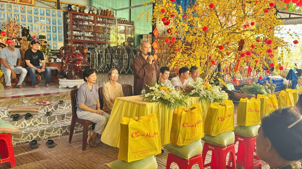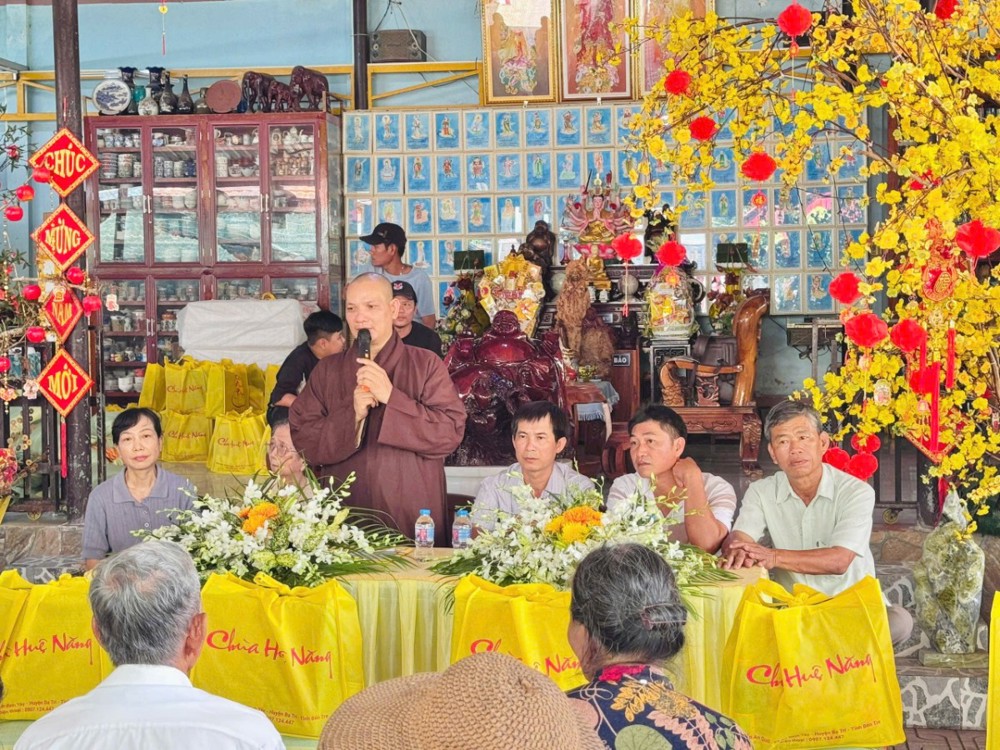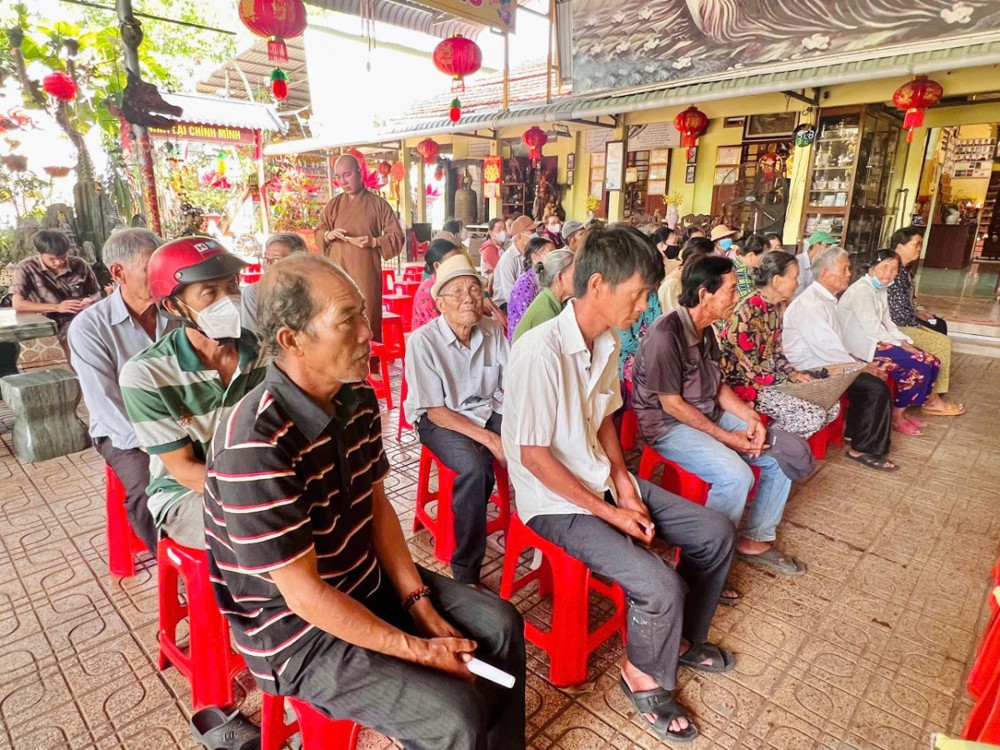 Tại buổi lễ, Đại đức Thích Trí Thanh đã chia sẻ ý nghĩa về tinh thần từ bi của đạo Phật, nhấn mạnh người con Phật không chỉ tu tập hướng đến giác ngộ, giải thoát mà còn cần đem ánh sáng từ bi, trí tuệ vào đời sống, góp phần xoa dịu khổ đau, đồng hành cùng cộng đồng. Đại đức cũng gửi lời động viên bà con nỗ lực vượt qua khó khăn, ổn định cuộc sống.