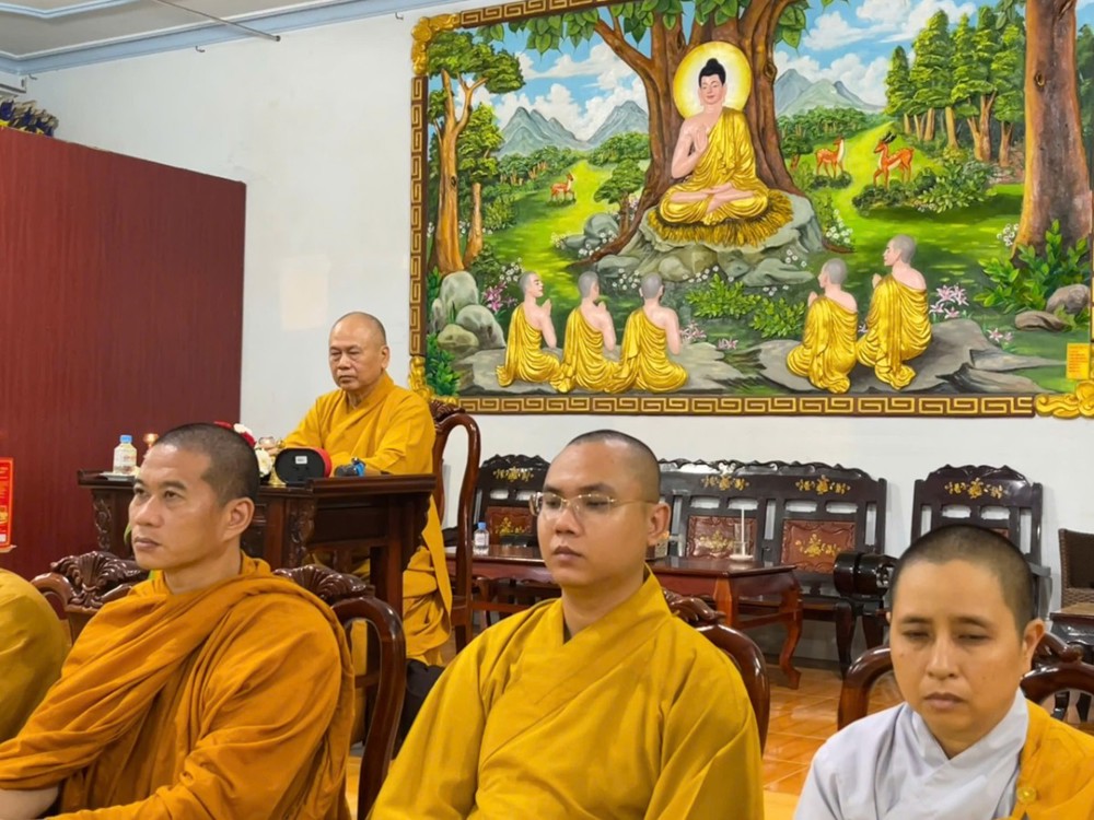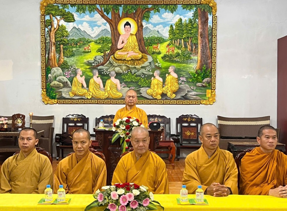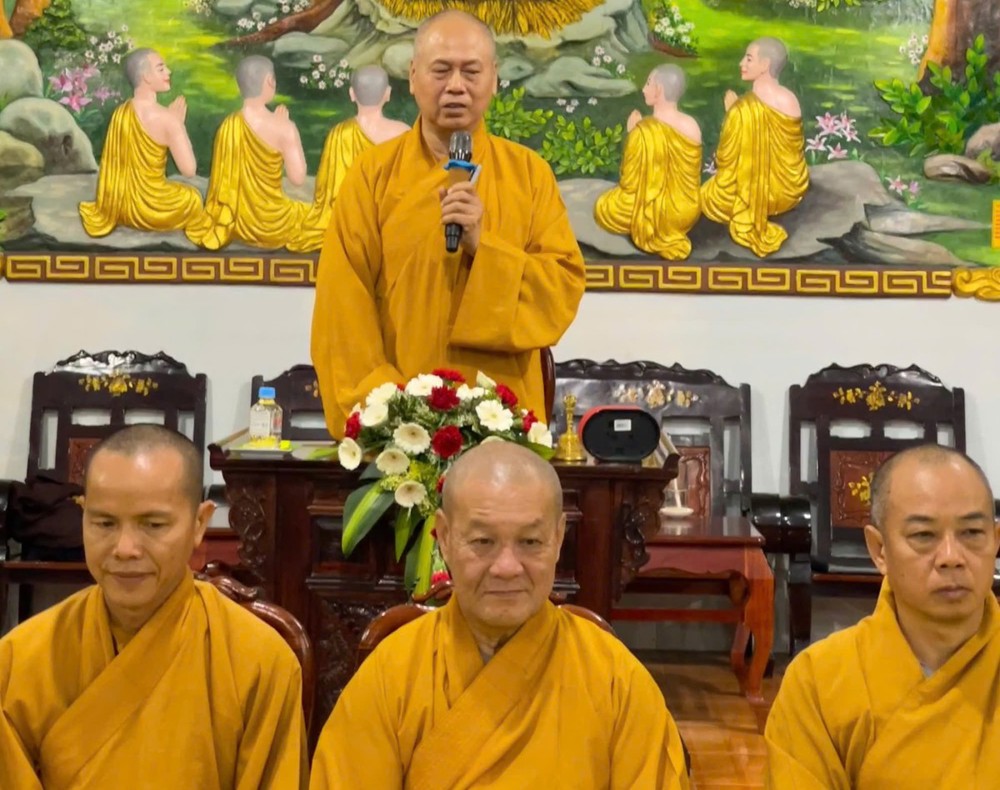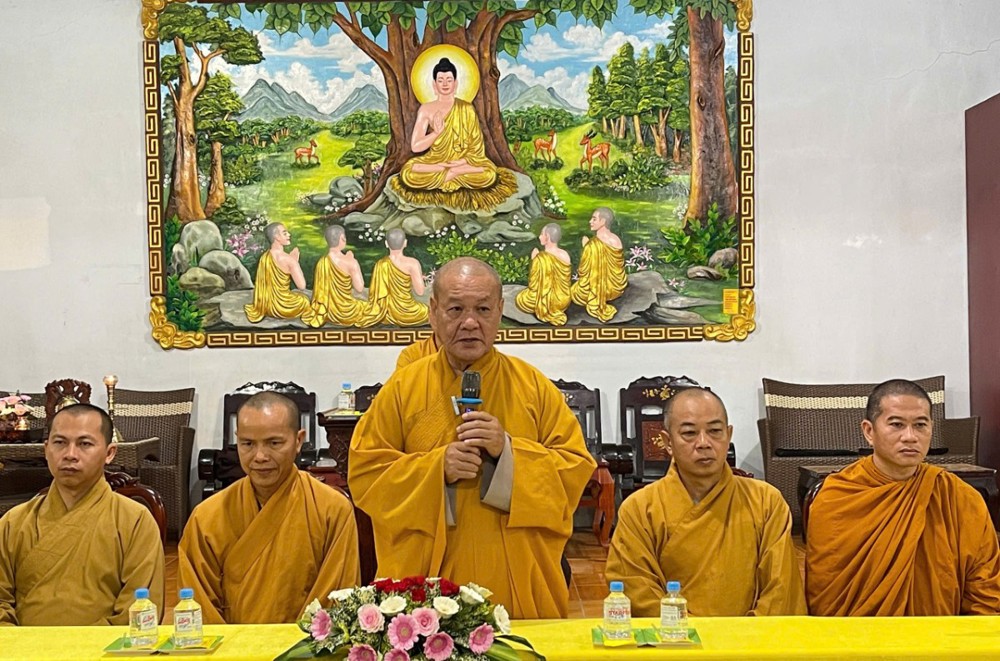 Tại buổi gặp gỡ, Thượng tọa Thích Minh Đạo – Trưởng đoàn đã ban lời đạo từ, sách tấn chư Tôn đức Tăng Ni và toàn thể Phật tử tinh tấn tu học, giữ vững niềm tin Tam bảo, phát huy tinh thần đoàn kết và trách nhiệm trong công tác Hoằng pháp tại địa phương.