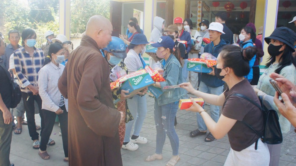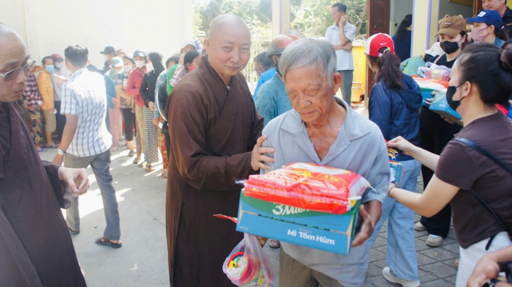 Phát biểu tại buổi trao quà, TT. Thích Minh Hoàng – Trụ trì Chùa Long Khánh đã chia sẻ ý nghĩa của việc tổ chức chương trình trong những ngày cuối năm, nhấn mạnh tinh thần “Phụng sự chúng sinh là thiết thực cúng dường chư Phật”. Thượng tọa bày tỏ niềm hoan hỷ khi Chùa Long Khánh luôn nhận được sự quan tâm, đồng hành của các cấp chính quyền, các đơn vị tài trợ và quý Phật tử, để từ đó lan tỏa tình yêu thương đến những mảnh đời còn nhiều khó khăn trong xã hội.