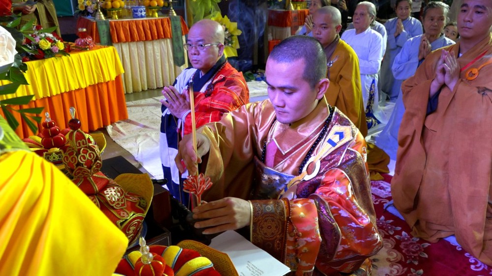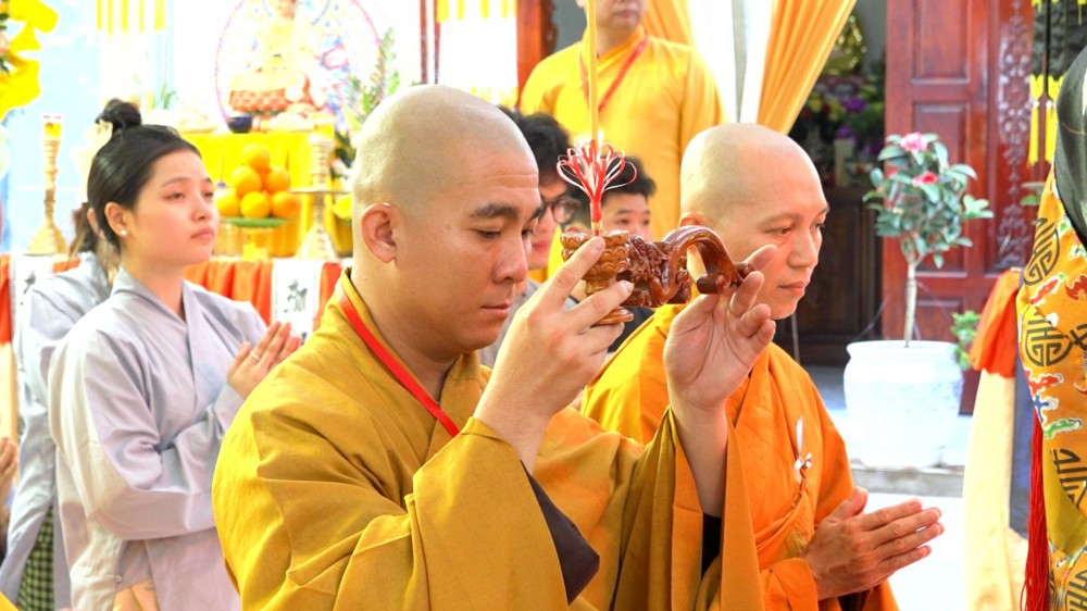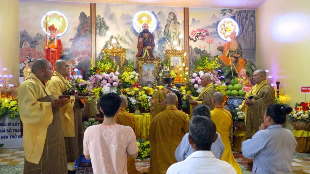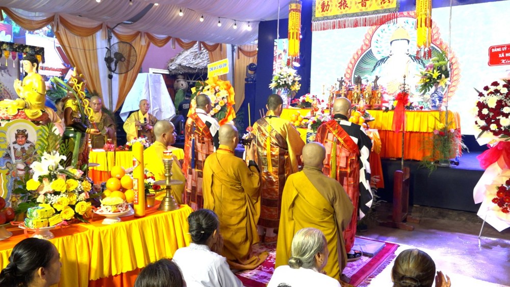 Buổi lễ được cử hành trang nghiêm, thành kính, với các nghi thức niêm hương bạch Phật, tưởng niệm Tứ Ân, cùng lời tác bạch xúc động của Đại đức Thích Chúc Quang dâng lên tưởng niệm công đức Tổ sư và phát nguyện tiếp nối hạnh nguyện xây dựng chùa.