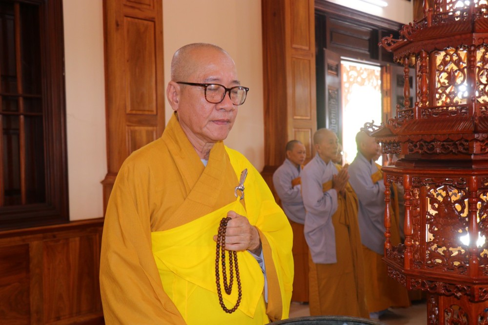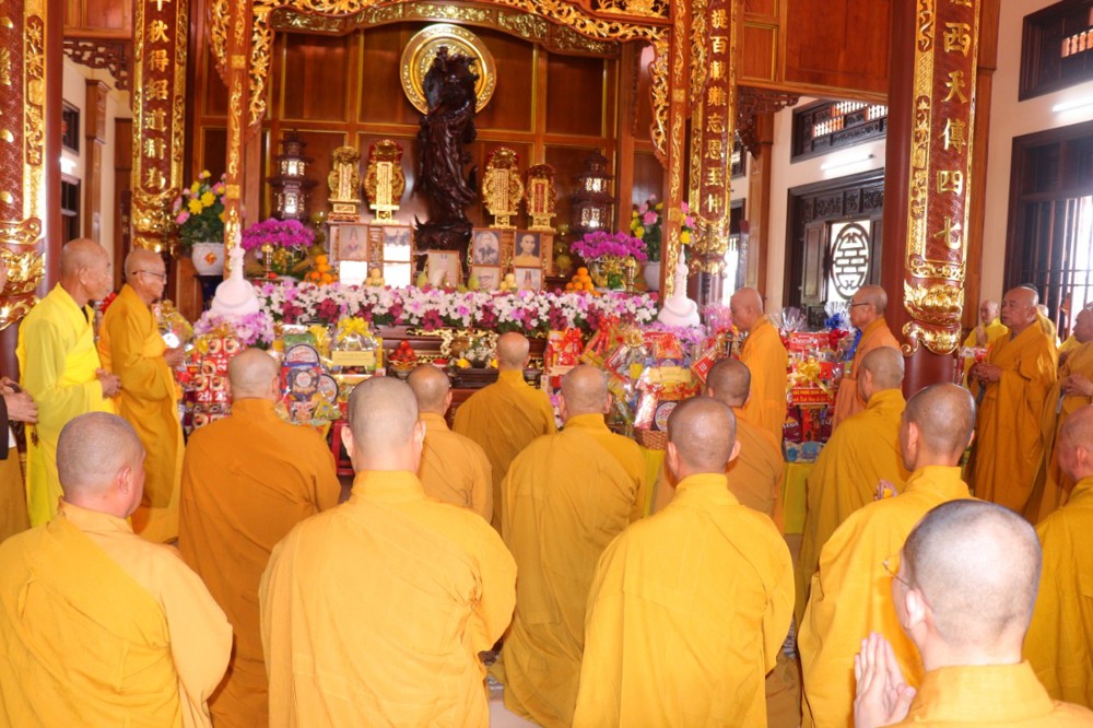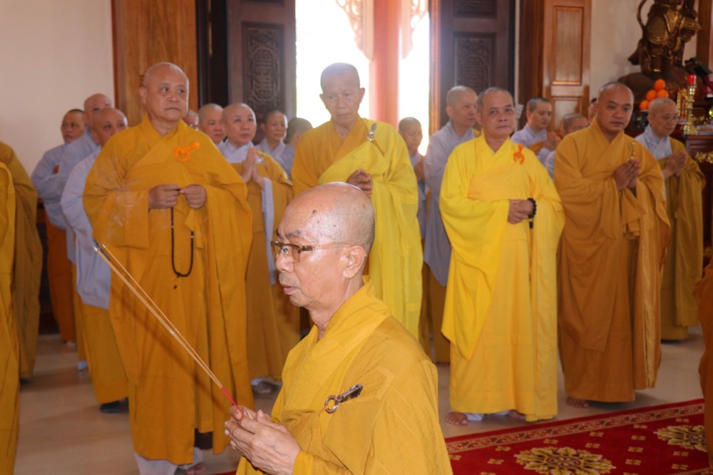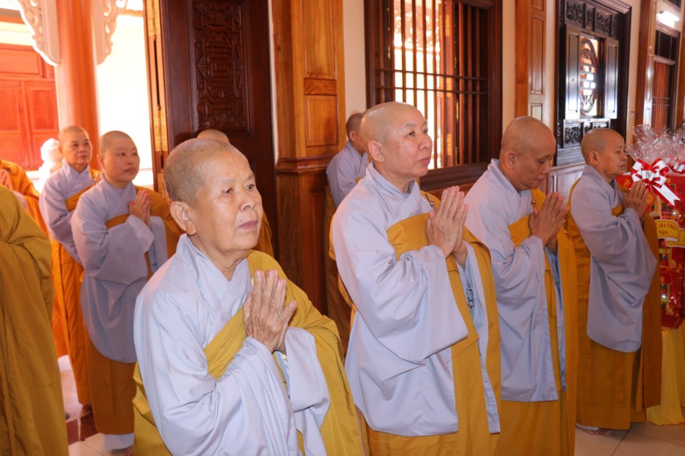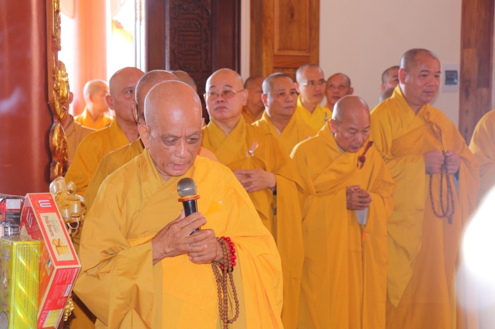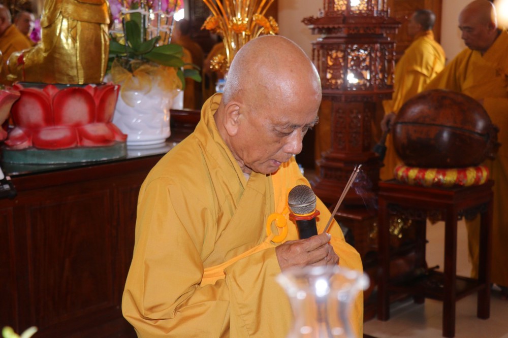 Sau khoá lễ tụng kinh, trong không khí trang nghiêm, đối trước tổ đường HT. Thích Lệ Đức thay mặt Chư Tôn đức Tăng - Ni dâng lời tưởng niệm và nguyện cầu chư vị tiền bối hữu công chứng quả vô sanh.