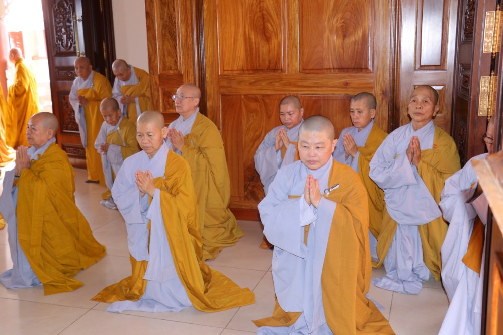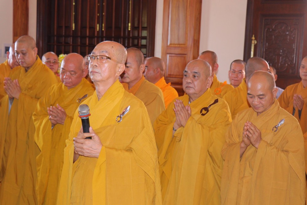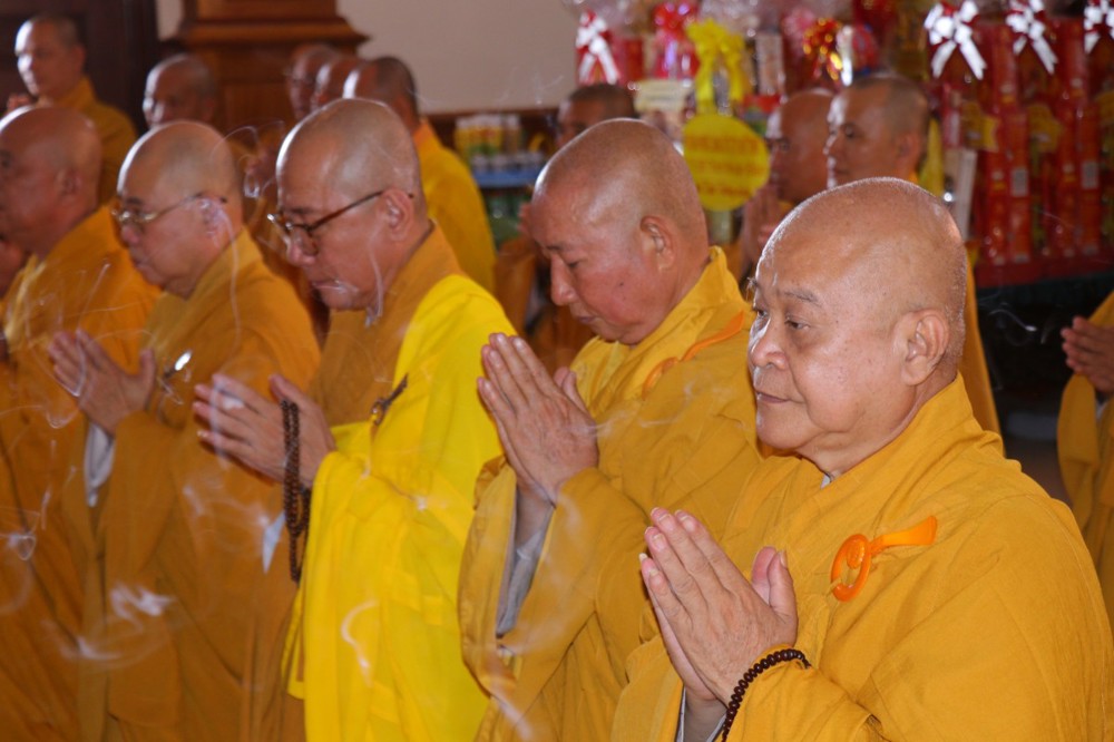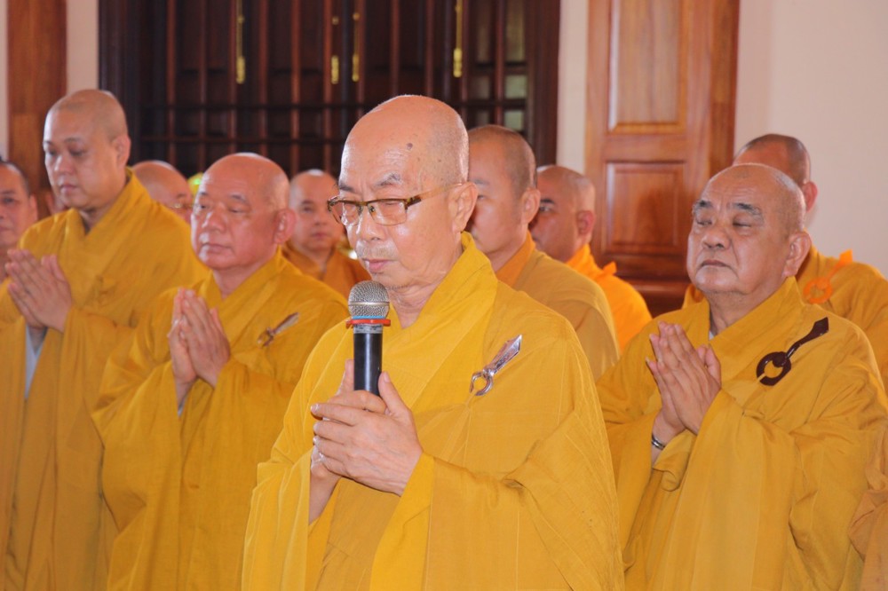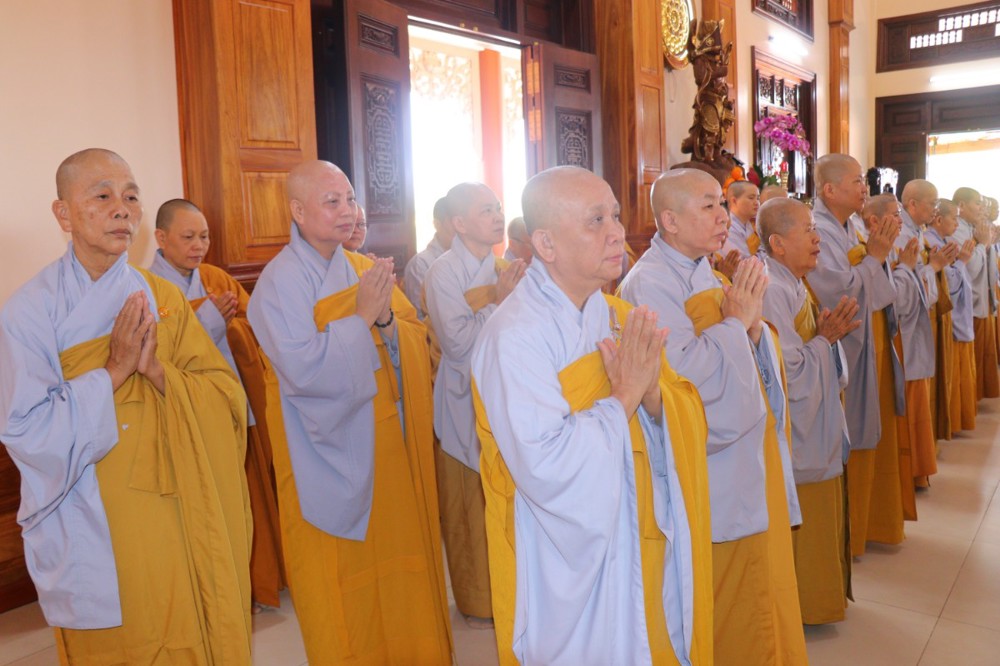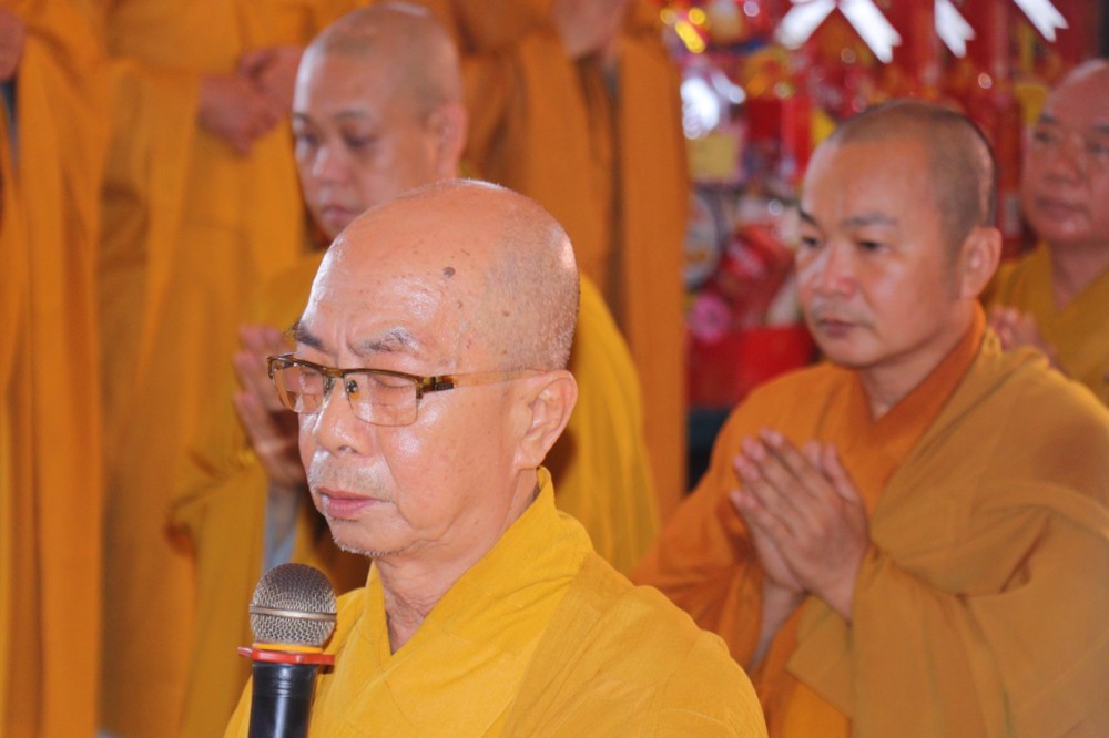 Sau khoá lễ tụng kinh, trong không khí trang nghiêm, đối trước tổ đường HT. Thích Lệ Đức thay mặt Chư Tôn đức Tăng - Ni dâng lời tưởng niệm và nguyện cầu chư vị tiền bối hữu công chứng quả vô sanh.