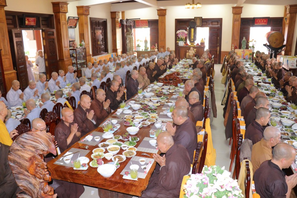 Trước khi khóa lễ cúng ngọ, tại tổ đường chùa Tiên Đài HT. Thích Nhựt Tấn – UV Thường trực HĐTS, Trưởng BTS GHPGVN tỉnh Bến Tre, viện chủ chùa Tiên Đài đối trước chư tôn thiền đức Tăng dâng lời tác bạch thỉnh sư. Sau đó chư Tôn thiền đức Tăng Ni vân tập đại hùng bửu điện phúng tụng thời khóa cúng ngọ dưới sự niêm hương của HT. Thích Lệ Đức - Thành viên HĐCM GHPGVN, Chứng minh BTS GHPGVN tỉnh.