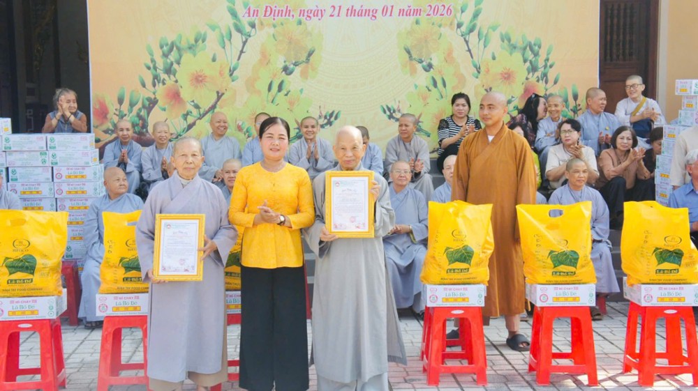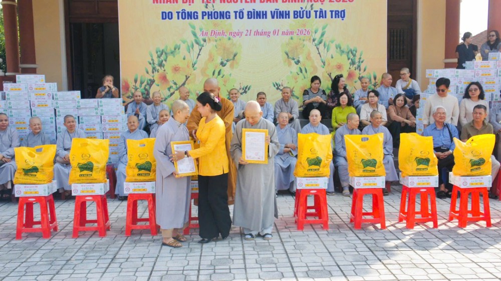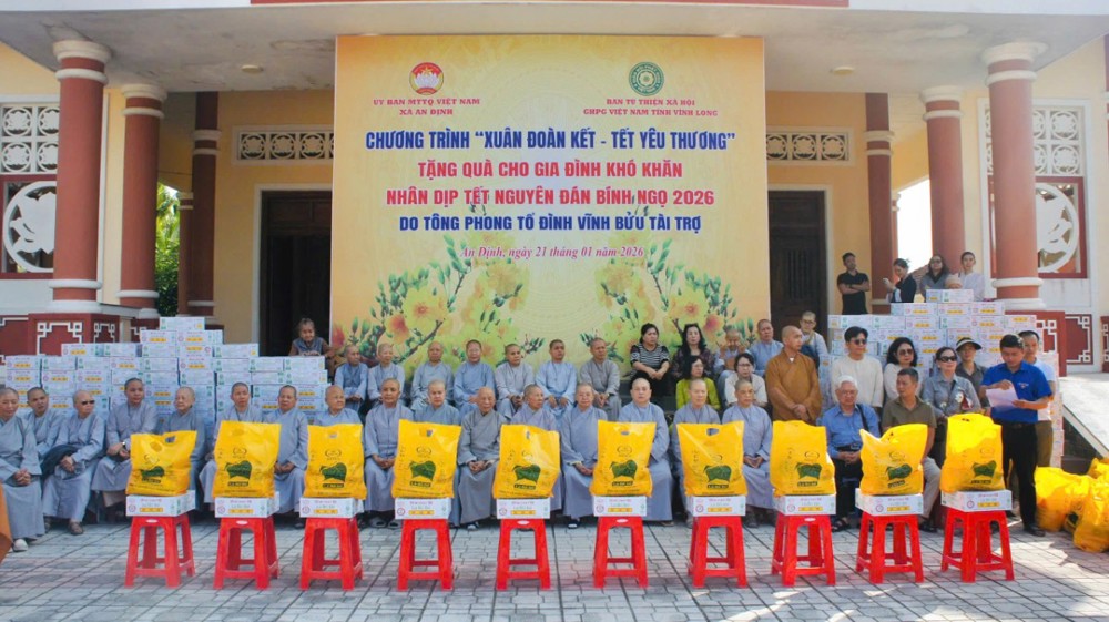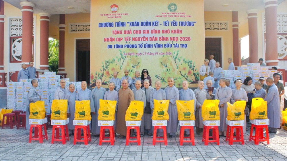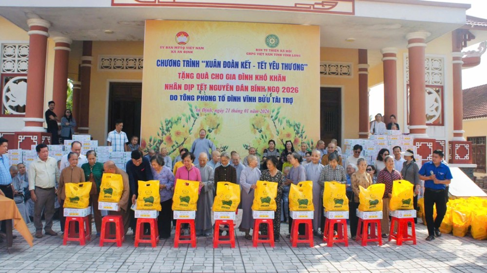Theo đó, 200 phần quà Xuân được trao tặng đến bà con xã An Định, mỗi phần trị giá 700.000 đồng, gồm tiền mặt và các nhu yếu phẩm thiết yếu phục vụ sinh hoạt ngày Tết. Chương trình này được sự phát tâm tài trợ của tông phong Tổ đình Vĩnh Bửu (xã Nhuận Phú Tân, tỉnh Vĩnh Long), thể hiện truyền thống tốt đẹp “Hộ quốc an dân – Phụng sự nhân sinh” của Phật giáo Việt Nam, đồng thời là sự tiếp nối những hoạt động an sinh xã hội đầy ý nghĩa mà chư Tôn đức Ni và Phật tử các tự viện trong tỉnh đã và đang bền bỉ thực hiện trong nhiều năm qua.