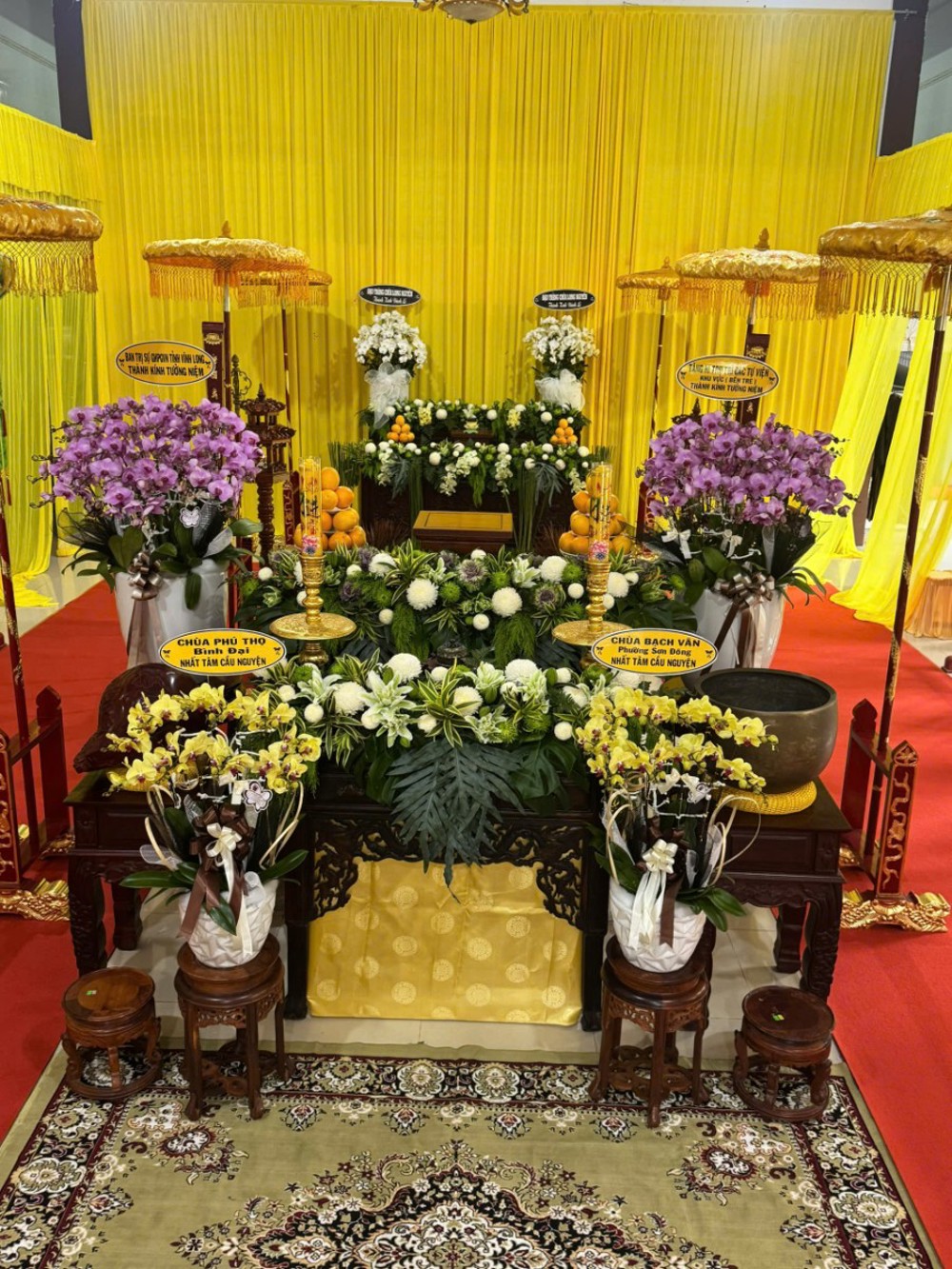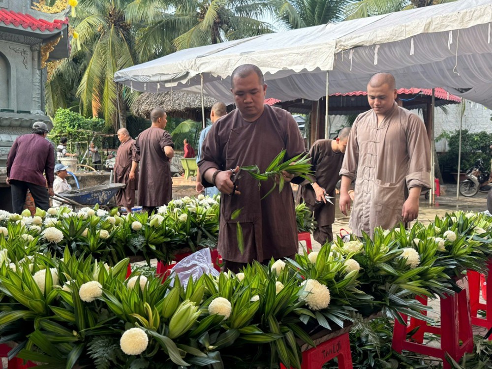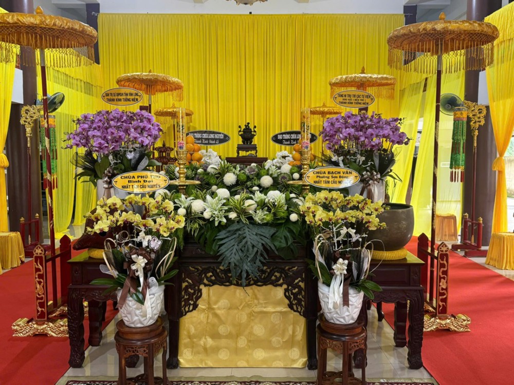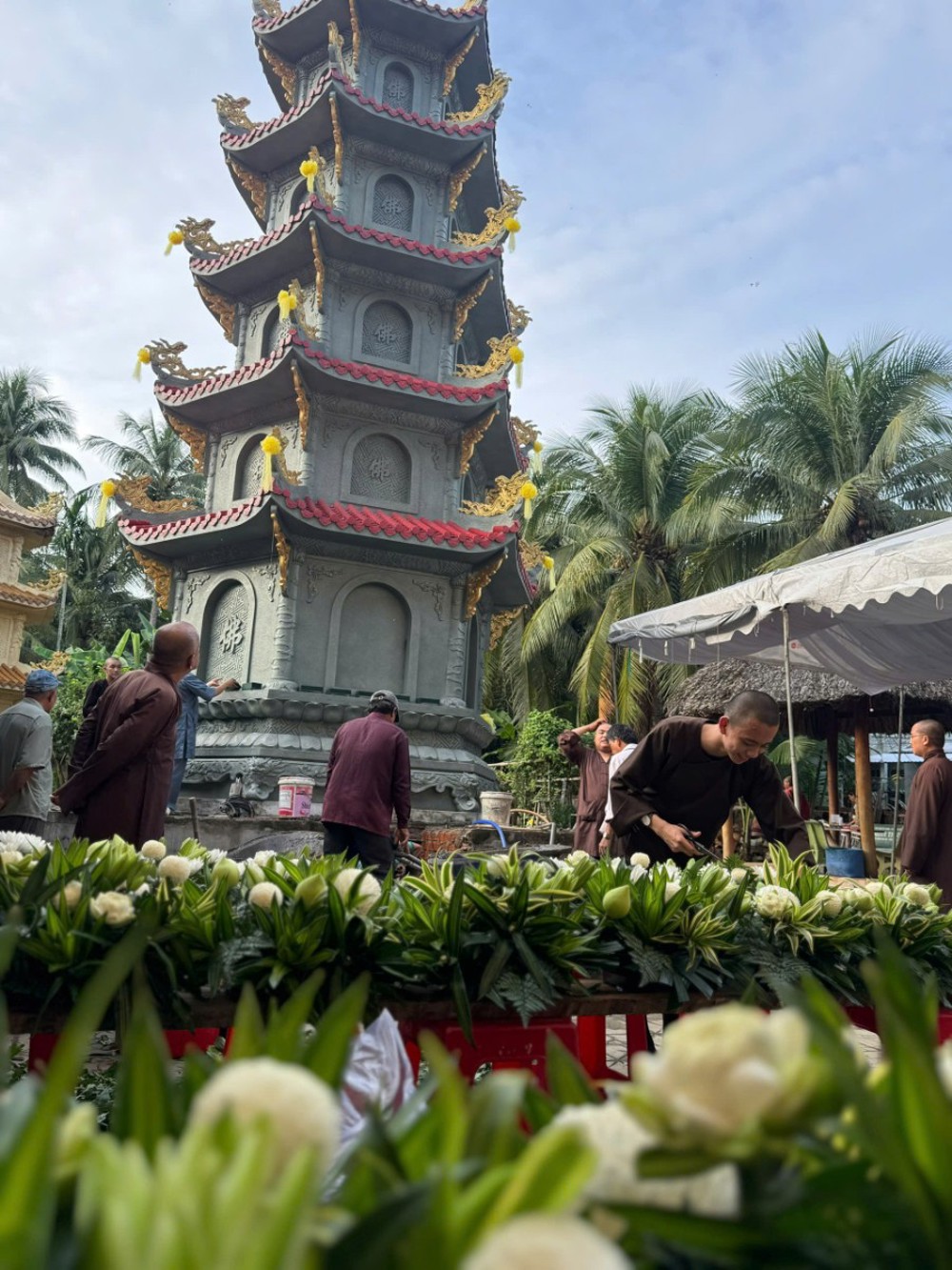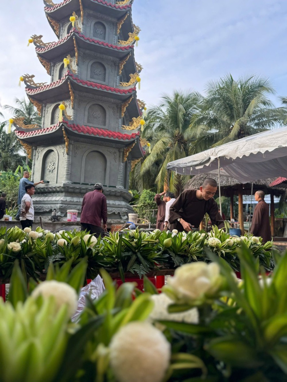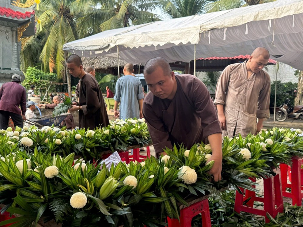 Từ tinh sương, chư Tôn đức Ban tổ chức, Tăng Ni và Phật tử địa phương đã dốc trọn tâm lực, tận tụy chuẩn bị từng chi tiết – từ việc thiết lập lễ đài, trang trí khuôn viên bảo tháp đến sắp đặt từng tuyến đường cung nghinh – tất cả đều được thực hiện với tấm lòng chí thành, mong sao buổi lễ được viên mãn, xứng đáng với ân đức của bậc Cao Tăng khả kính. Không gian chùa rợp sắc cờ Phật giáo, điểm xuyết những đóa hoa Lan tinh khiết biểu trưng cho tâm thanh tịnh và lòng tôn kính vô biên.